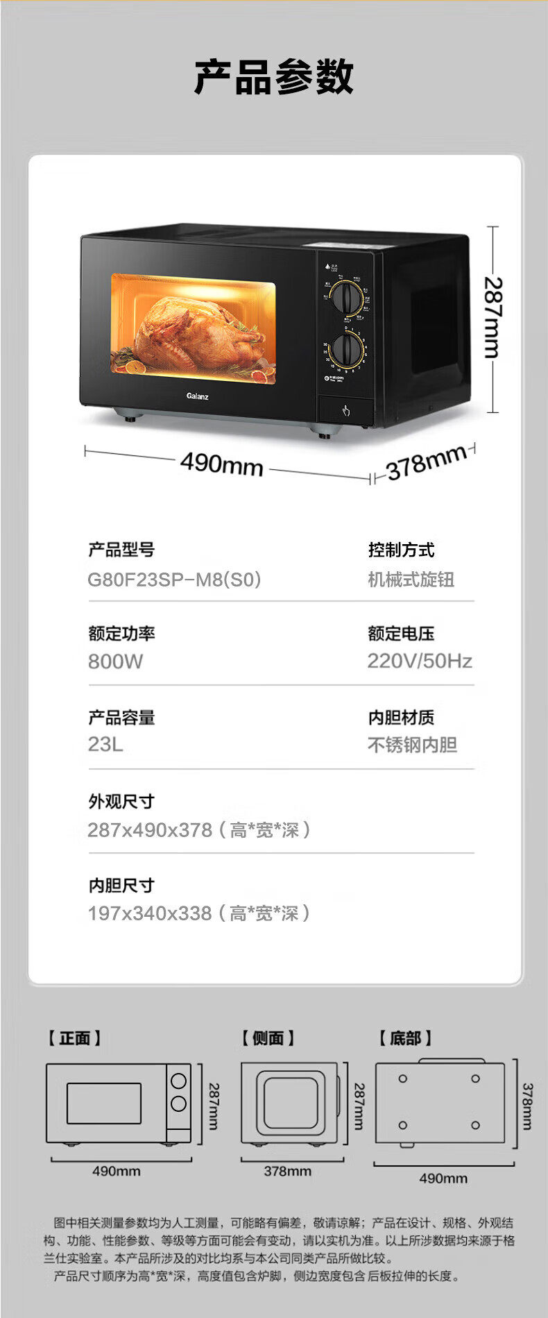 Galanz light wave oven household flat microwave oven G80F23SP-M8 (SO) genuine stainless steel knob new style