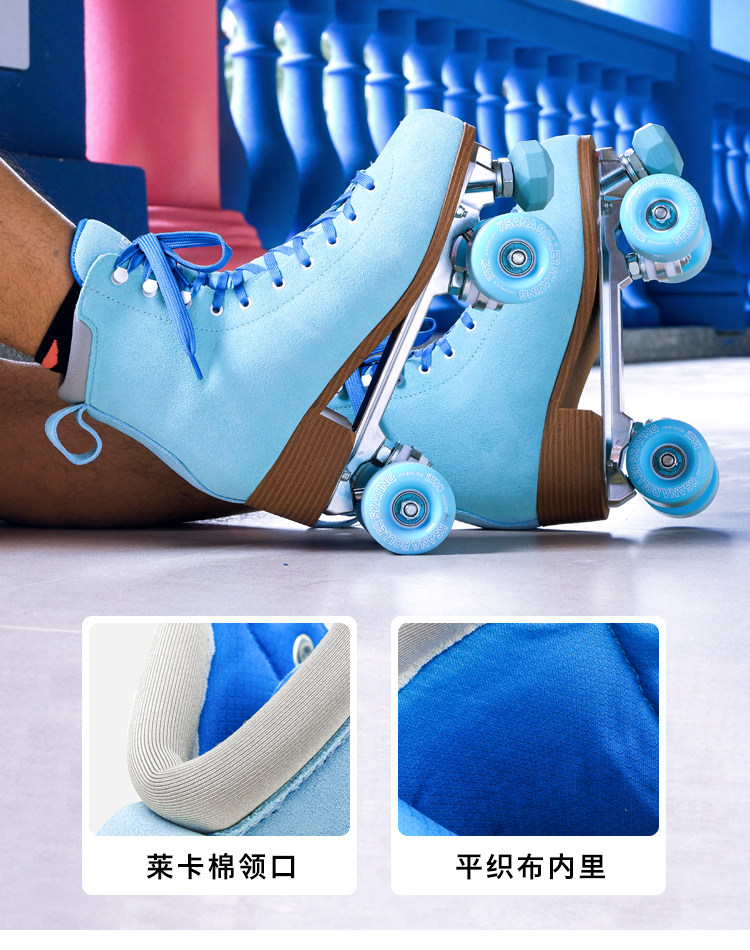 Ksana Adult Genuine Leather Double-Row Roller Skates Four-Wheel Roller Skates Adult Figure Skating Shoes for Men and Women