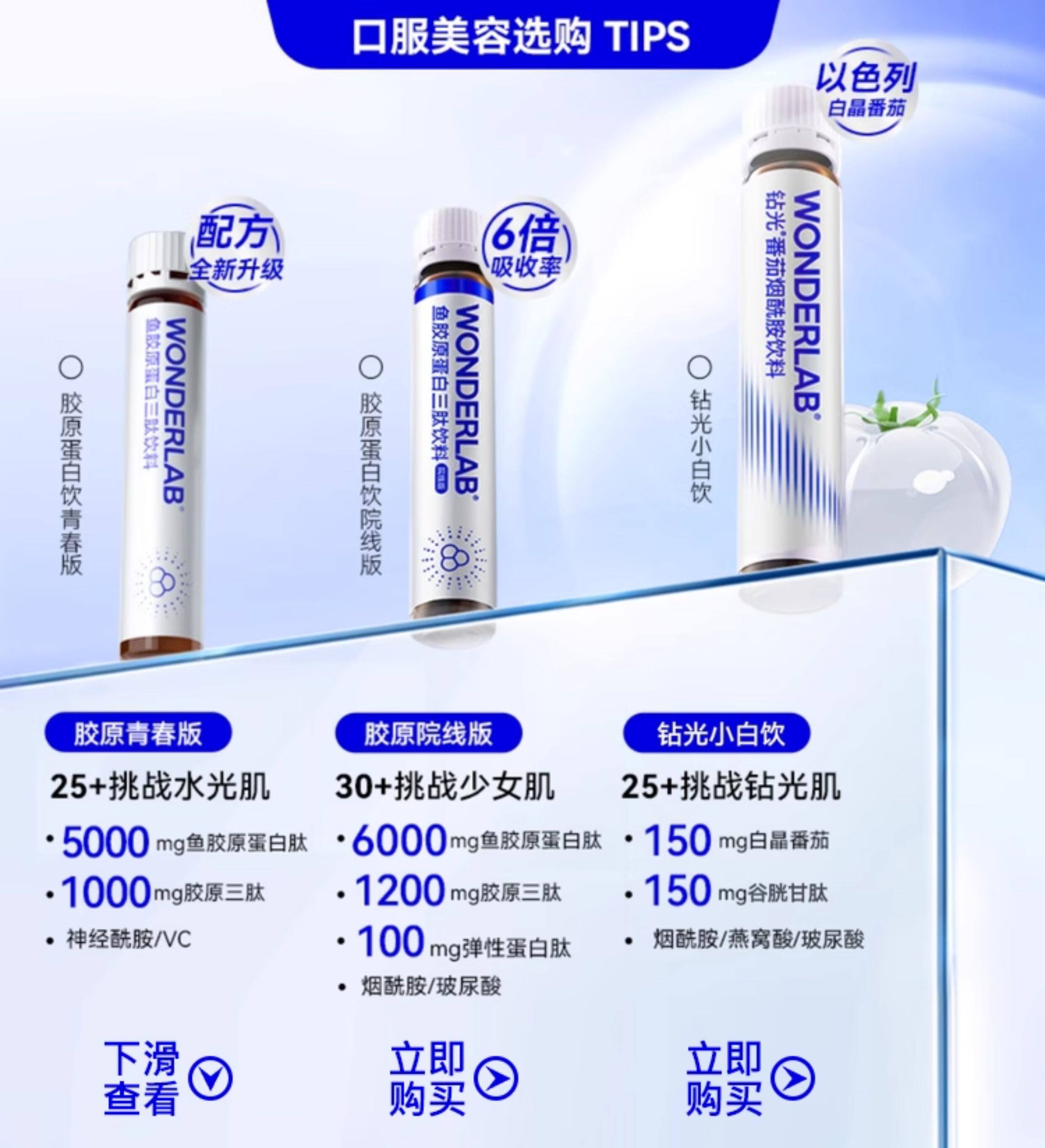Wonderlab Fish Collagen Peptide Liquid Tripeptide Small Molecule Hyaluronic Acid Oral Liquid Official Genuine Product