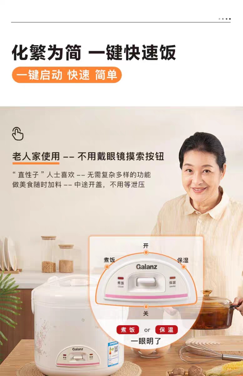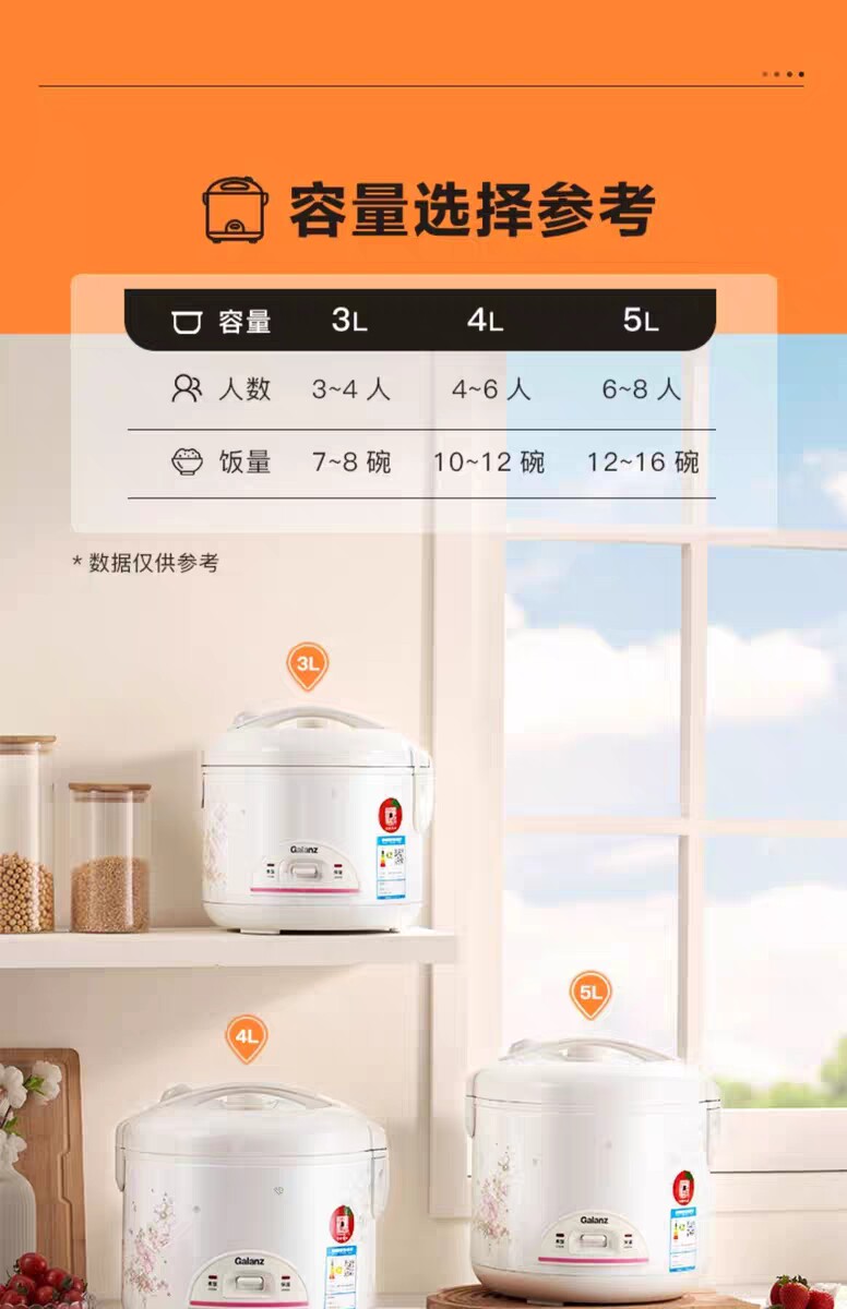 galanz A701T-50Y6J Household Rice Cooker for 1-2 People, Mechanical Rice Cooker, 5 Liters, Small Size, 3 Liters