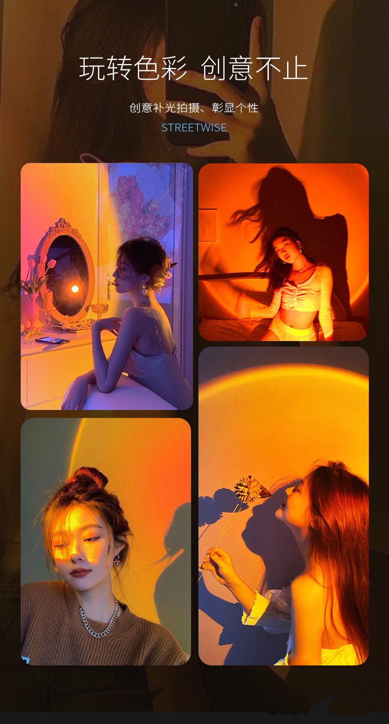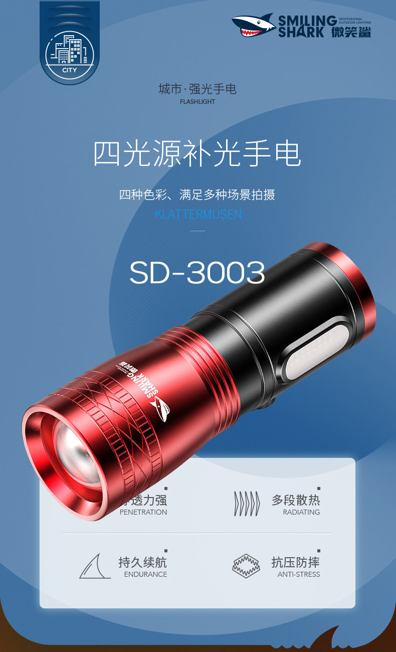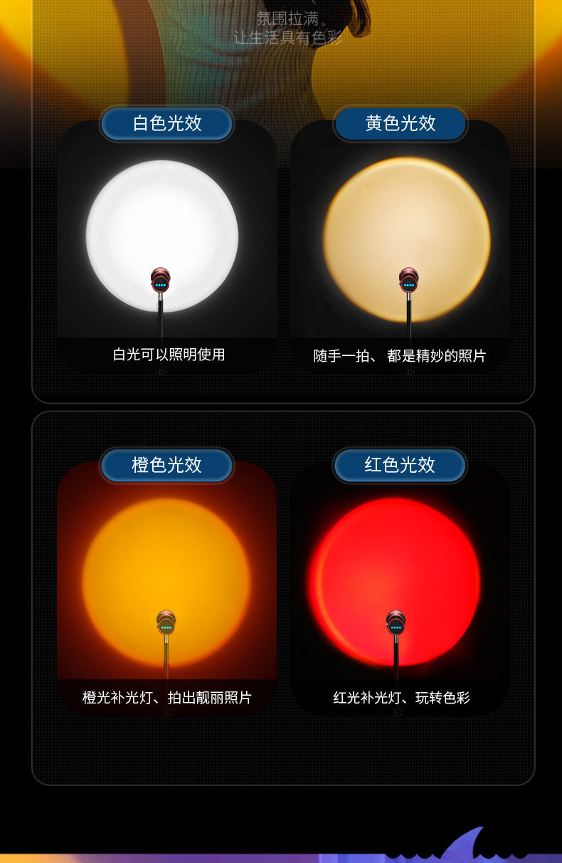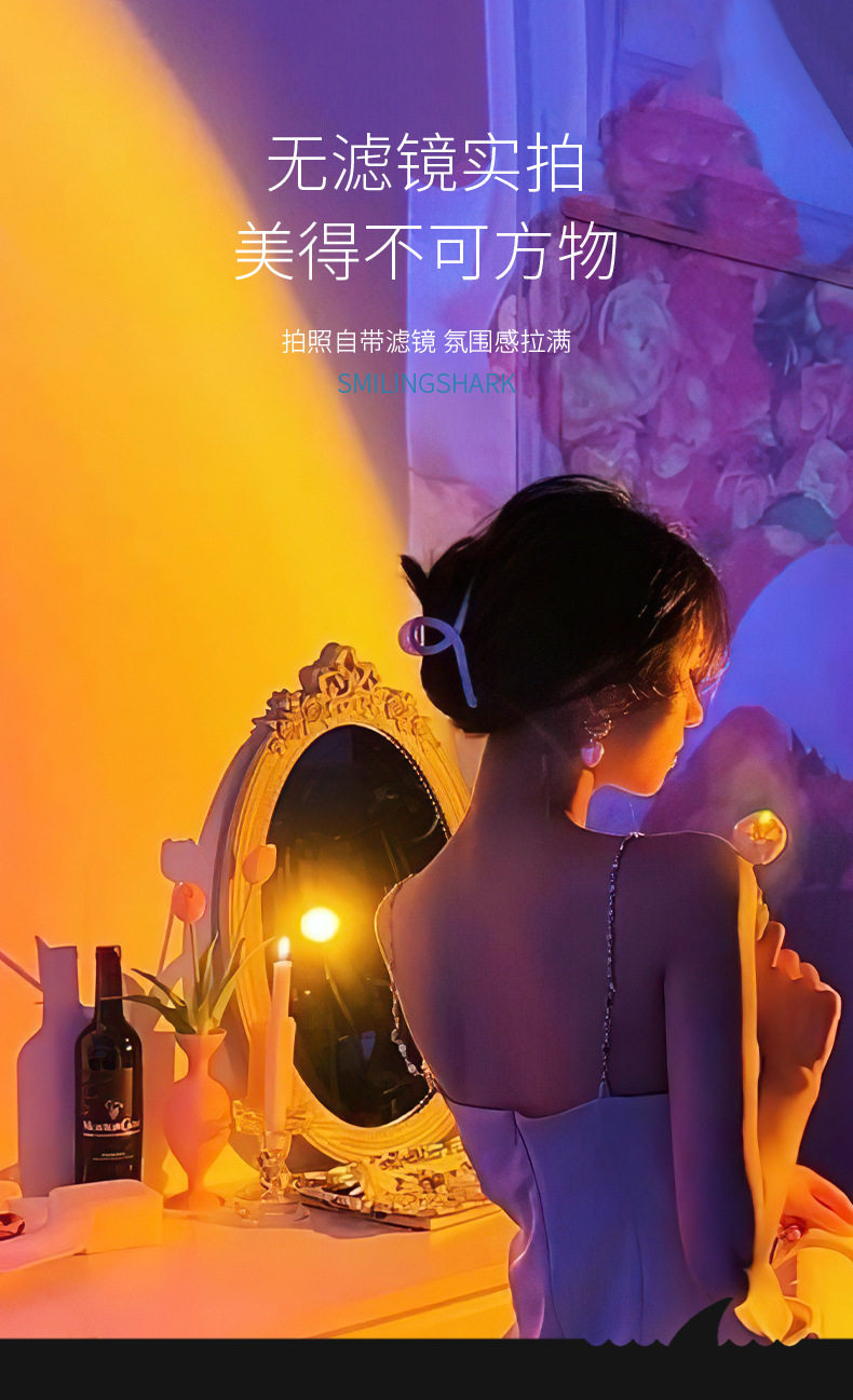 Smiling Shark Four-Color Photography Flashlight Rgb Sunset Photo Fill Light Portrait Lighting Tool Led Sunset Lamp