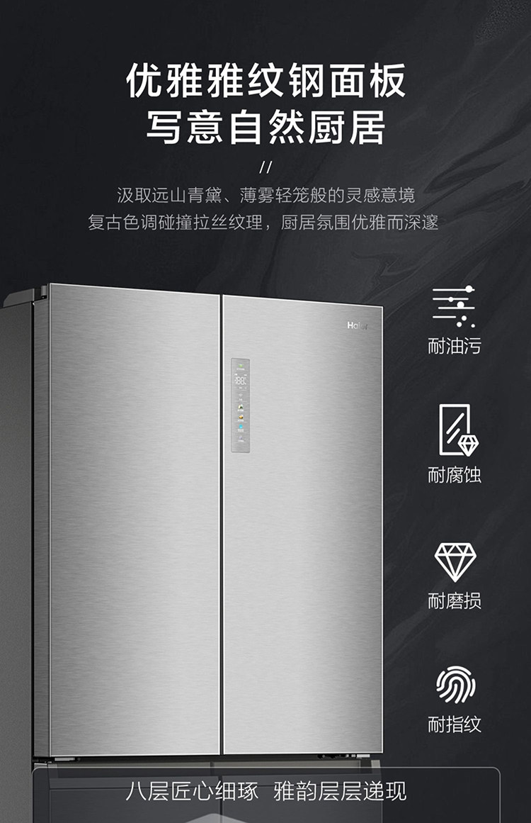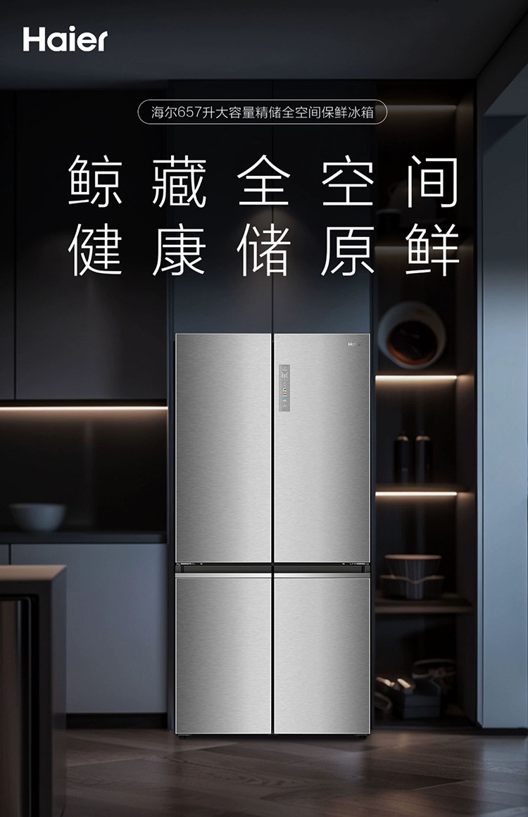 New Haier 657L Cross-Door Four-Door Refrigerator with Full Space Preservation, Household Air-Cooled Large Capacity, Dry and Wet Separation