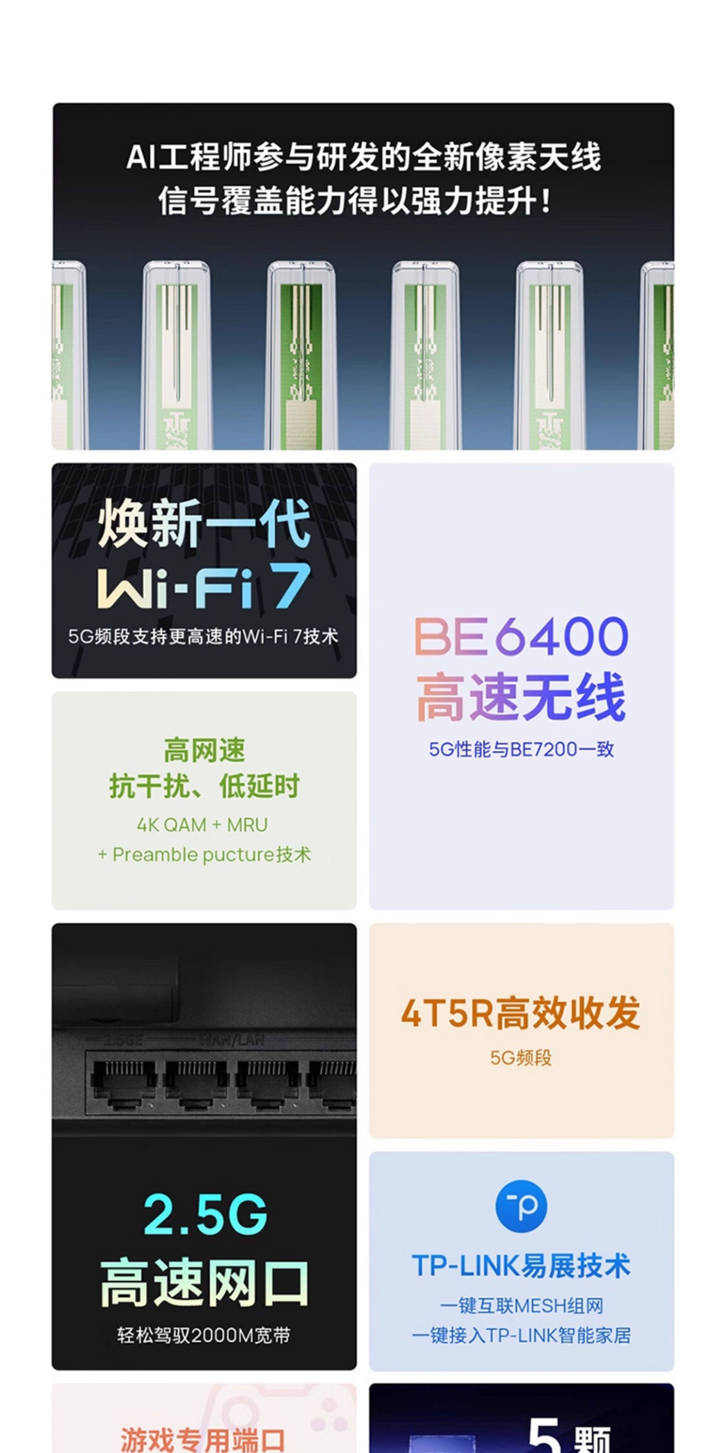 TP-LINK wireless WiFi7 router BE6400 easy to show through the wall 2.5G network port