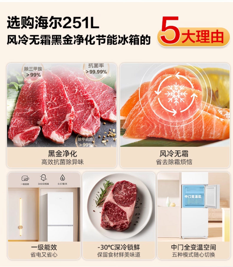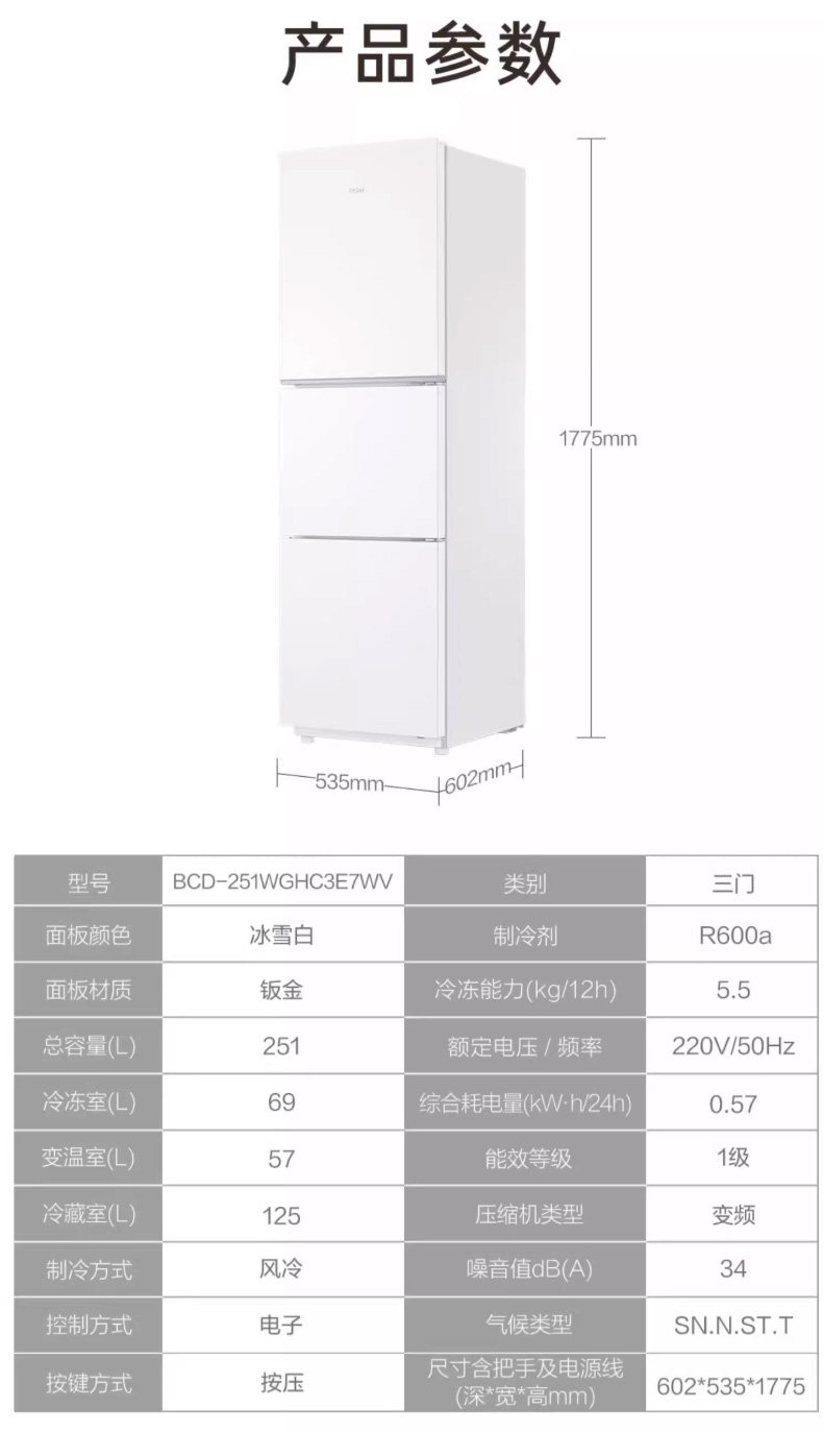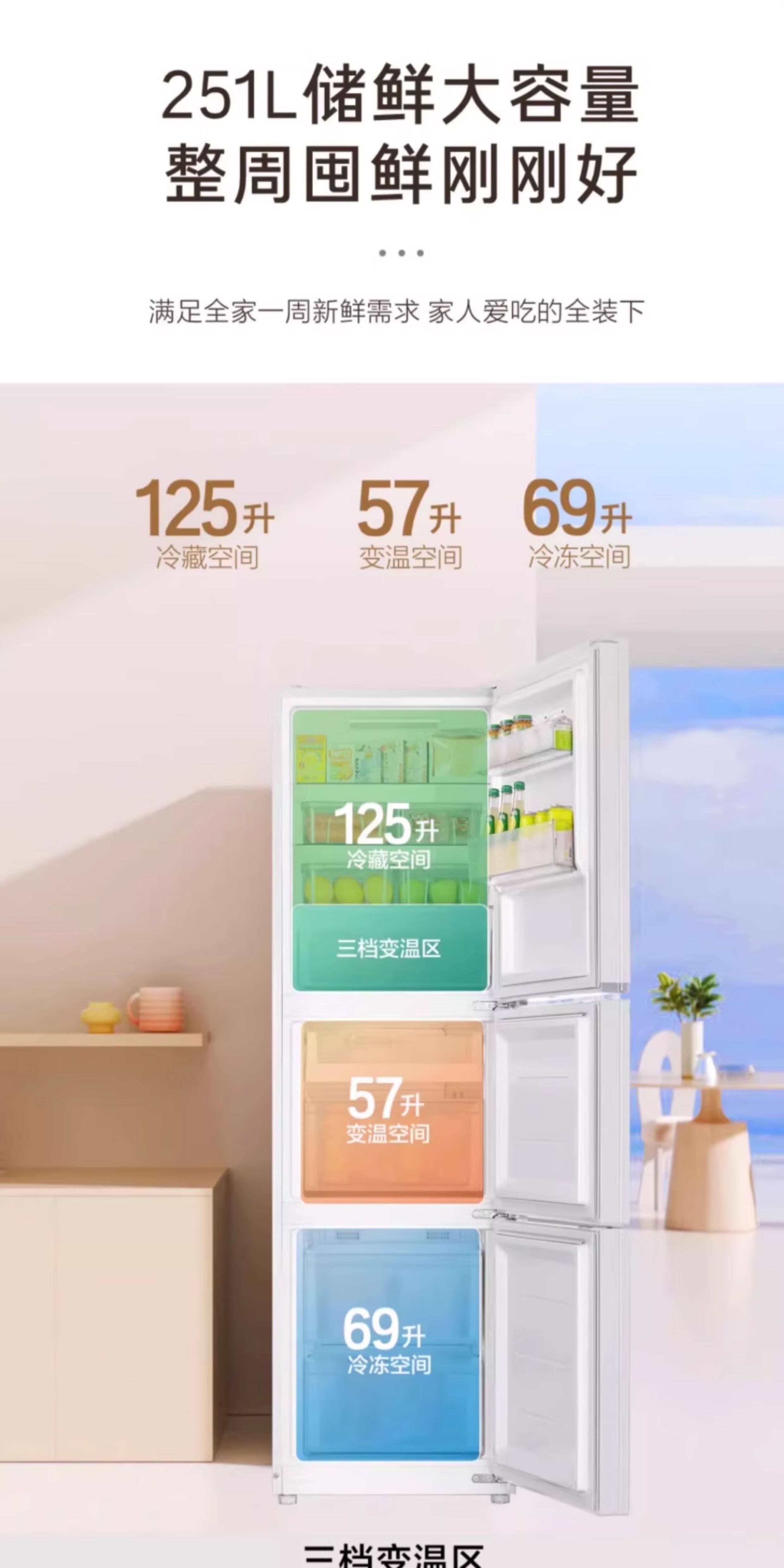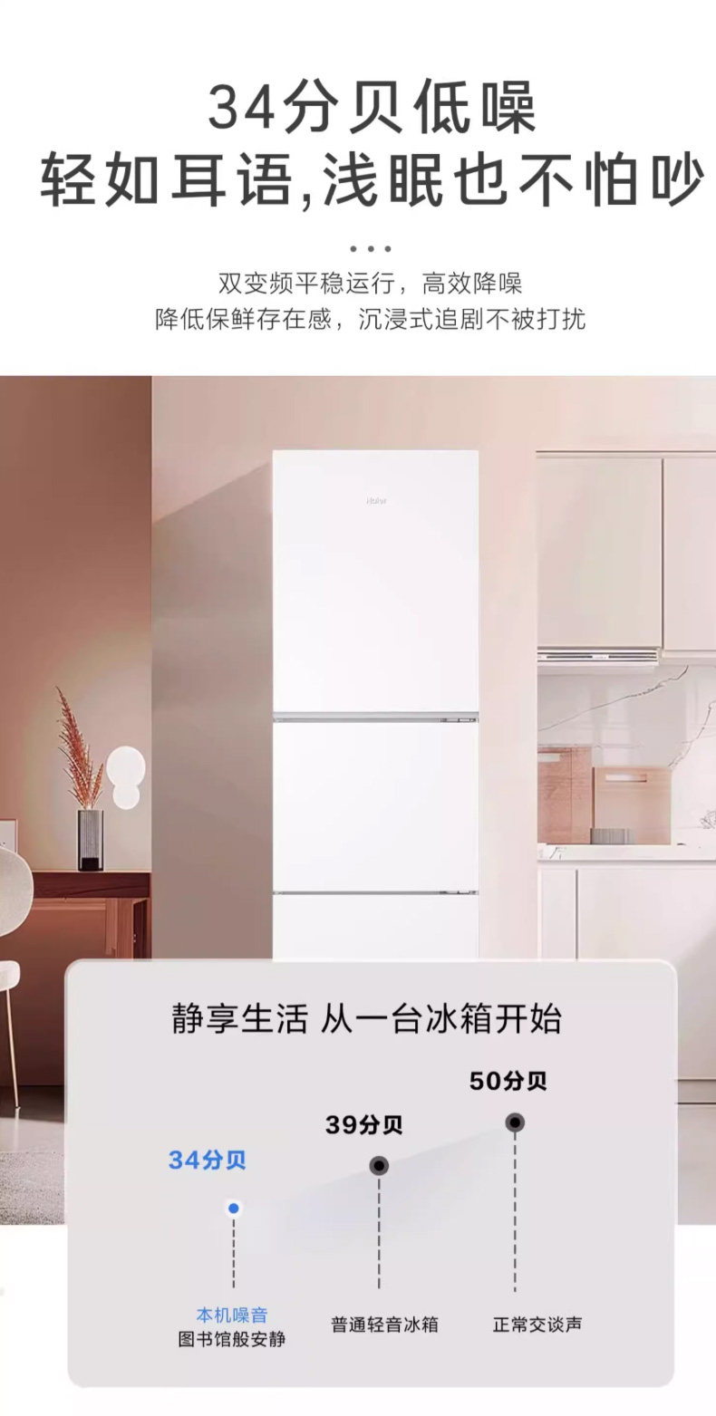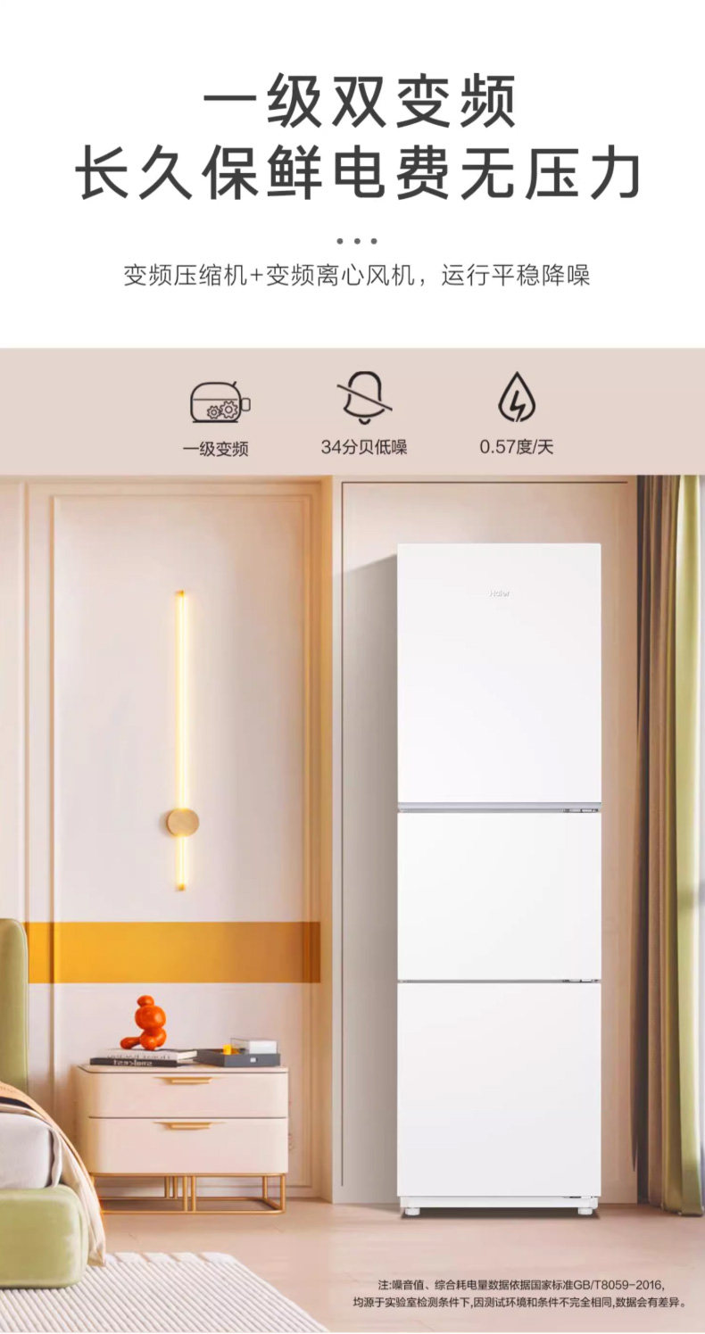 Haier 251L air-cooled frost-free refrigerator small household rental dormitory three-door double-open two-door medium-sized first-level inverter