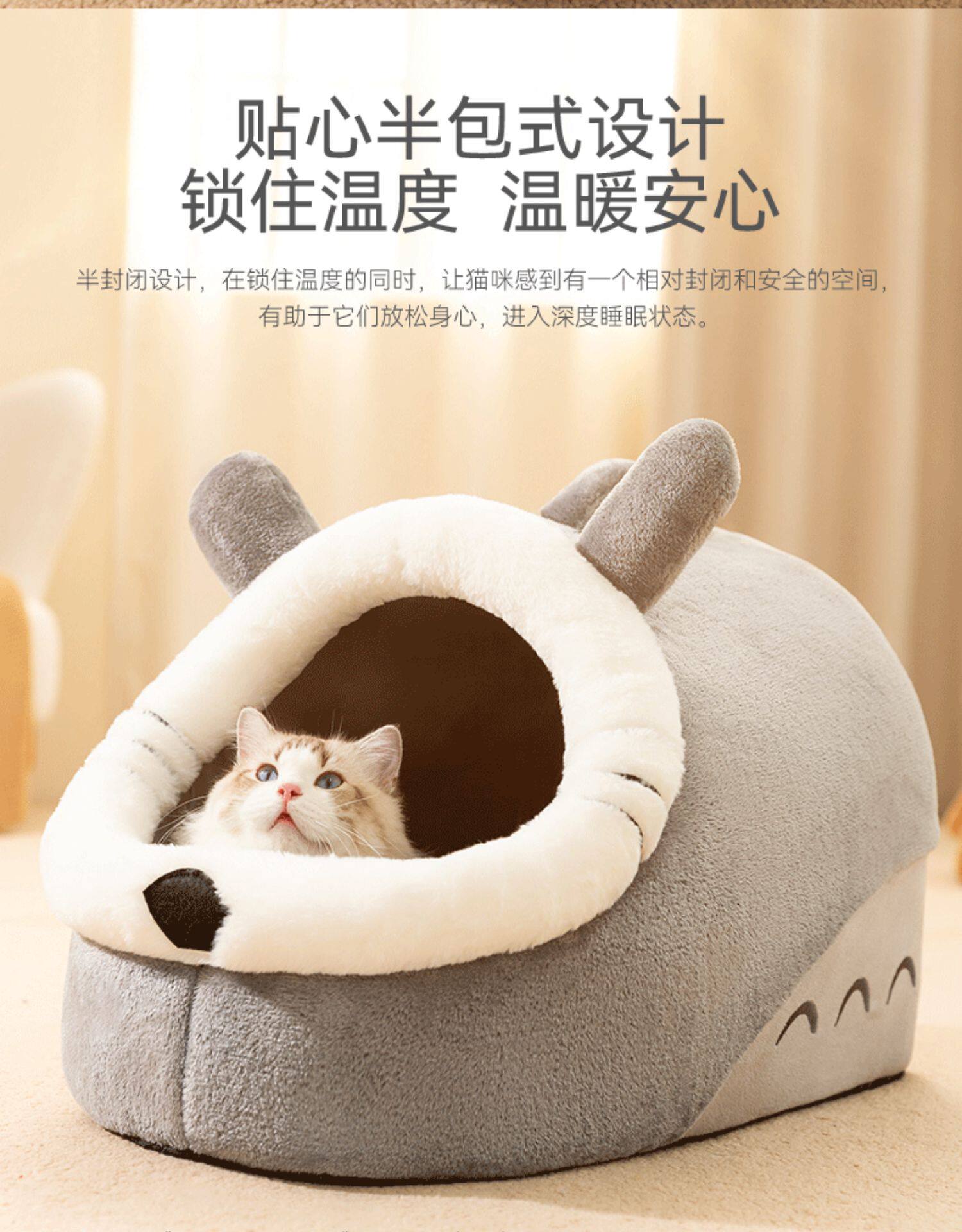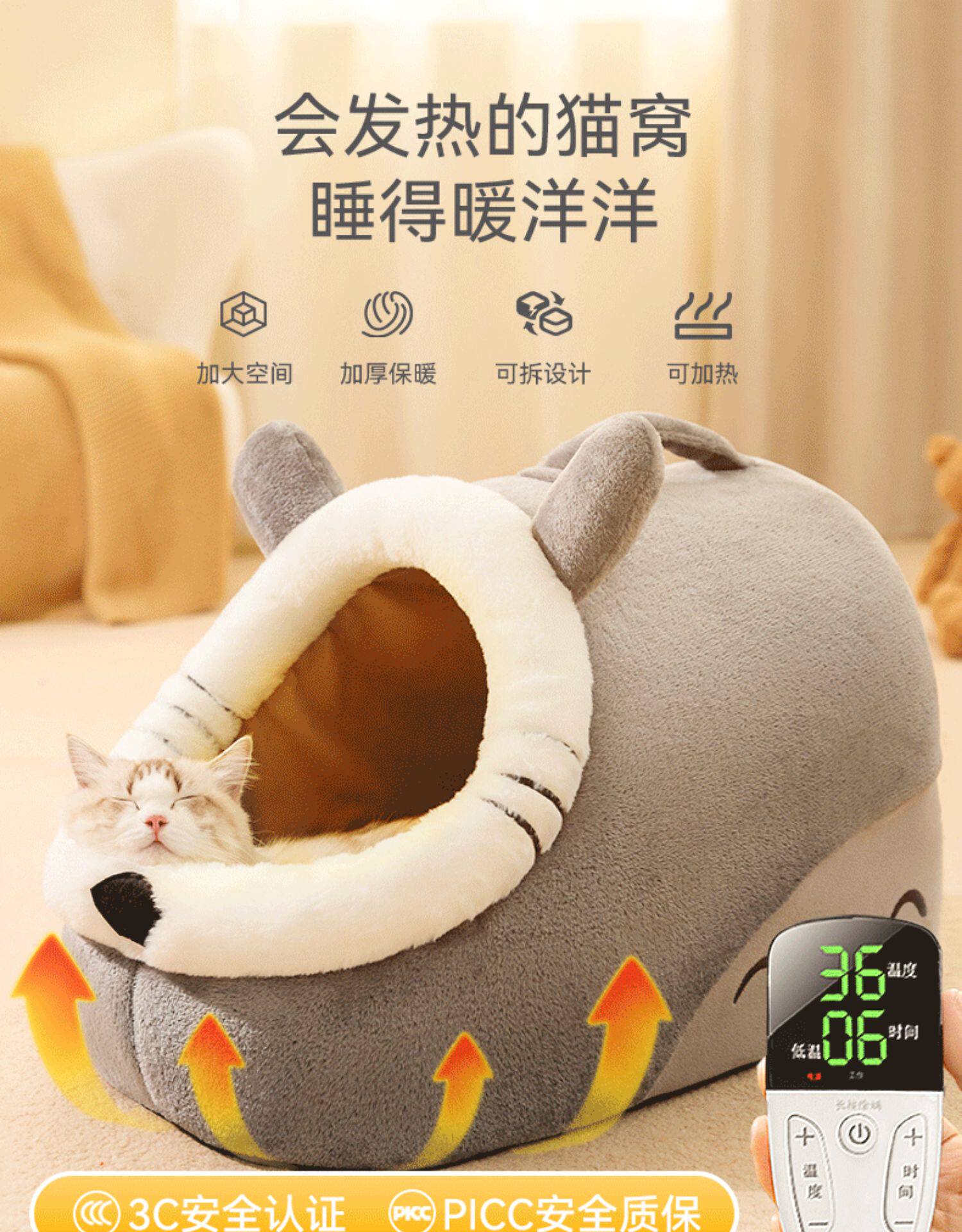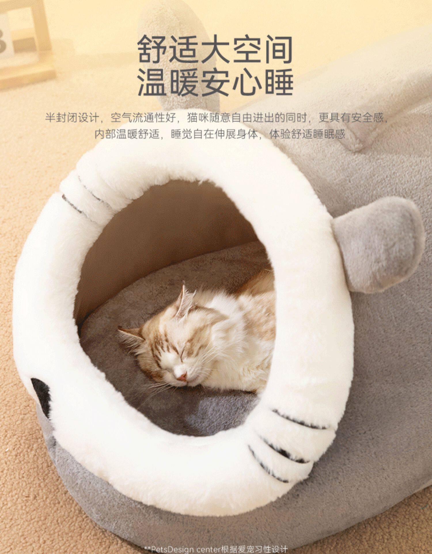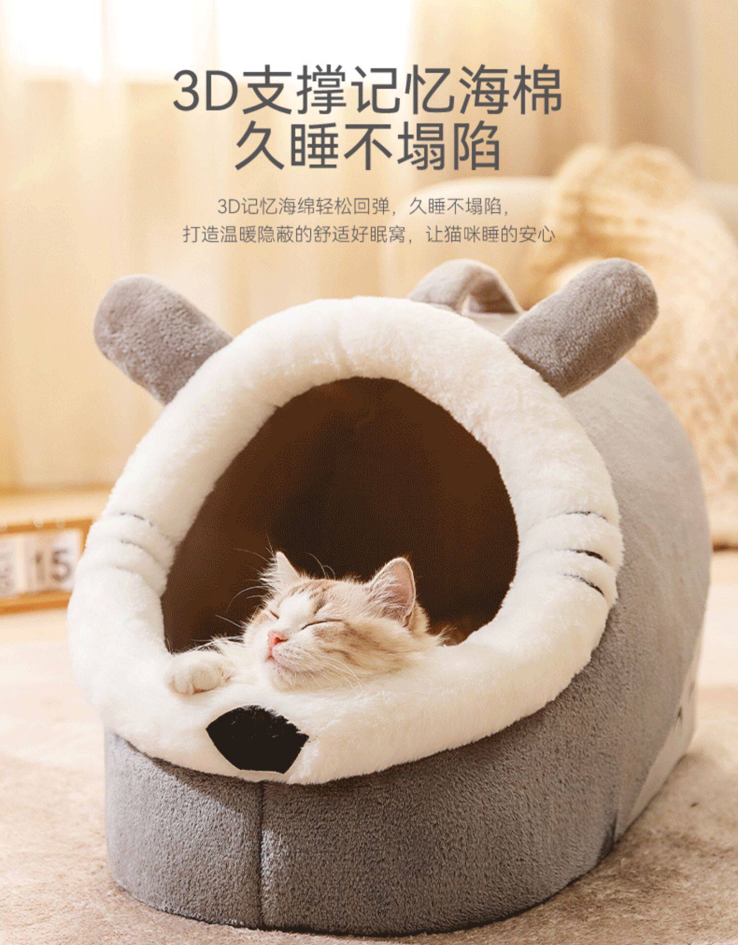 Cat kennel is warm in winter, thickened and heated, with electric blanket, semi-enclosed kennel mat, cold-proof, four-season universal kennel