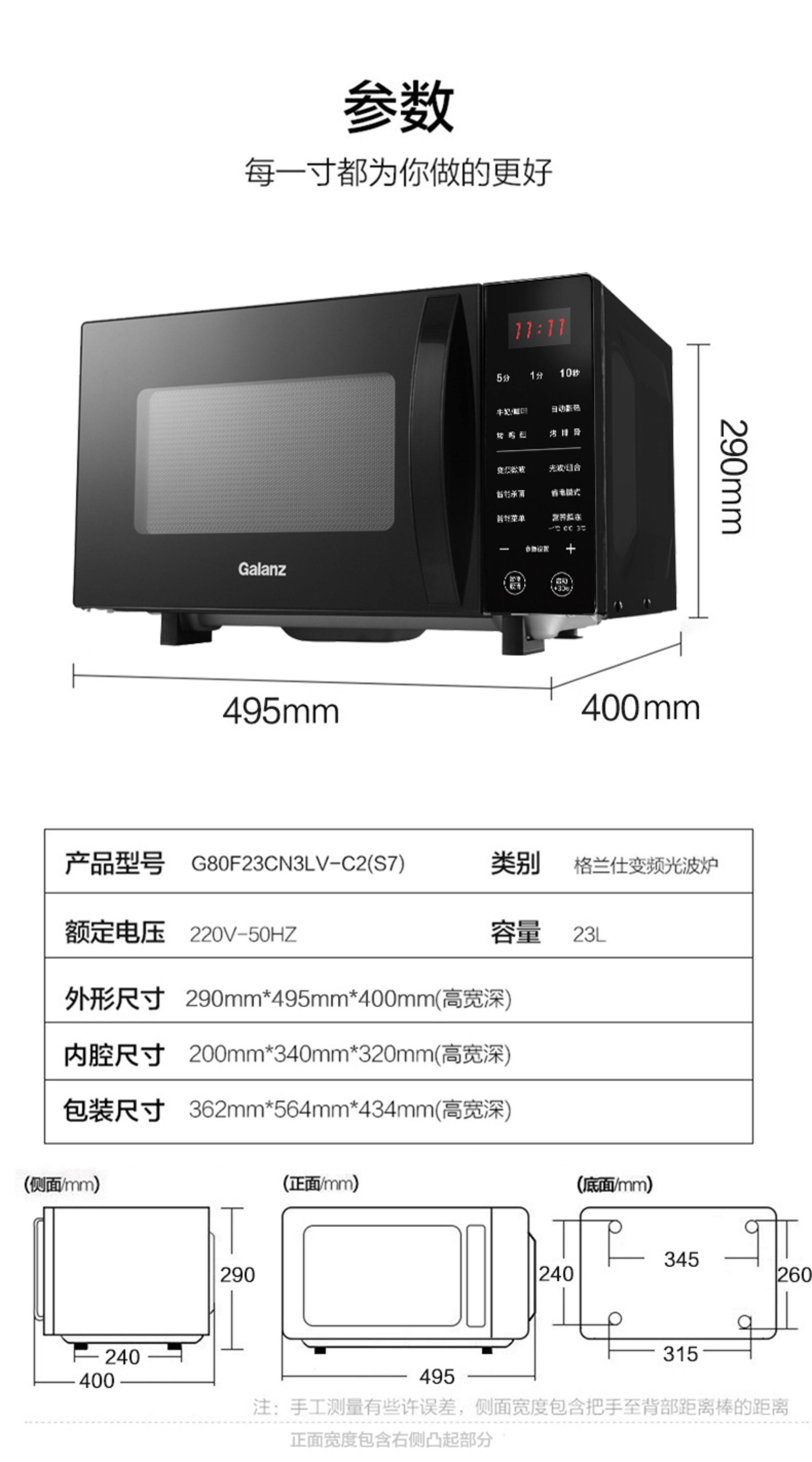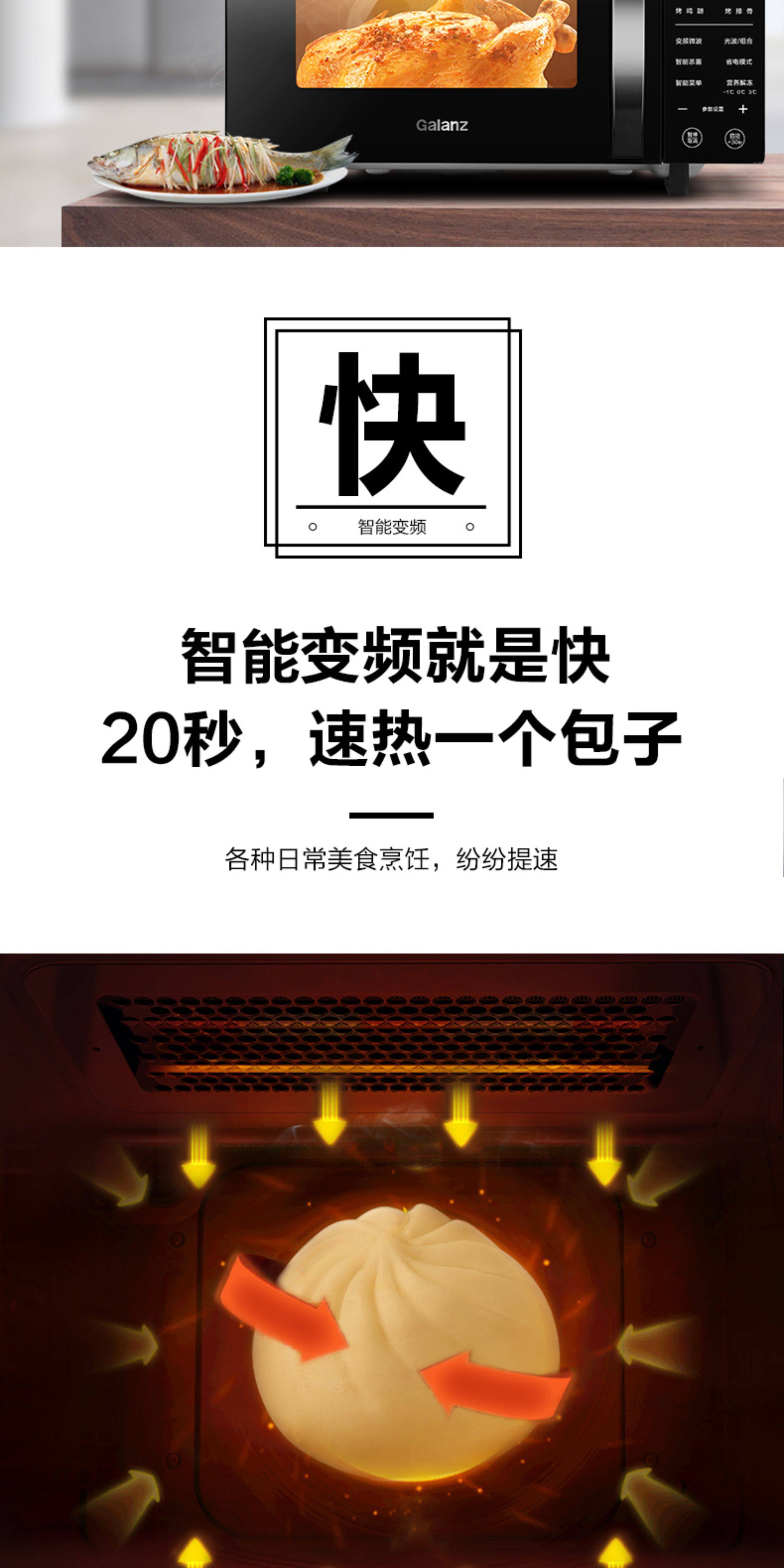 Galanz frequency converter microwave oven household 23-liter large flat panel light wave oven micro steam oven integrated machine official genuine product