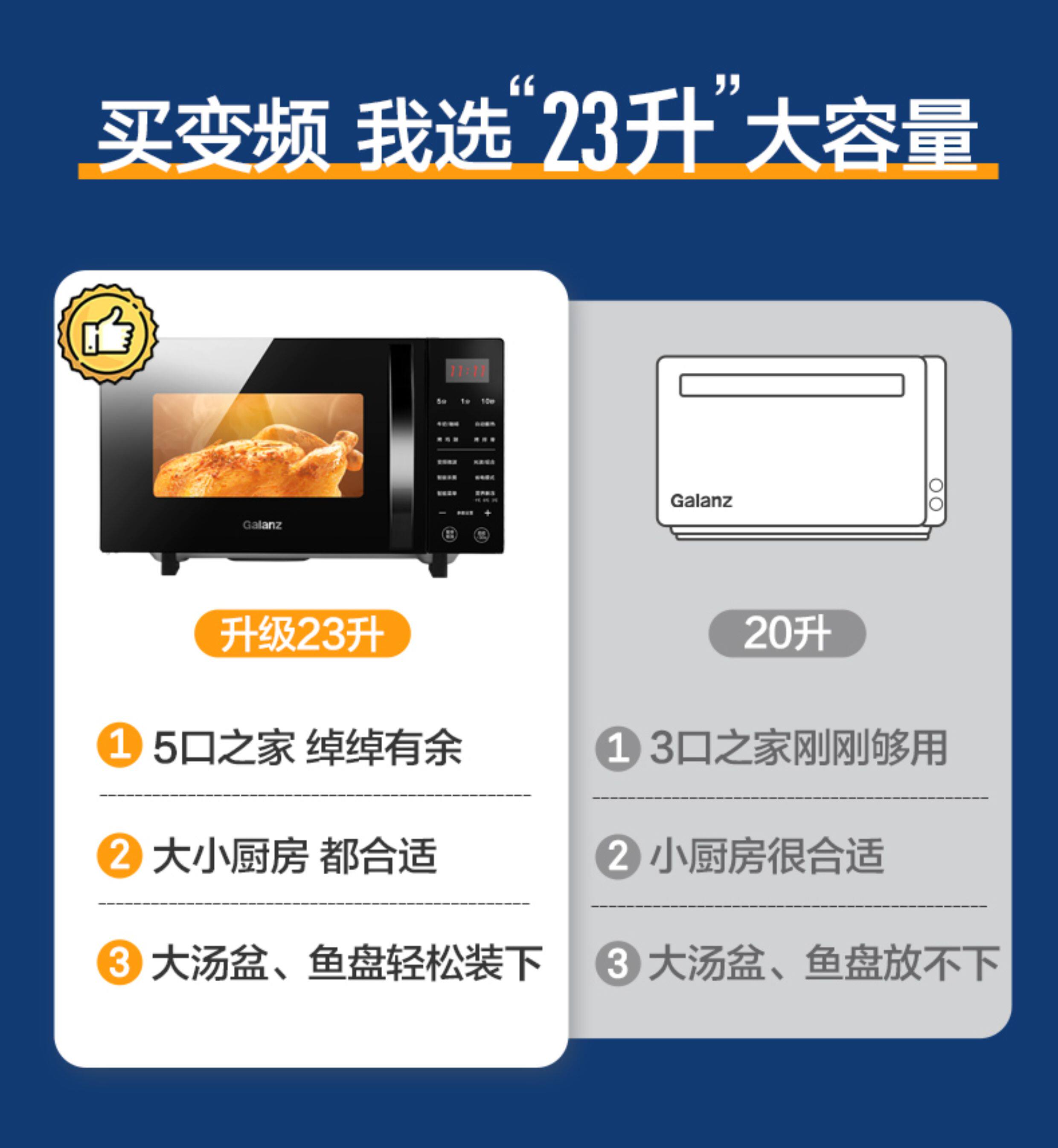 Sort by color 23L Level 1 Energy Efficiency Variable Frequency Micro Steam Grill Main Picture Model,Upgraded to 900 watts 23 liters level 1 energy efficiency variable frequency micro-steamer,23 liters of first-level energy efficiency variable frequency micro-steaming main model with gift bag,20L White Level 1 Energy Efficiency Inverter Microwave Oven,23 liters of first-class energy efficiency variable frequency micro-steaming and grilling main picture,Upgraded to 900W 23L Level 1 Energy Efficiency,800 watts 23 liters Level 1 energy efficiency