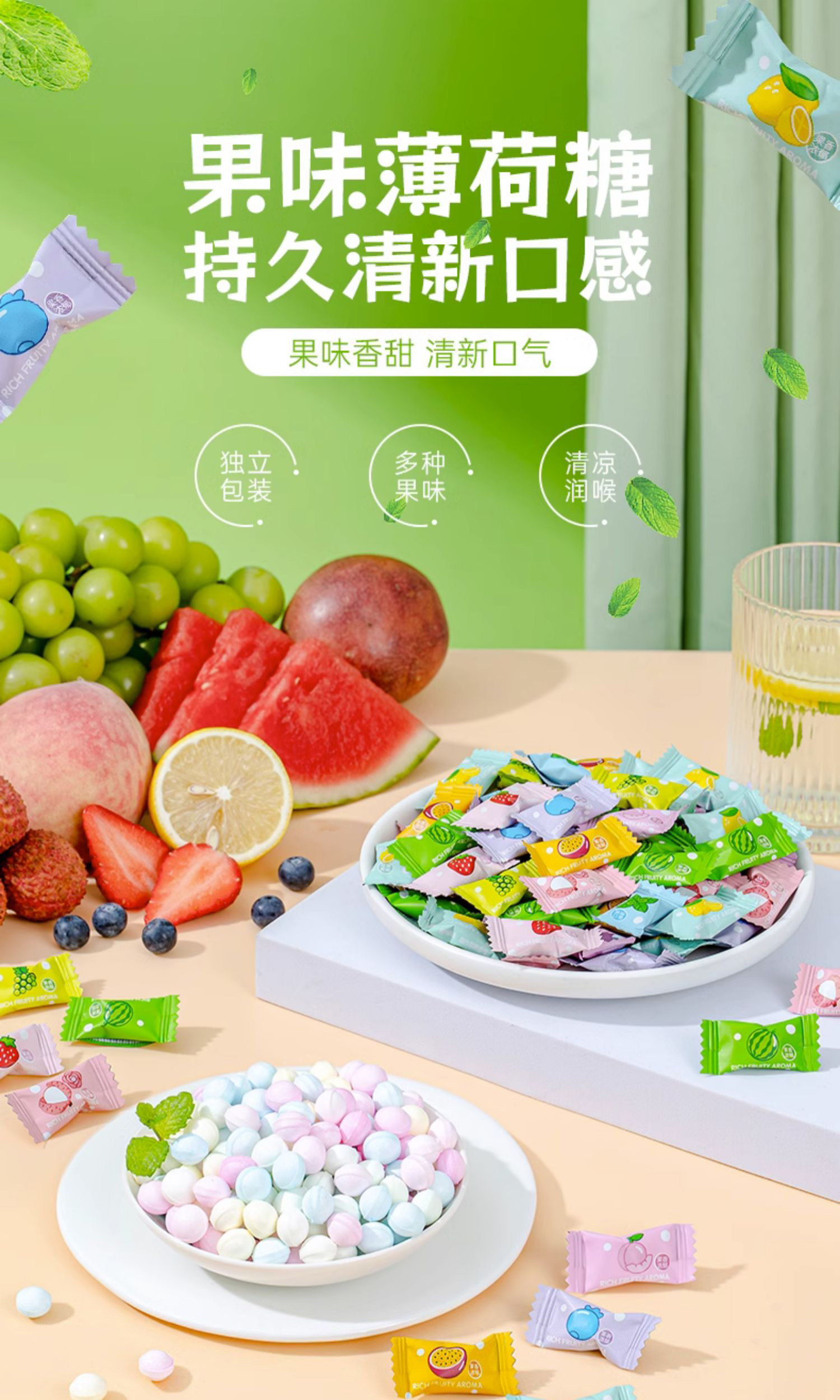 Sugar-Free Mint Candies for Fresh Breath, Refreshing Mint Fruit Flavor, Vitamin C, Commercial Popular Candy, Portable Wholesale