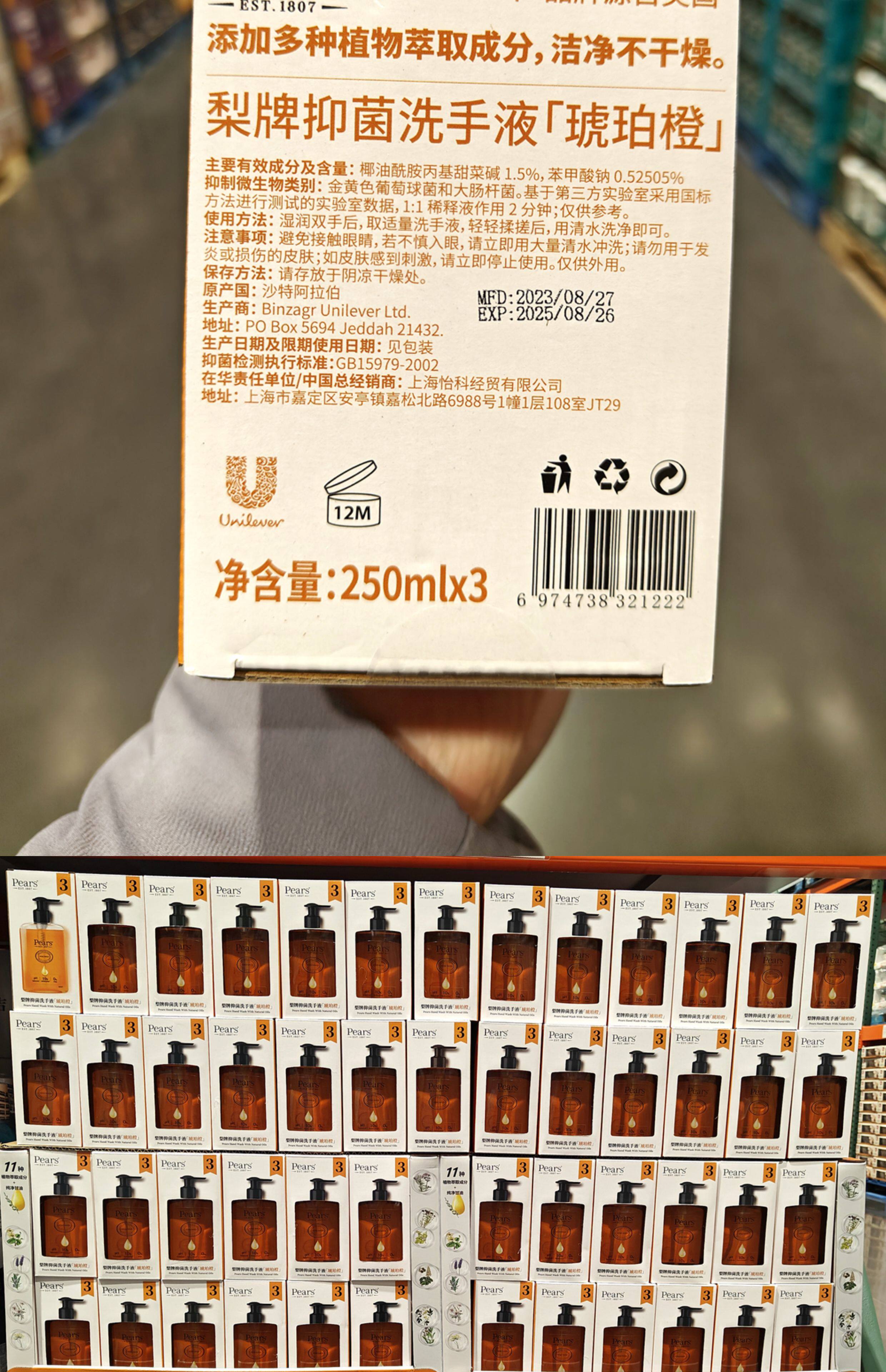 Costco Pears Amber Orange Antibacterial Hand Sanitizer Plant Extract Mild Antibacterial Imported from Saudi Arabia