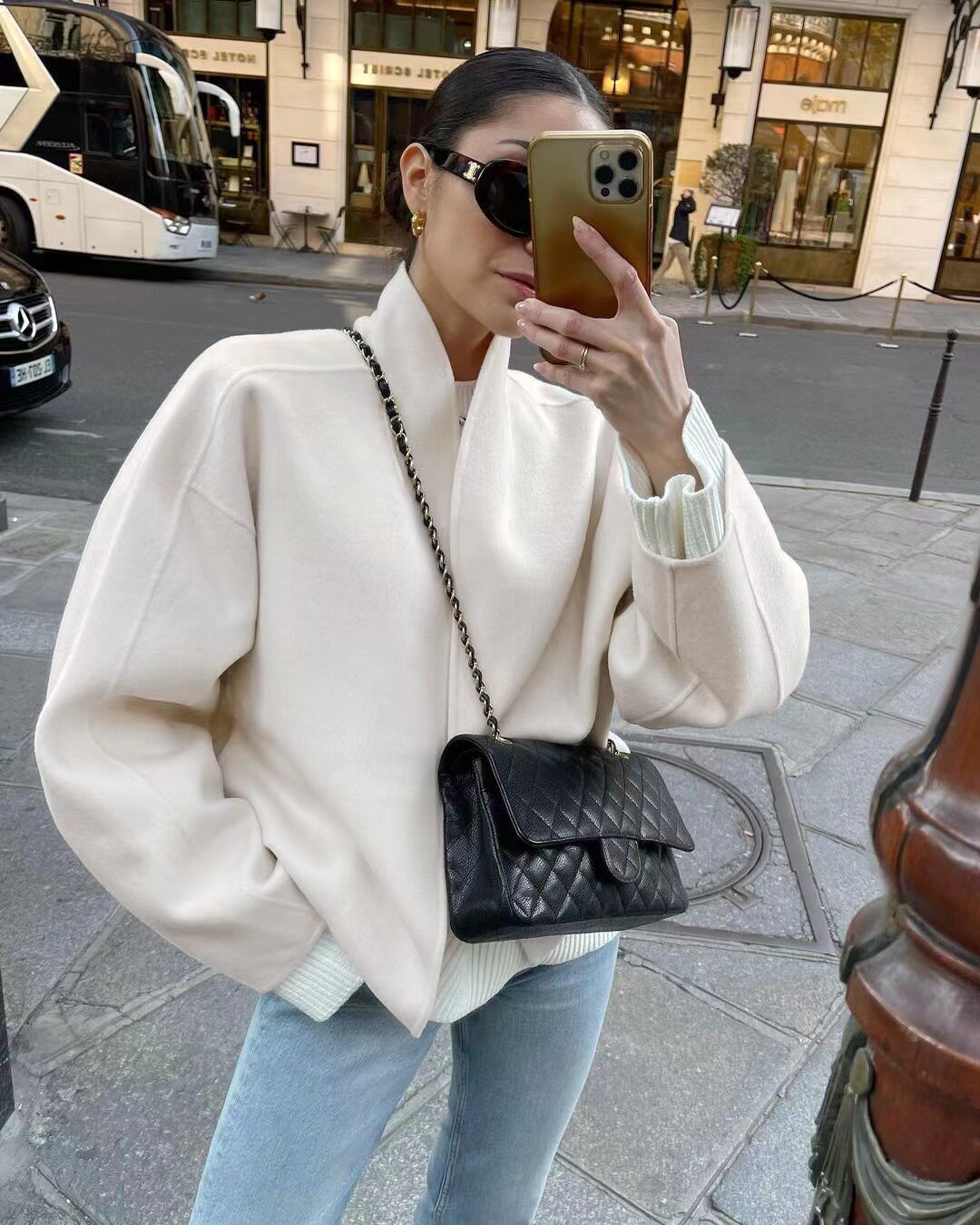 European and American Style New Loose-Fitting Long-Sleeved Short Woolen Jacket