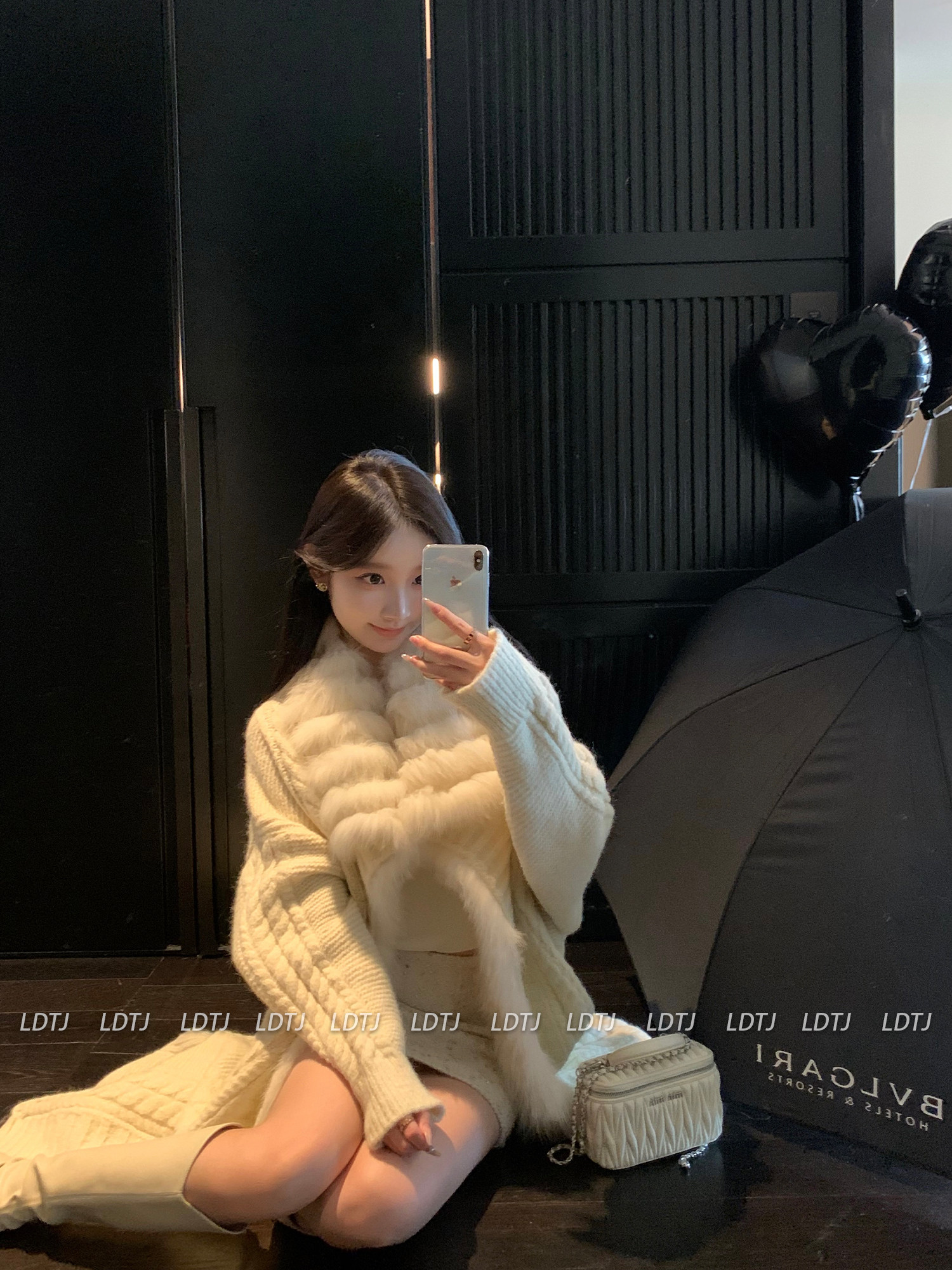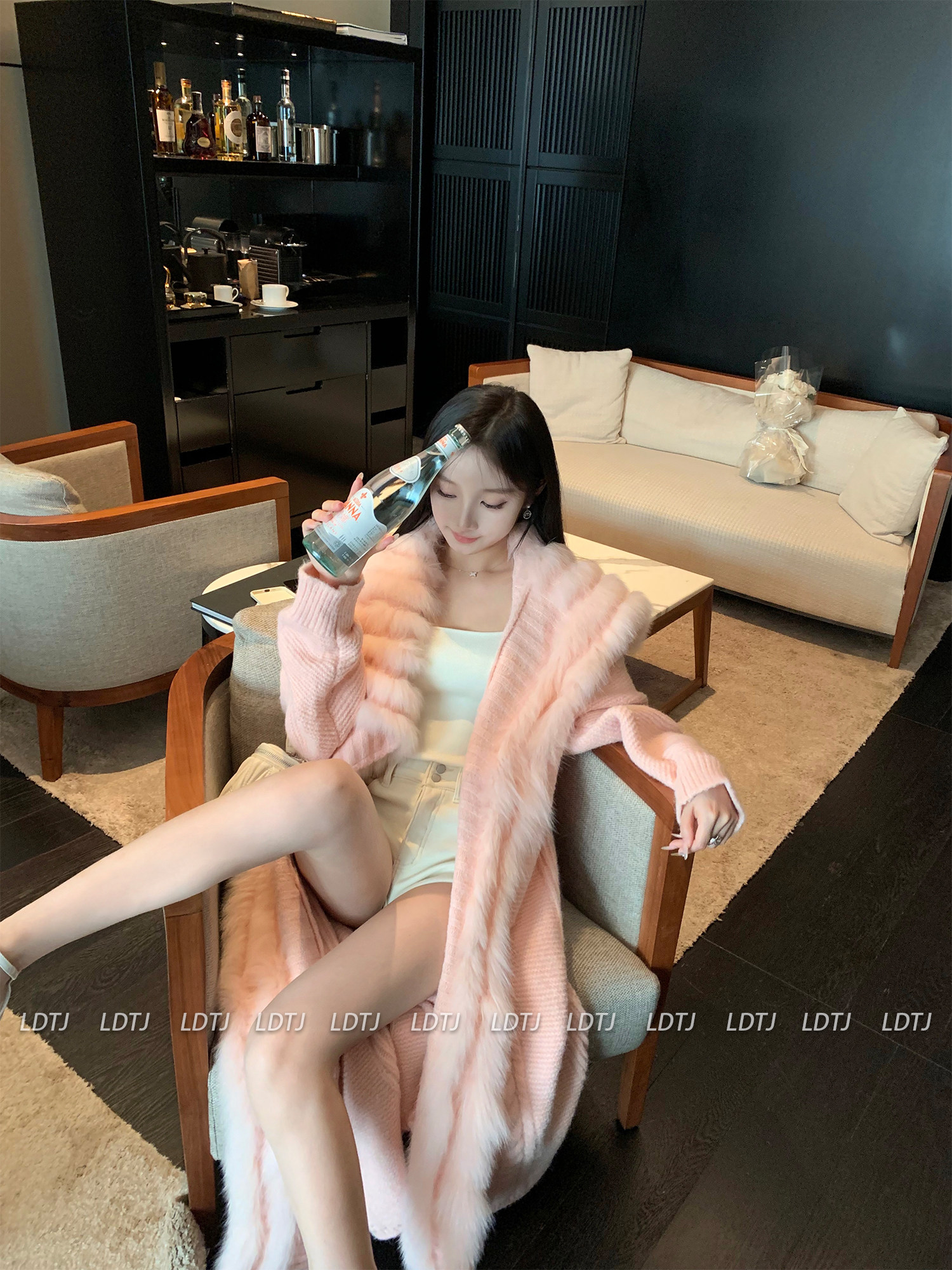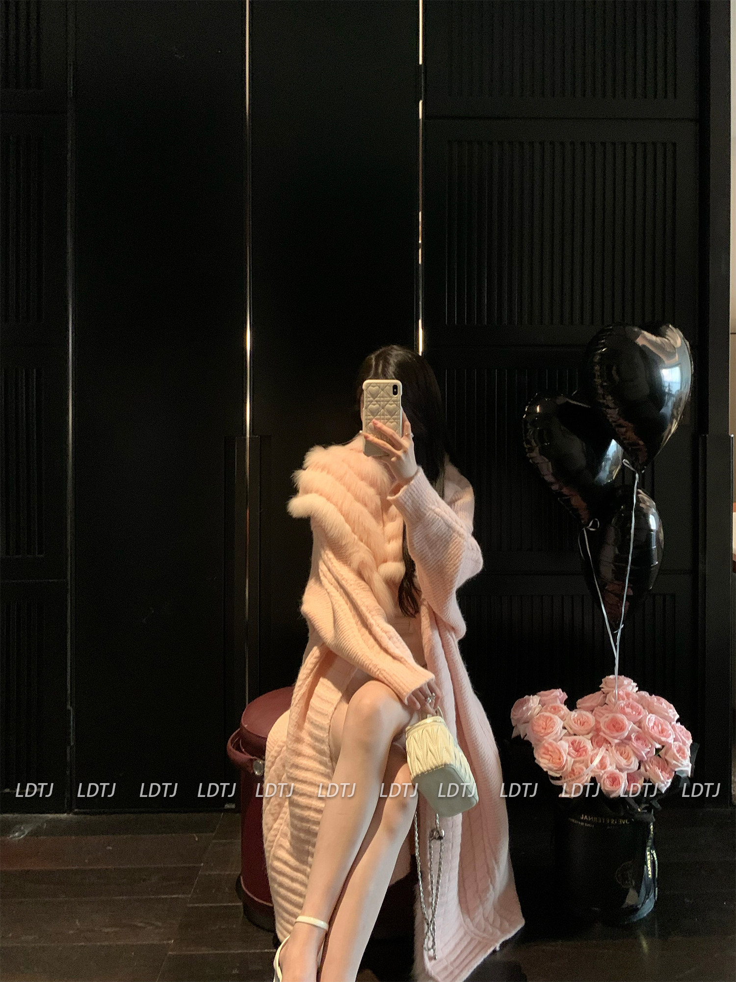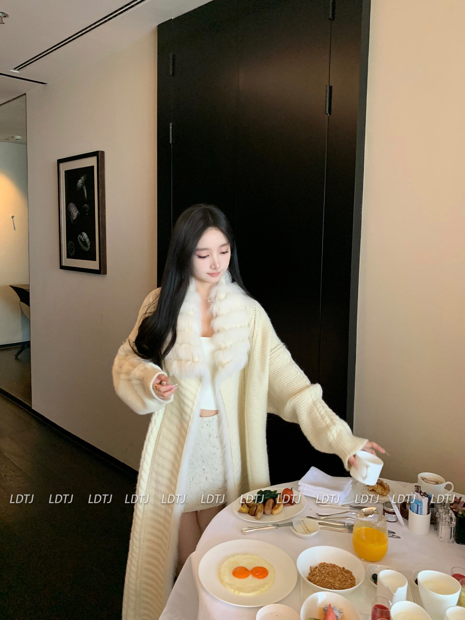 Ldtj High-End Knit Sweater Autumn Ladylike Lazy Style Fox Fur Collar Patchwork Mid-Length Wool Coat for Women
