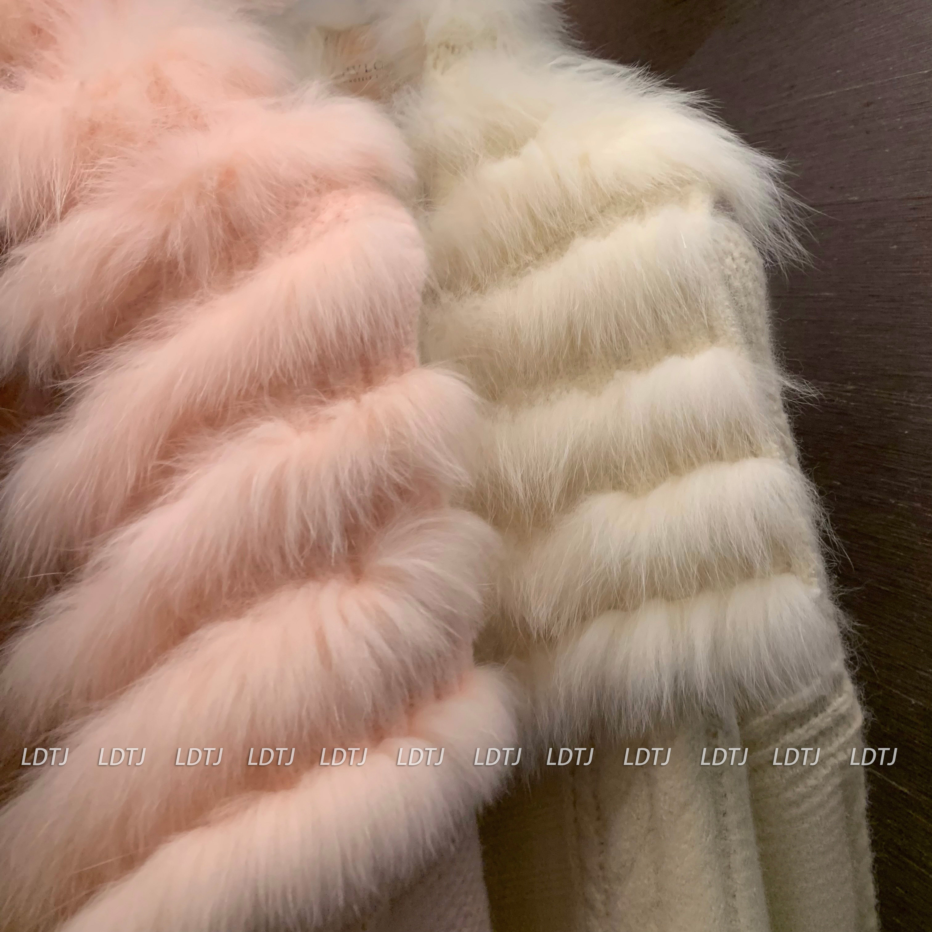 Color Classification Pink Knit Sweater, 100% Wool with Imported Fox Fur Trim. Premium Quality, Directly from the Department Store,White Knit Sweater, 100% Wool with Imported Fox Fur Trim. Premium Quality, Directly from the Department Store