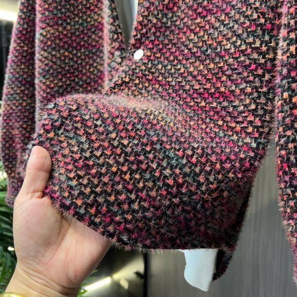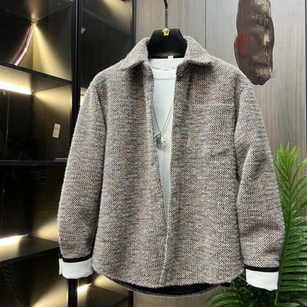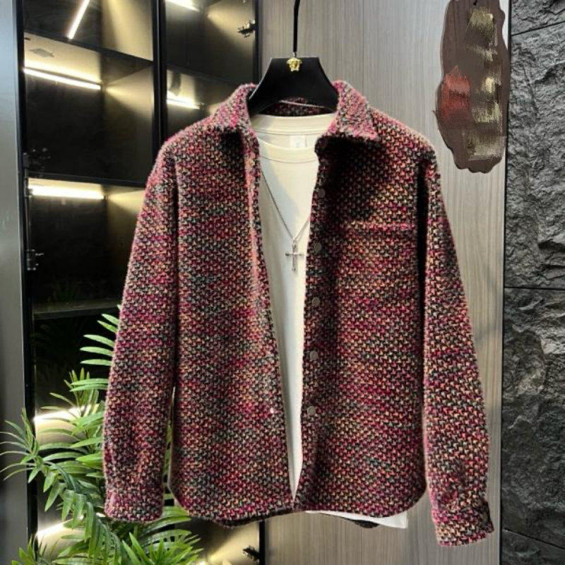 Autumn and Winter Mixed-Color Tweed-Style Knitted Cotton-Padded Thick Long-Sleeve Shirt for Young Men, Trendy Casual Shirt Jacket