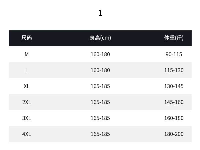China (cm) 165 / 88-90 170 / 96-98 175 / 108-110 180 / 118-122 185 / 126-130