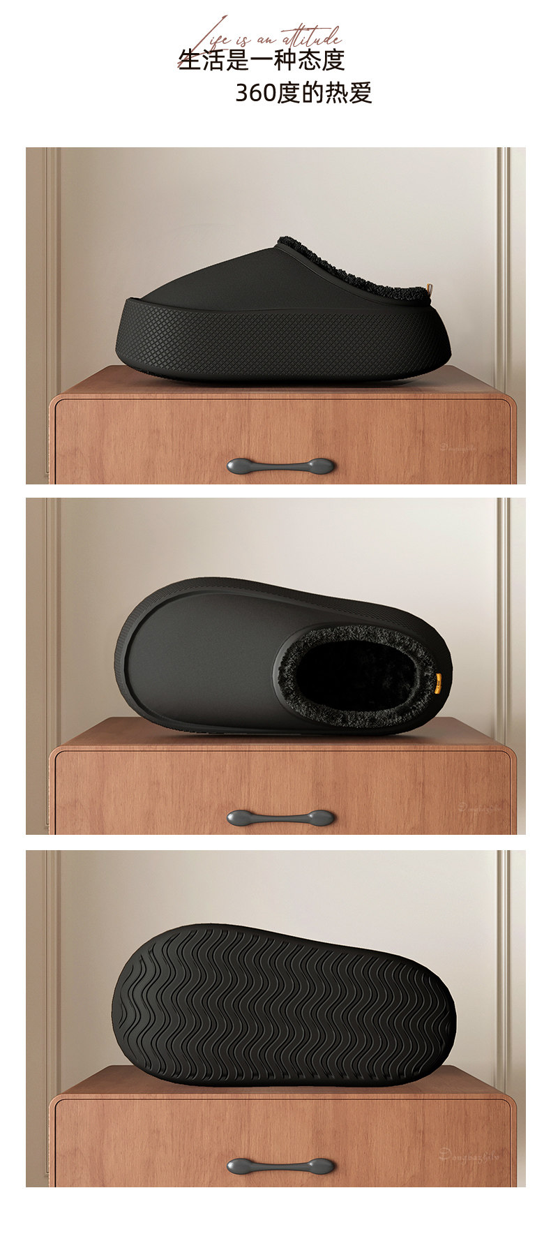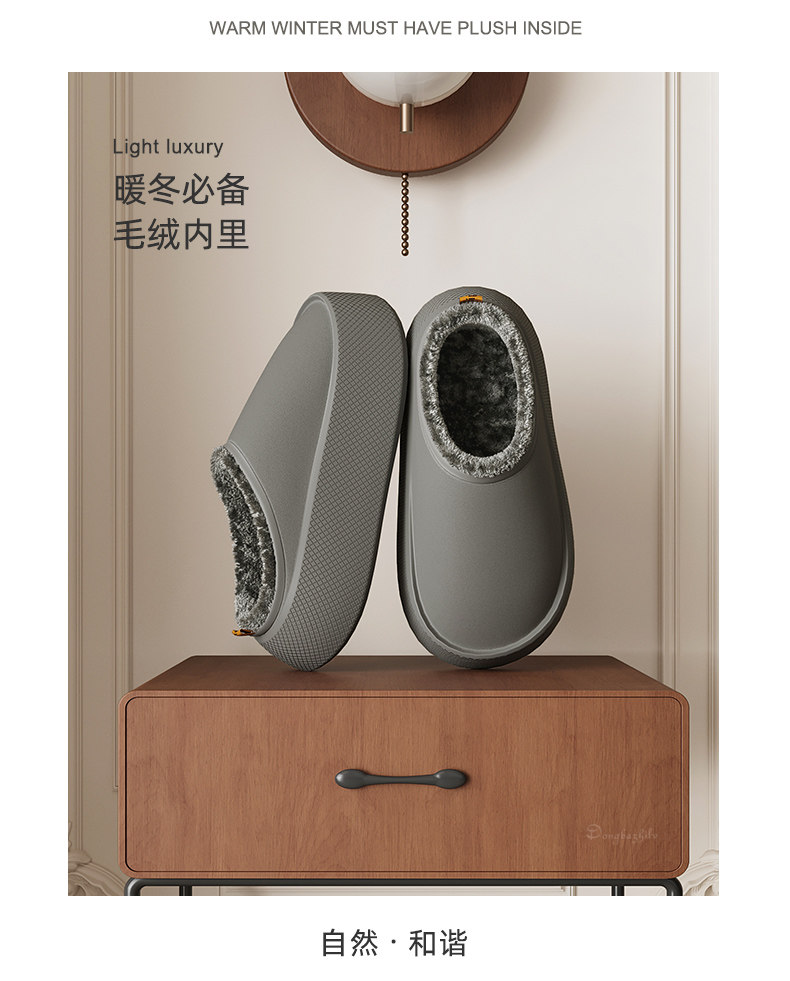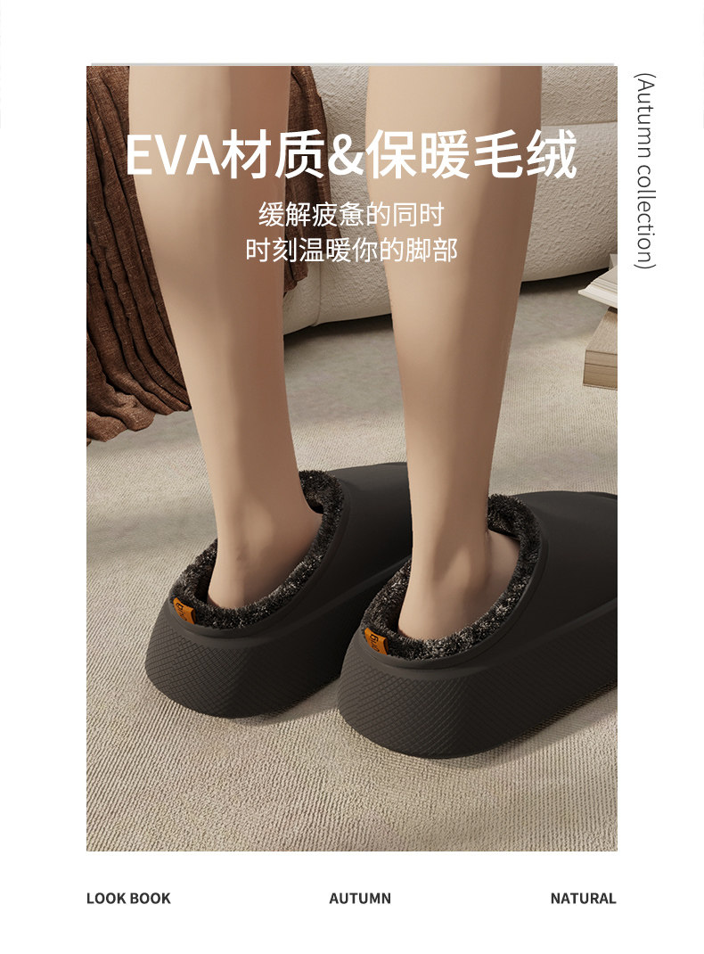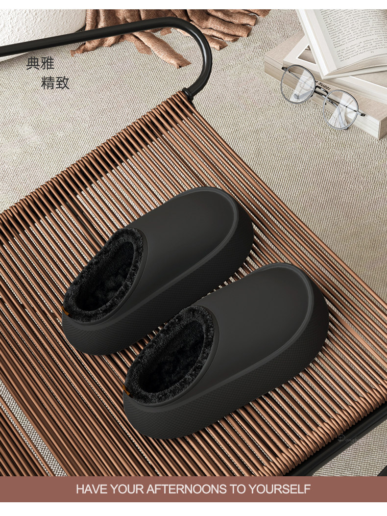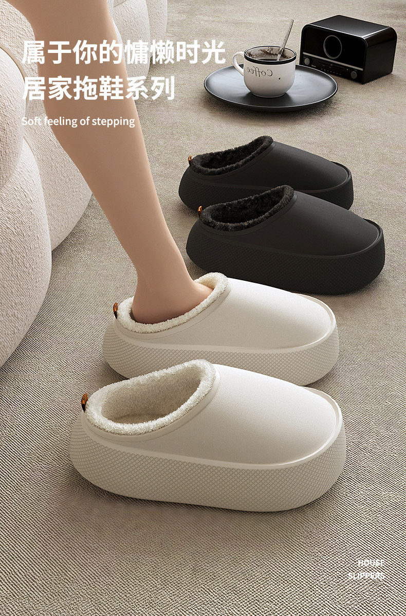 EVA thick-soled thick-soled waterproof cotton slippers for men and women in autumn and winter for couples to wear at home and add velvet to keep warm.