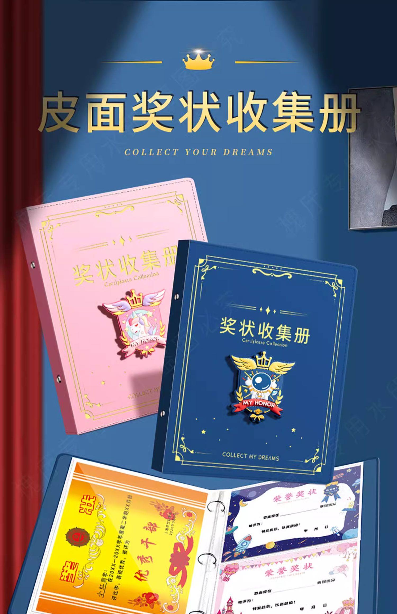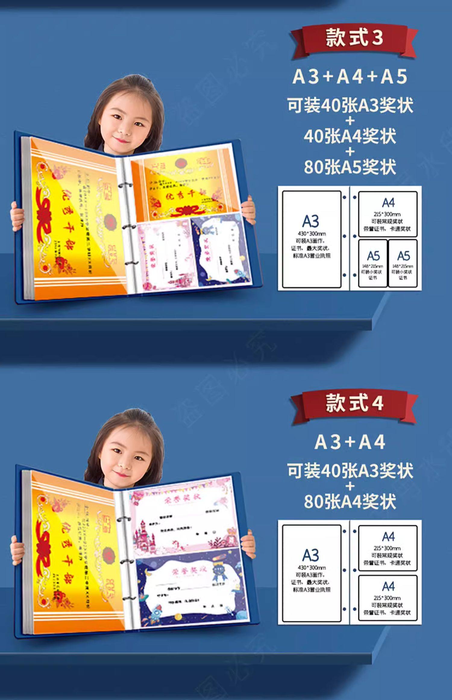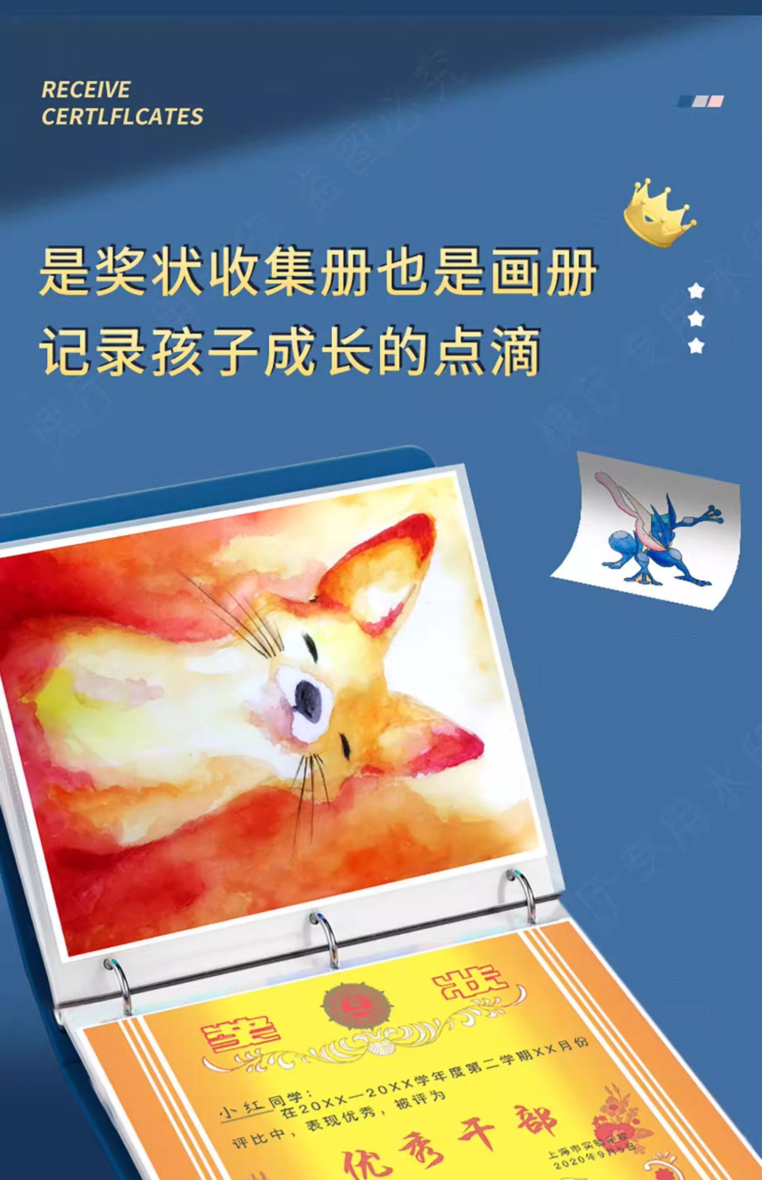 A4 leather-covered certificate collection book for boys and girls certificate of honor a3 children's picture album storage artifact primary school students use folder photo album collection bag to store works of the book can be hung on the wall display