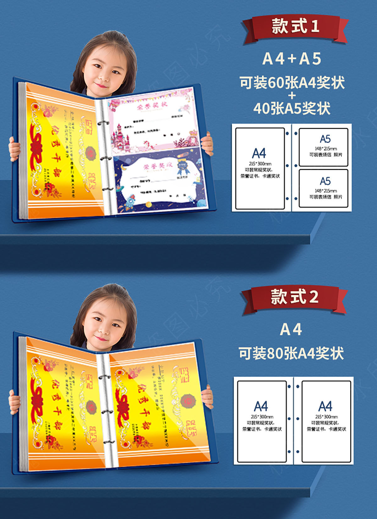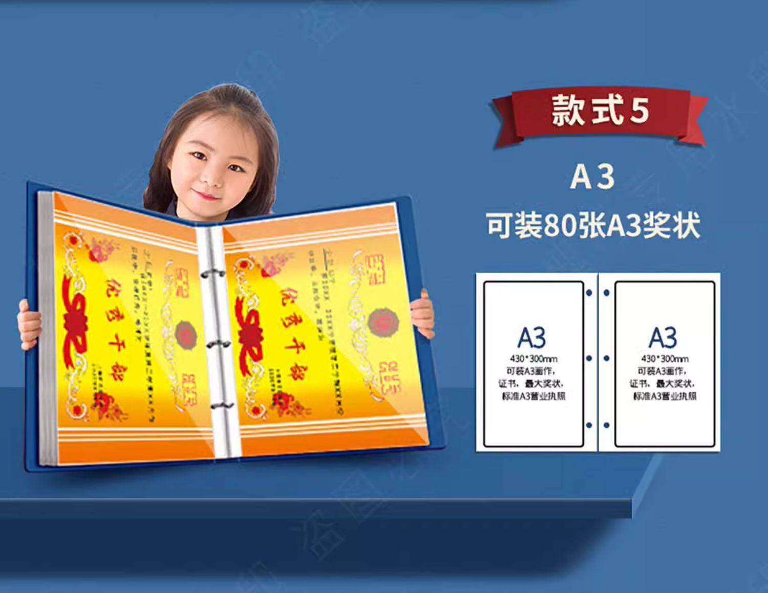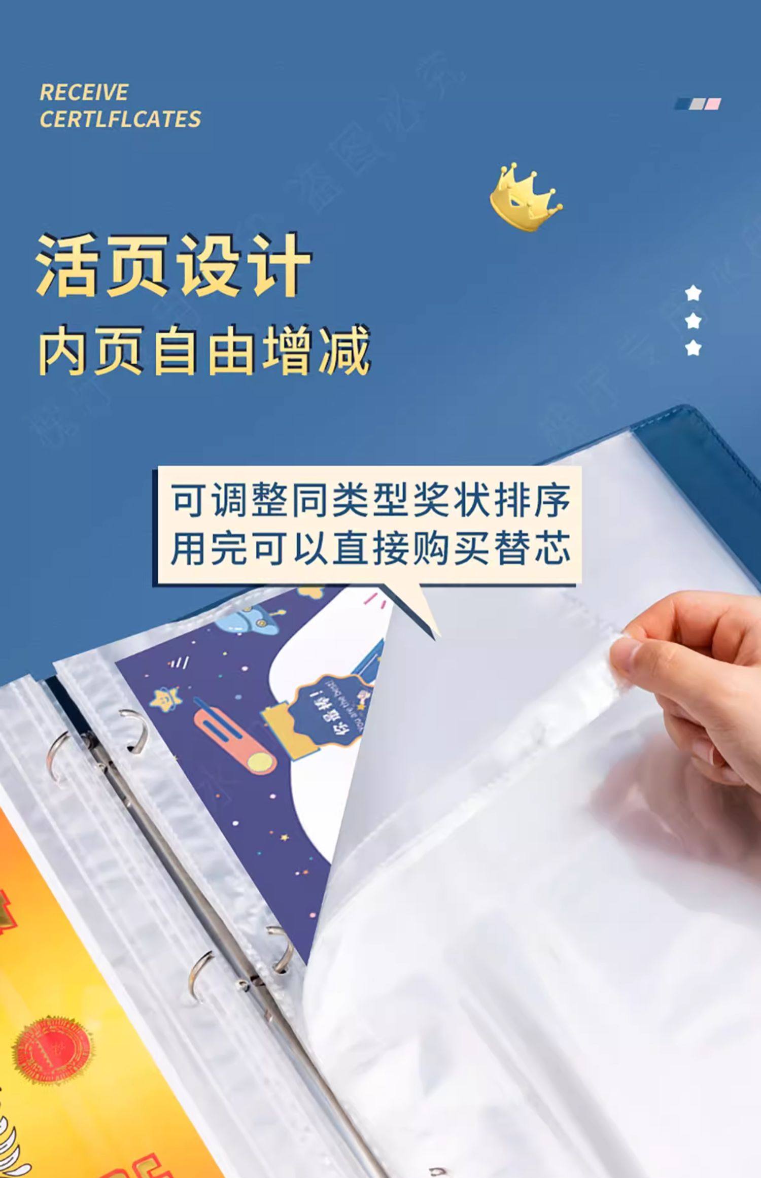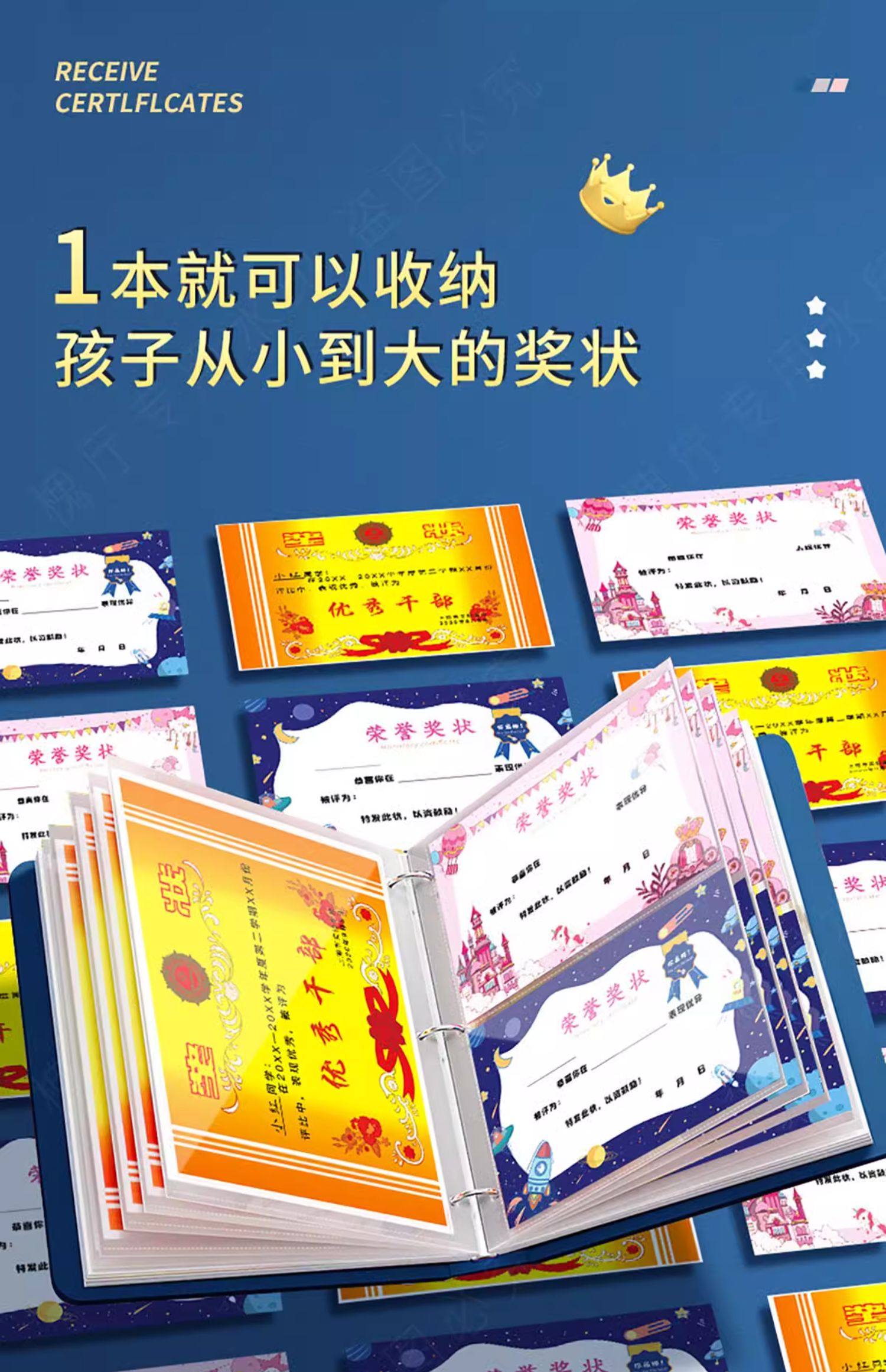 A4 leather-covered certificate collection book for boys and girls certificate of honor a3 children's picture album storage artifact primary school students use folder photo album collection bag to store works of the book can be hung on the wall display