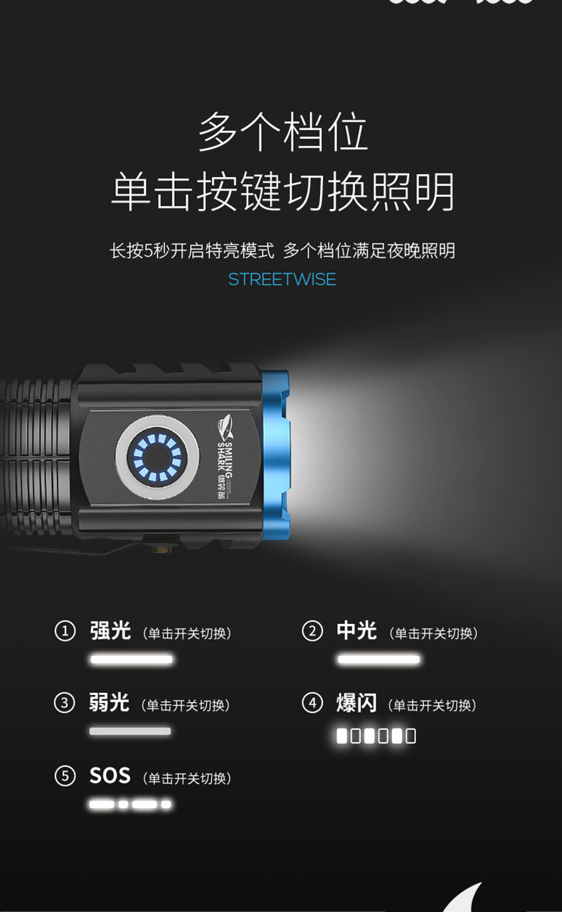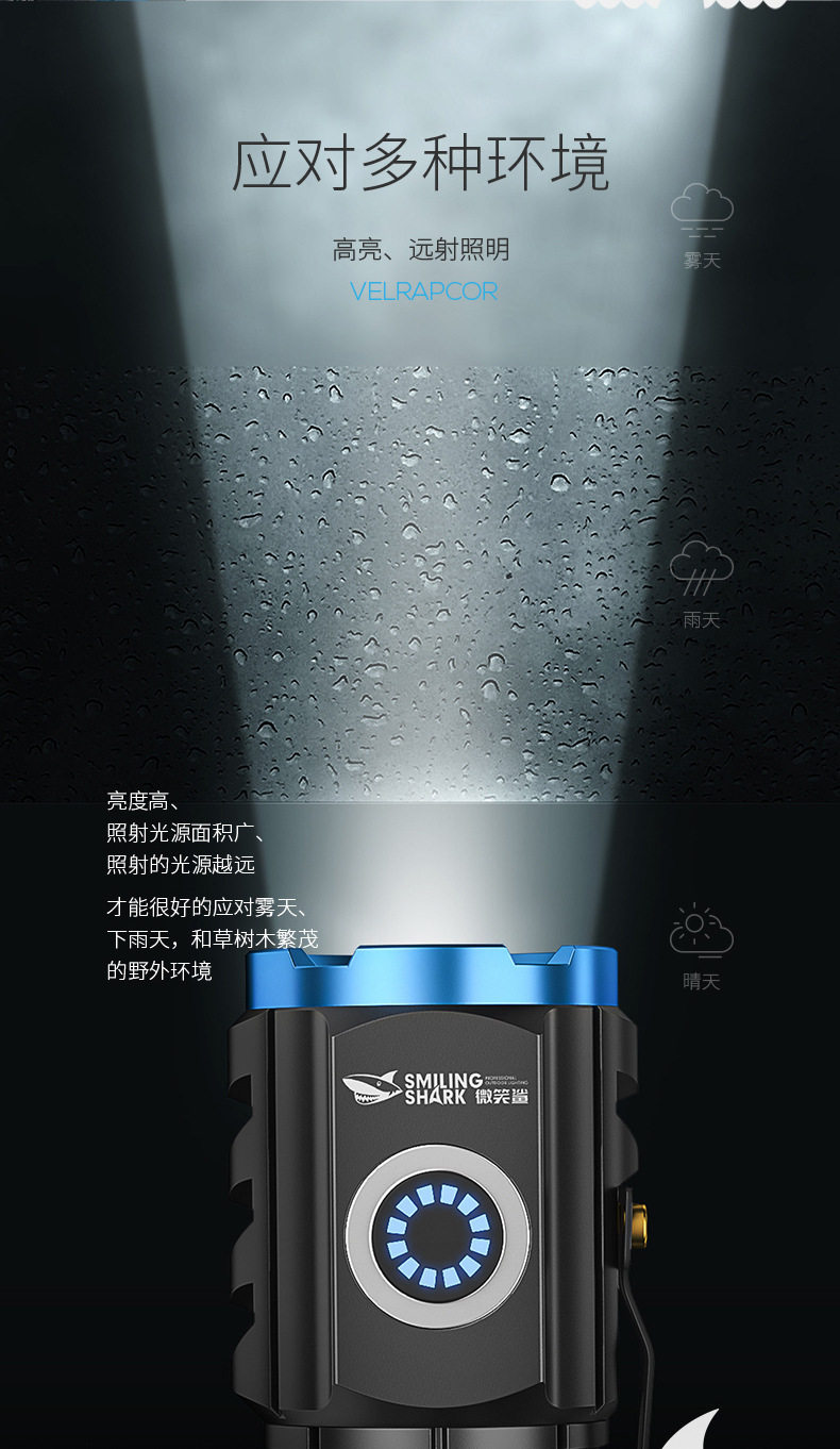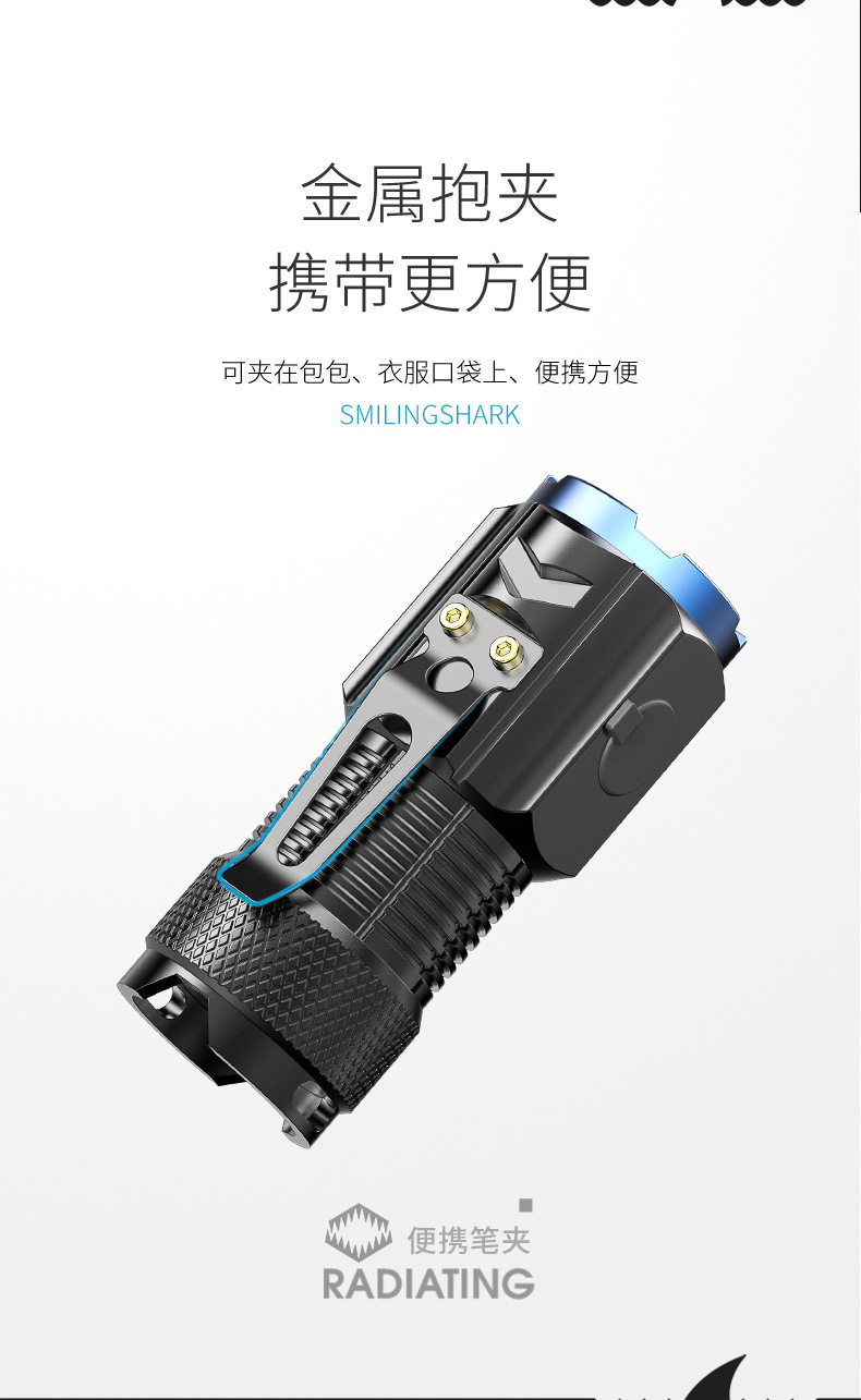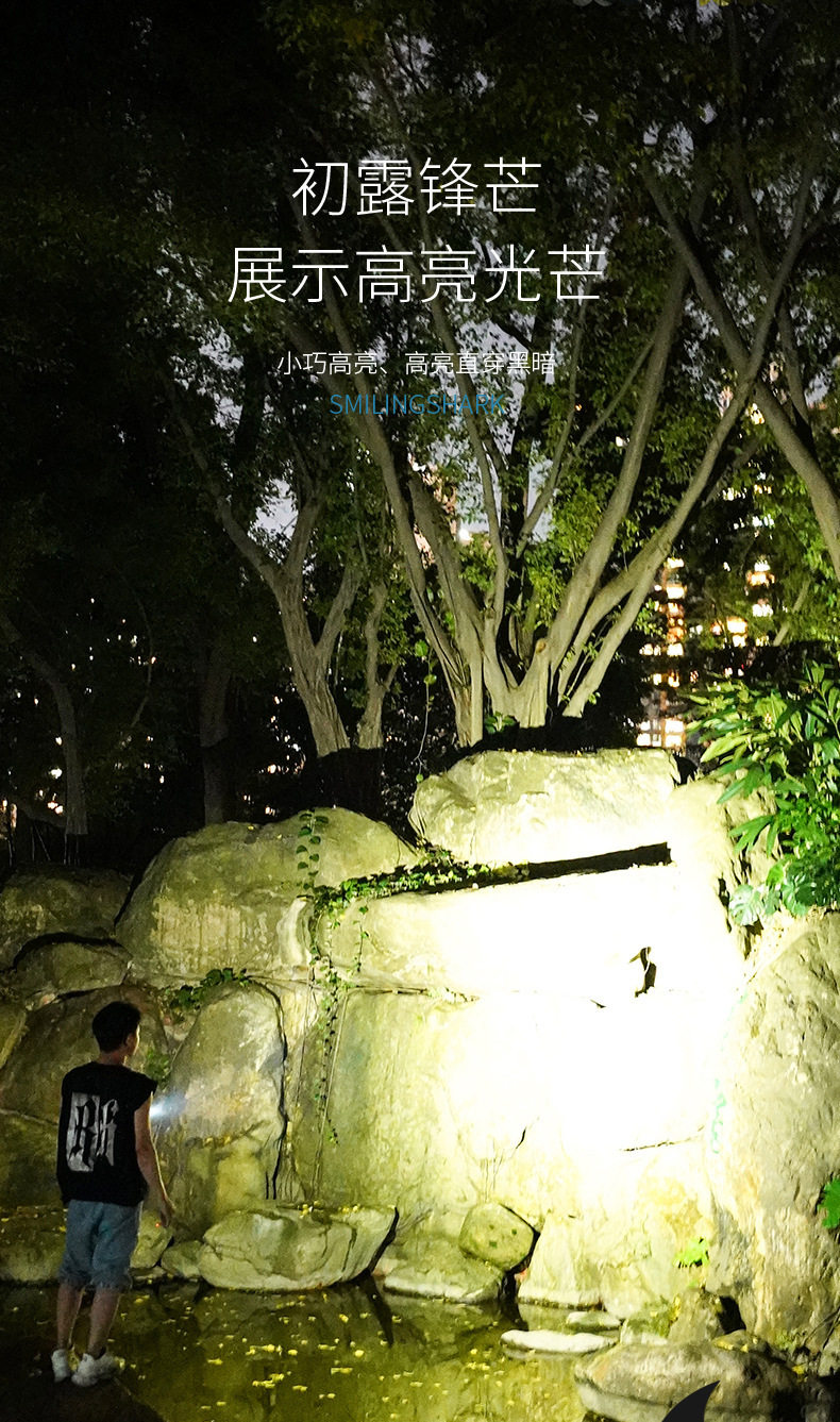 Smiling Shark High-Light Tactical Flashlight Mini Ultra-Bright Small Cannon Outdoor Long-Range Home Use Convenient Multi-Function Flashlight