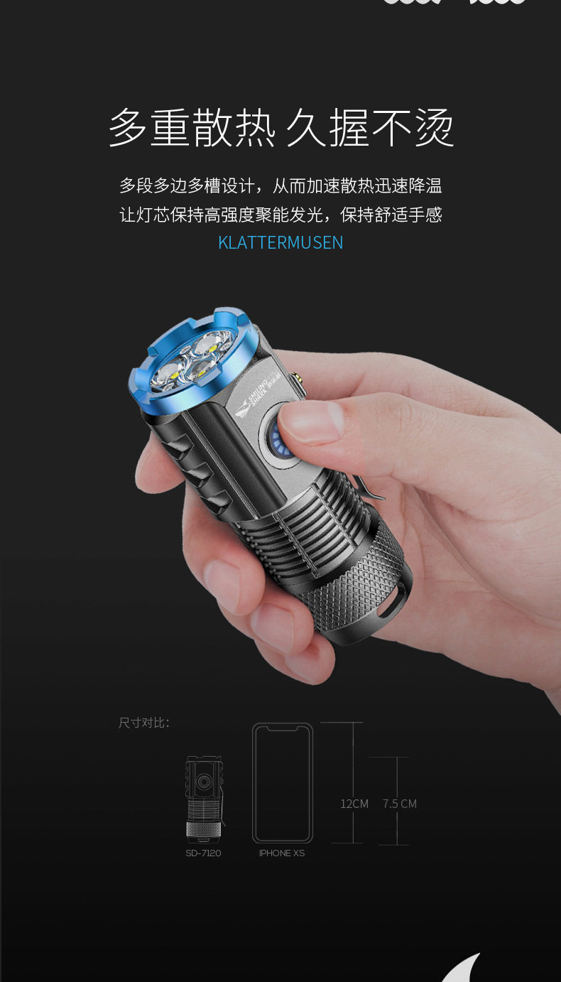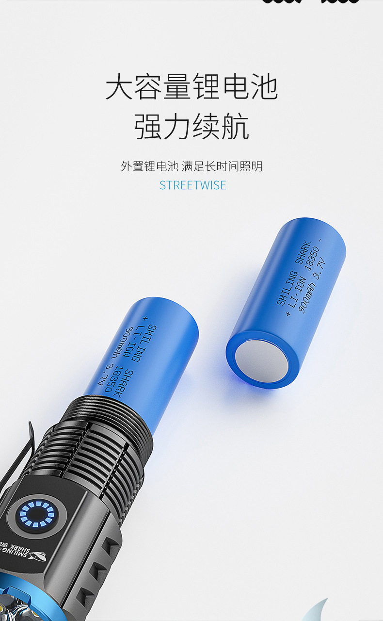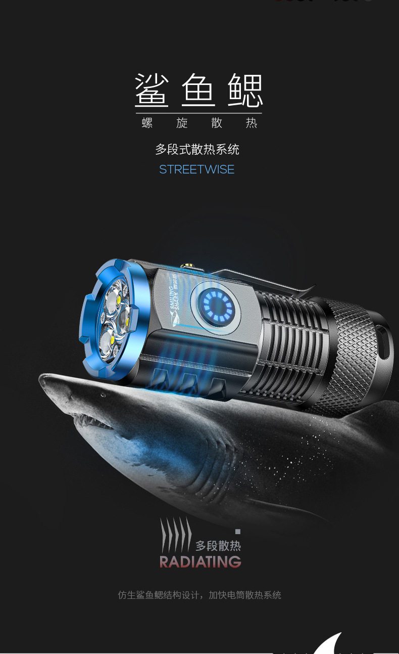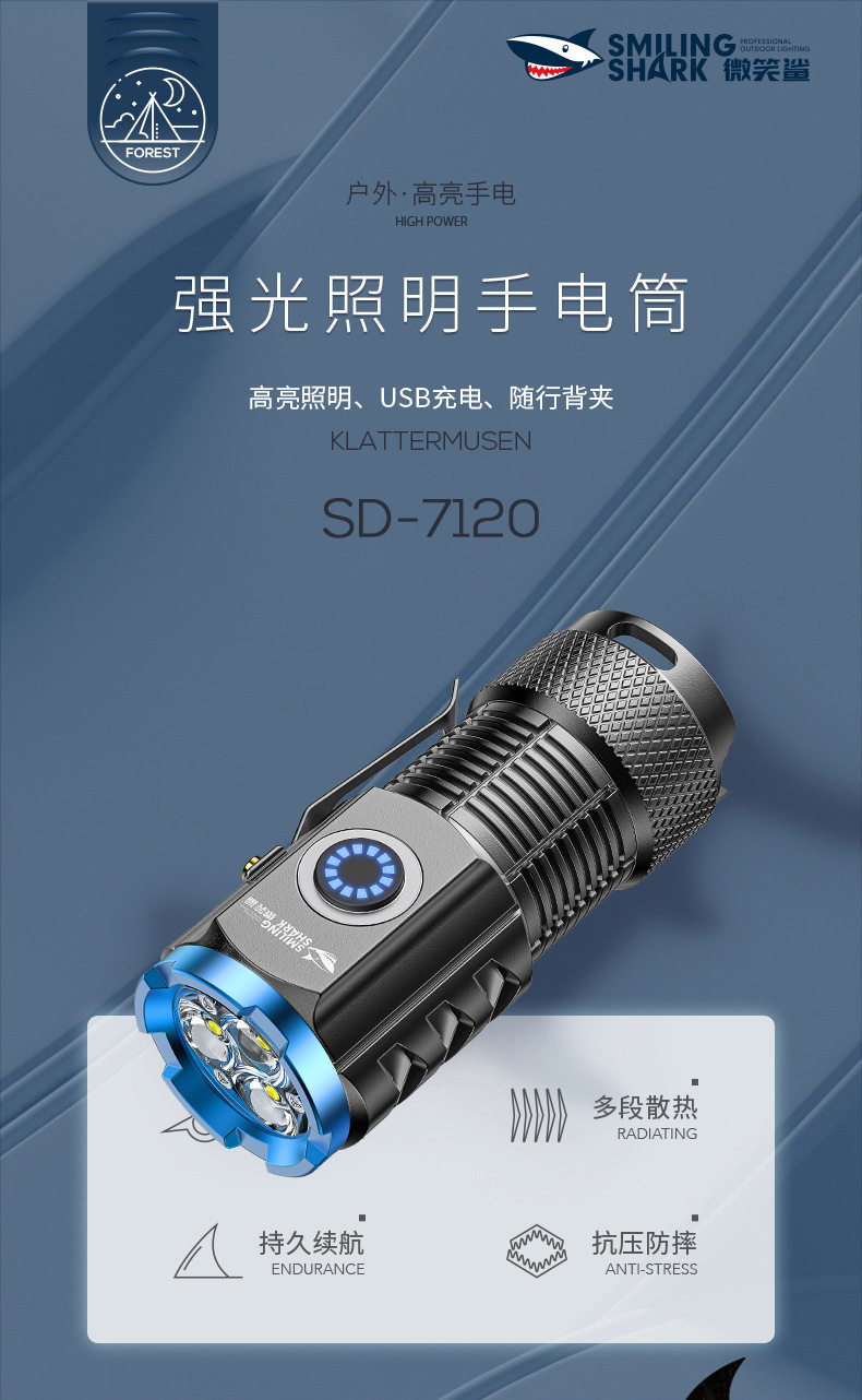 Smiling Shark High-Light Tactical Flashlight Mini Ultra-Bright Small Cannon Outdoor Long-Range Home Use Convenient Multi-Function Flashlight