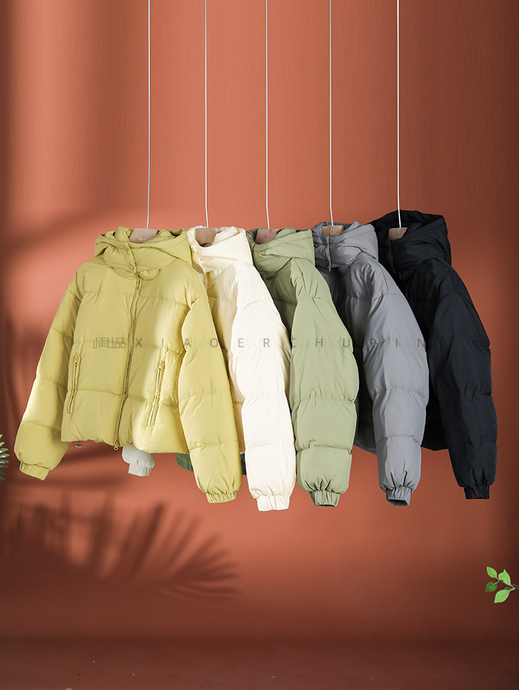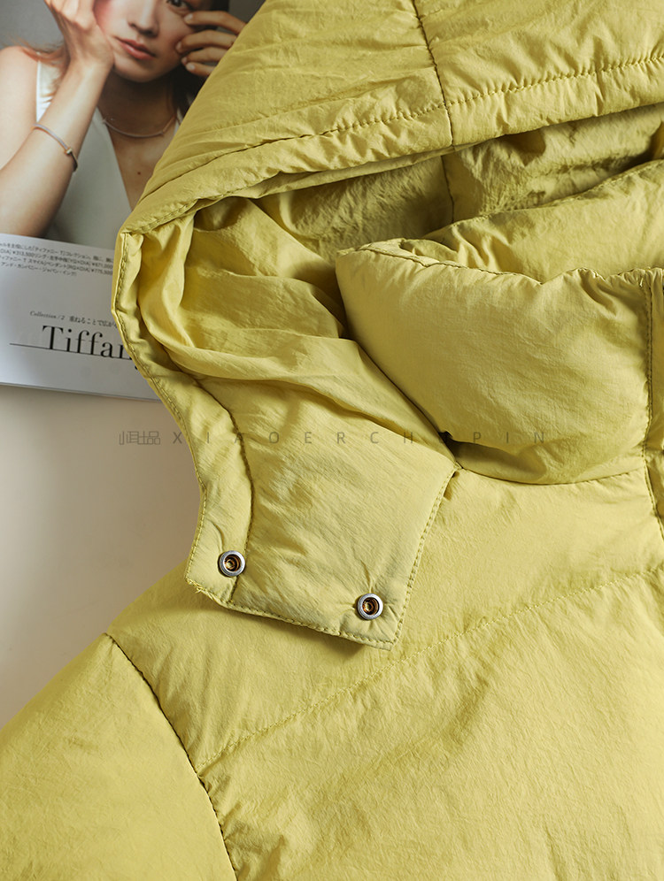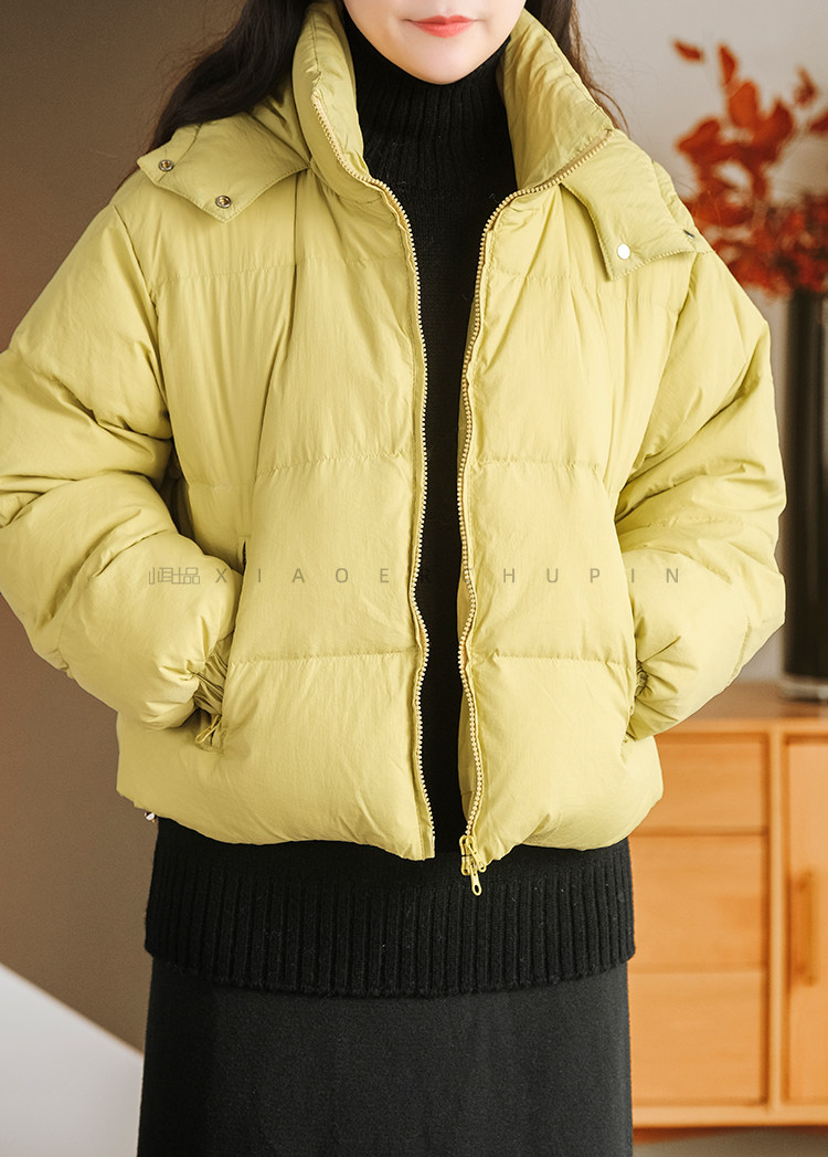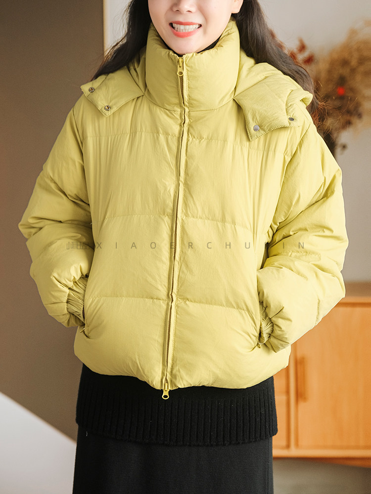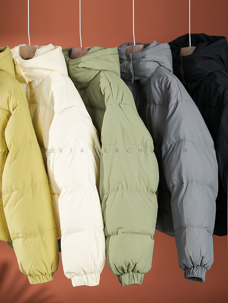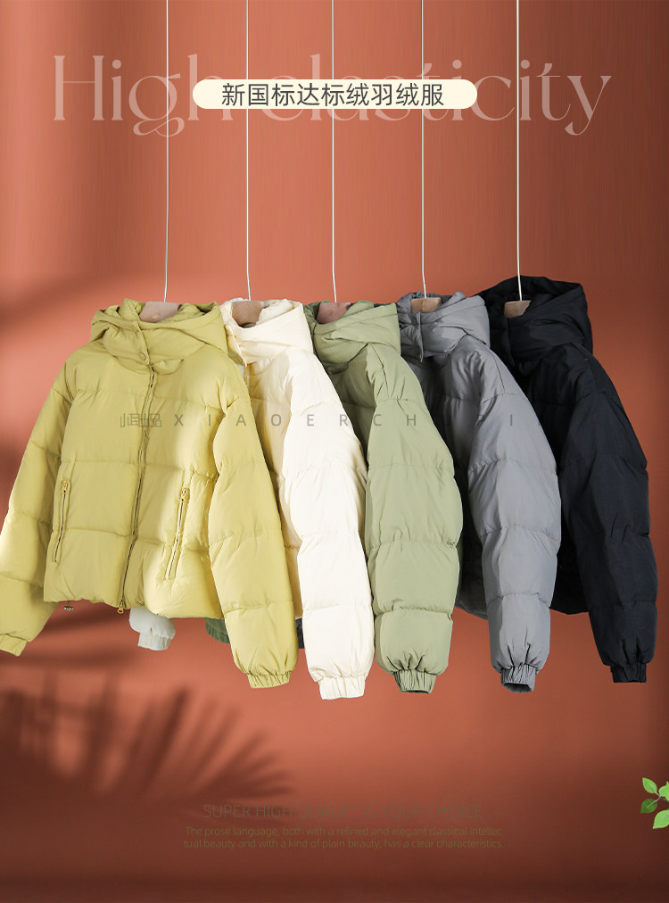 Produced by Xiaoer Dopamine New National Standard White Duck Down Solid Color Short Hooded Thickened Commuting Down Jacket