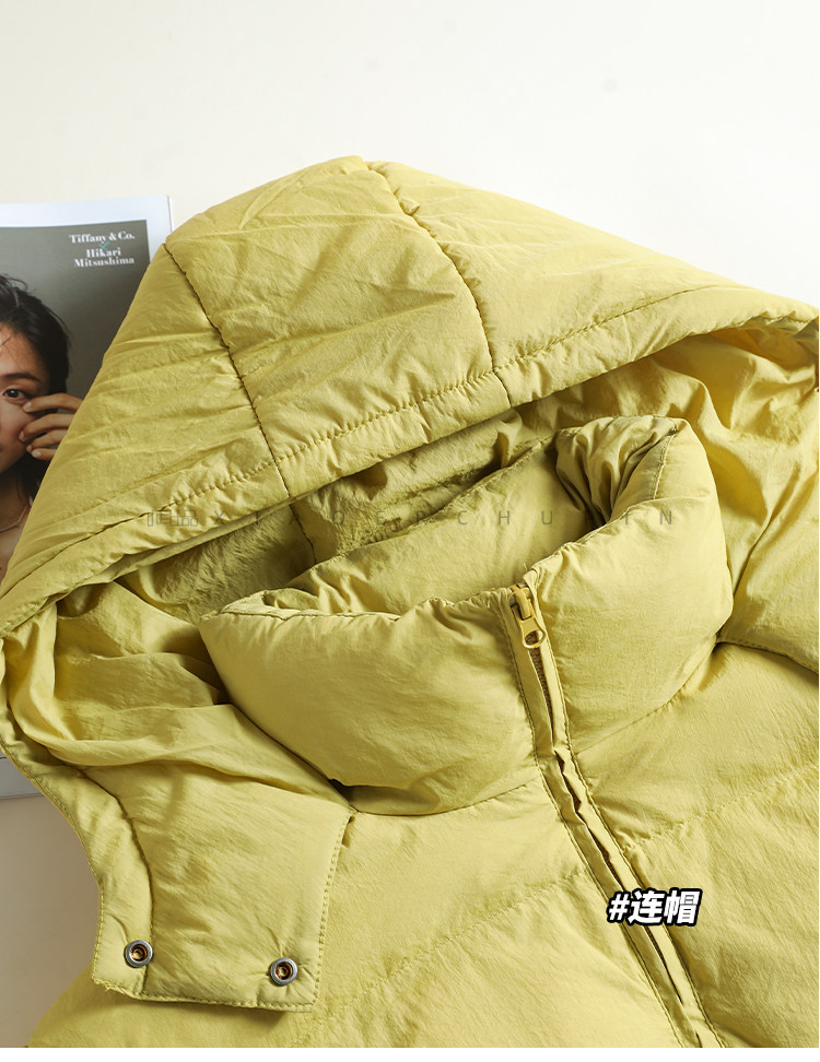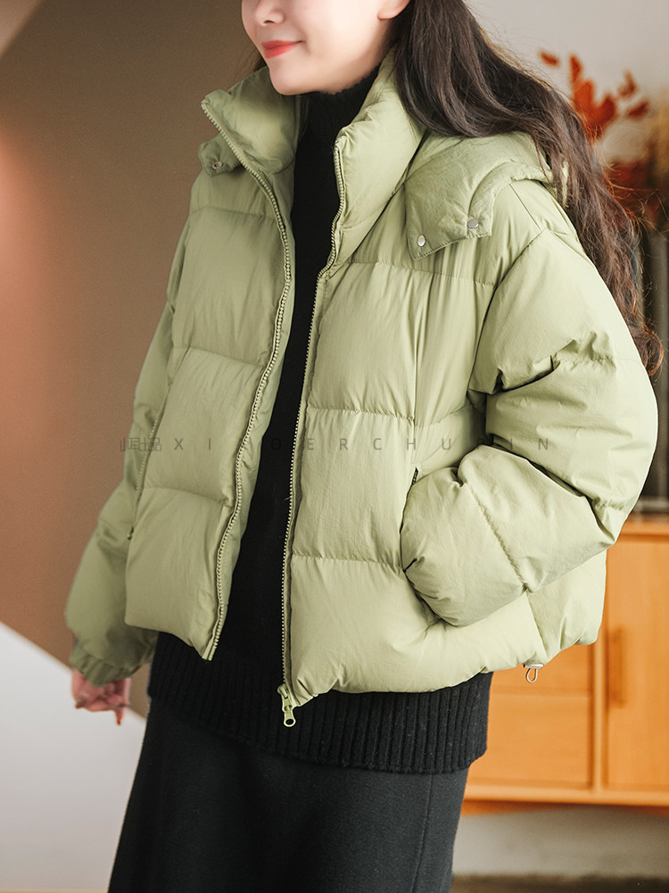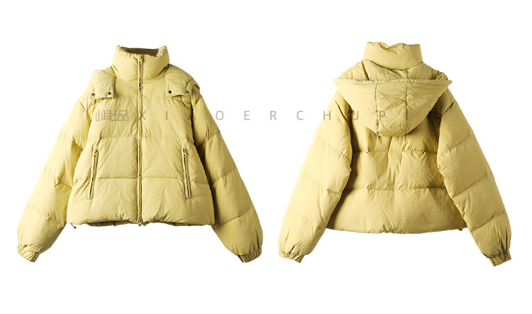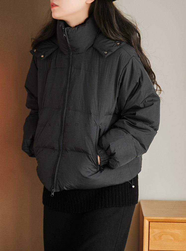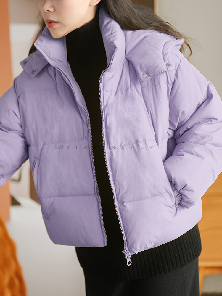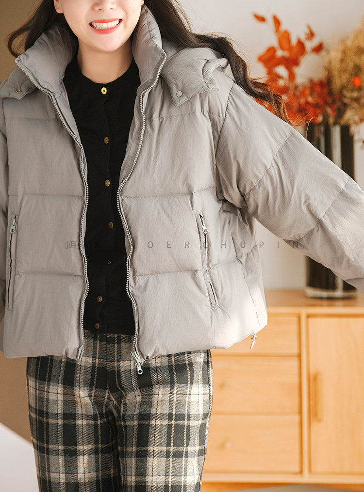 Produced by Xiaoer Dopamine New National Standard White Duck Down Solid Color Short Hooded Thickened Commuting Down Jacket
