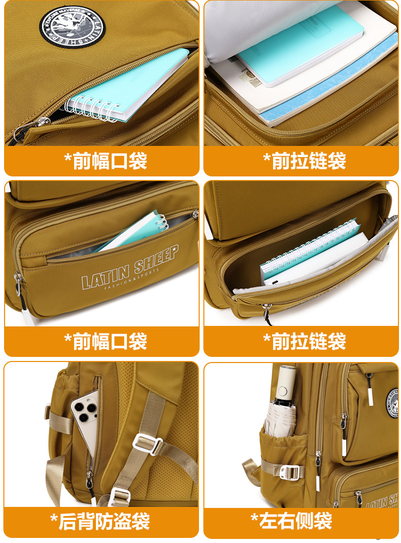 Middle School Student Schoolbags, Boys' Junior High School Students, High School Students, Large-Capacity Female Elementary School Students in Grades 4, 5 and 6, Burden-Reducing Spine-Protecting Backpacks