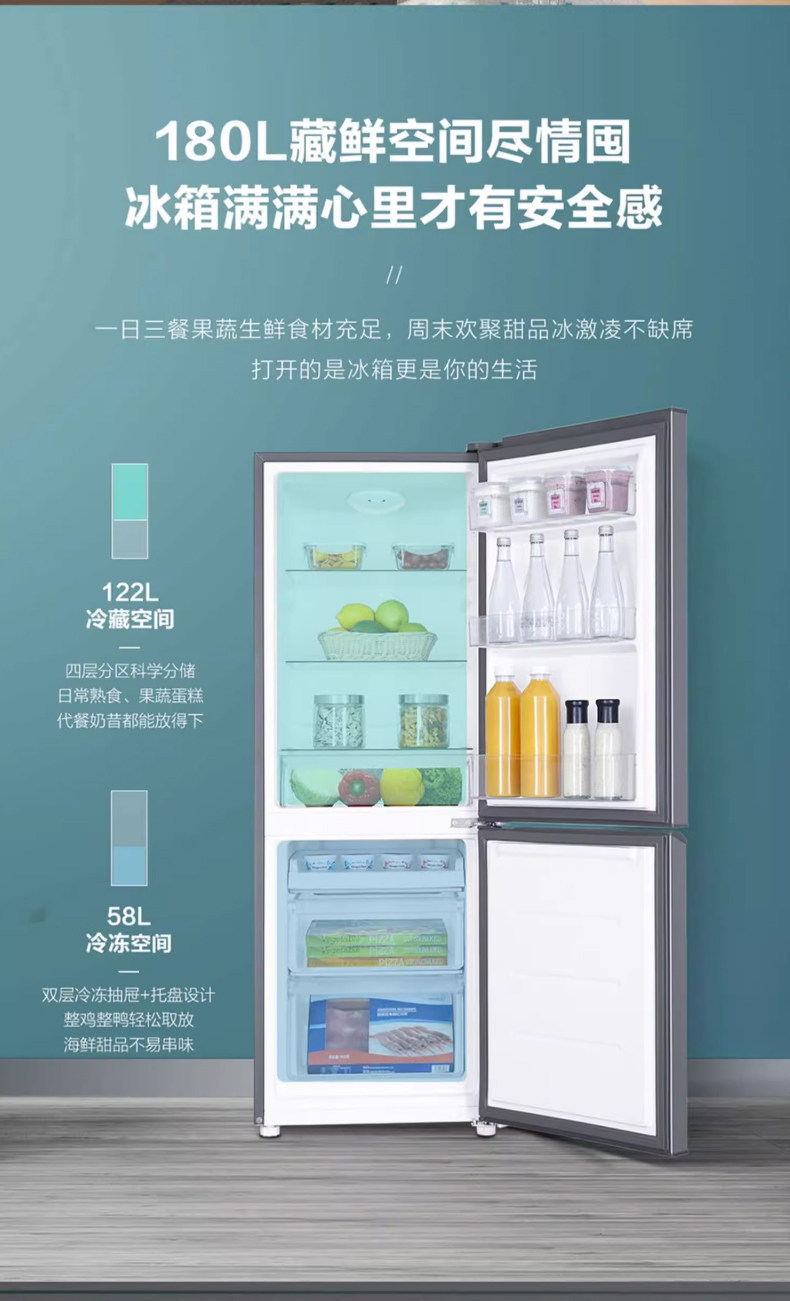Haier Leader 180L Refrigerator for Home Use, Double-Door, Small, Two-Door, Three-Door, Multi-Door, Suitable for Rental Apartments and Dormitories, Medium-Sized, Two-Door