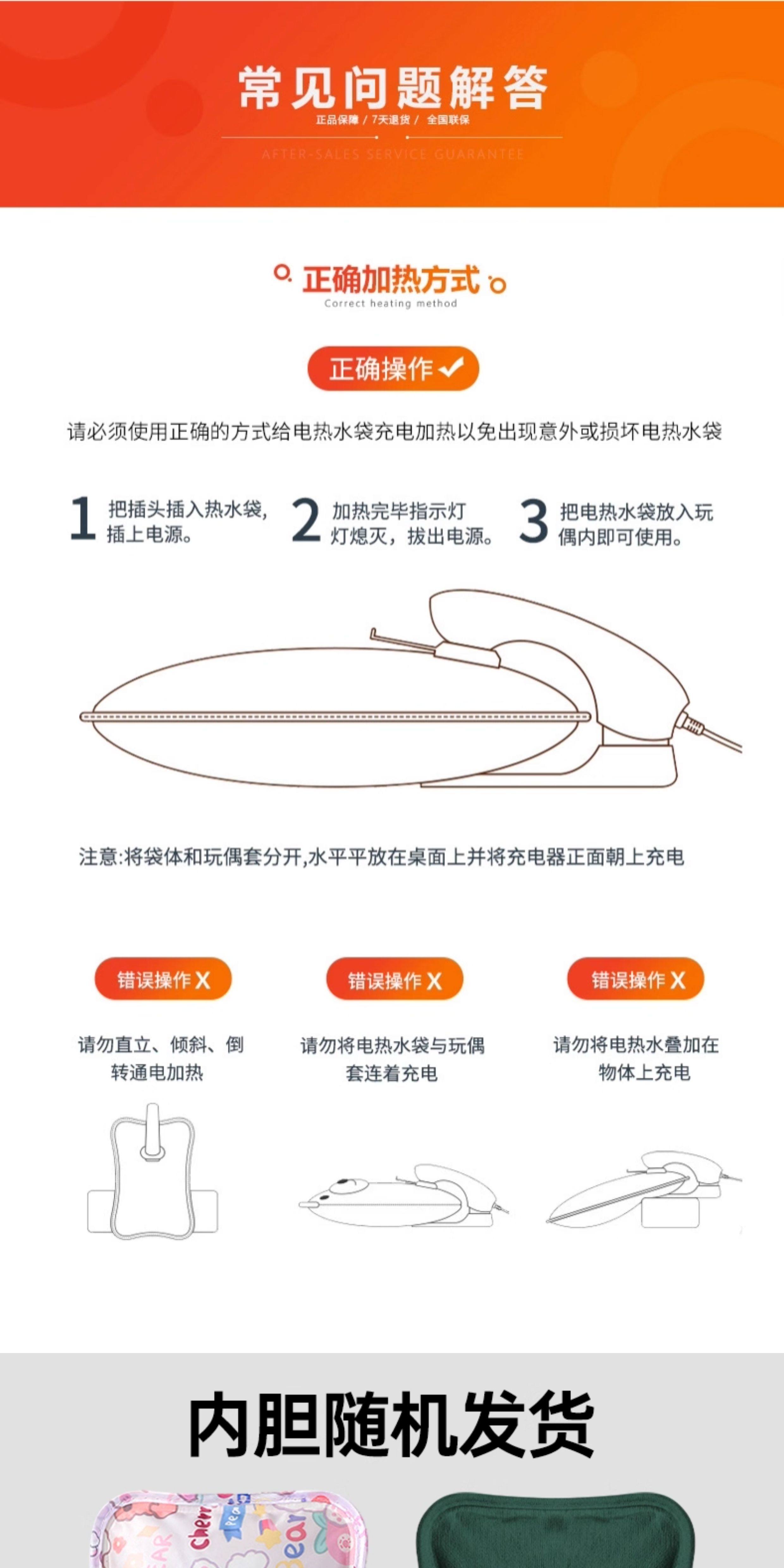 Hot water bottle explosion-proof rechargeable cute plush hot water bottle electric warmer hand warmer for dysmenorrhea girls use foot warmer to warm baby