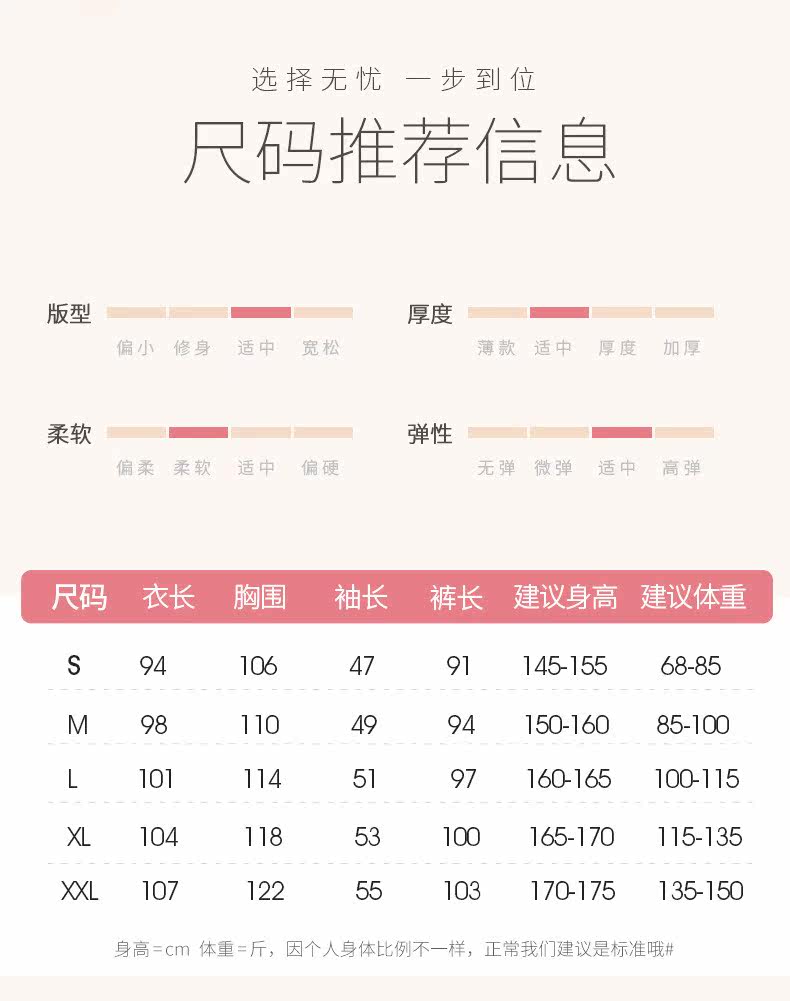 China (cm) 160-165/84-86 165-170 / 88-90 167-172 / 92-96 168-173 / 98-102 170-176 / 106-110