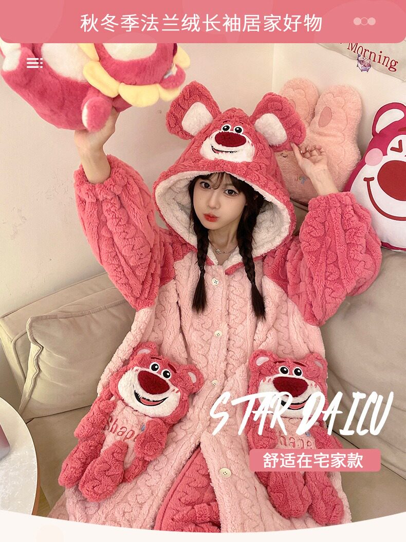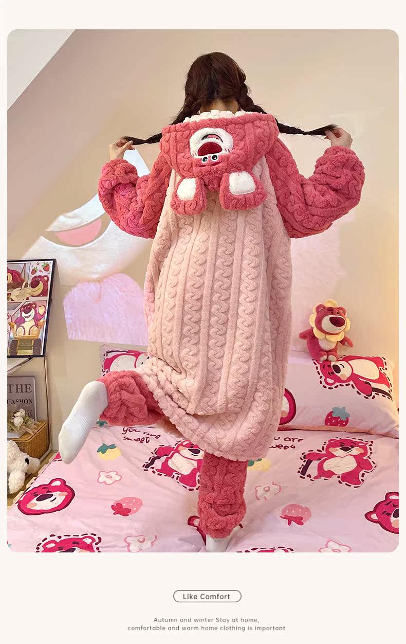British Vockoo Women's Nightgown Autumn and Winter Thickened Coral Velvet Long Nightgown Women's 2023 Flannel