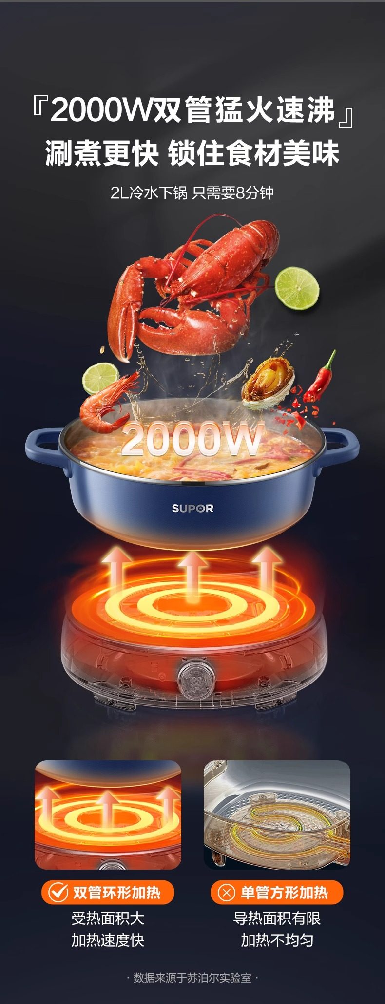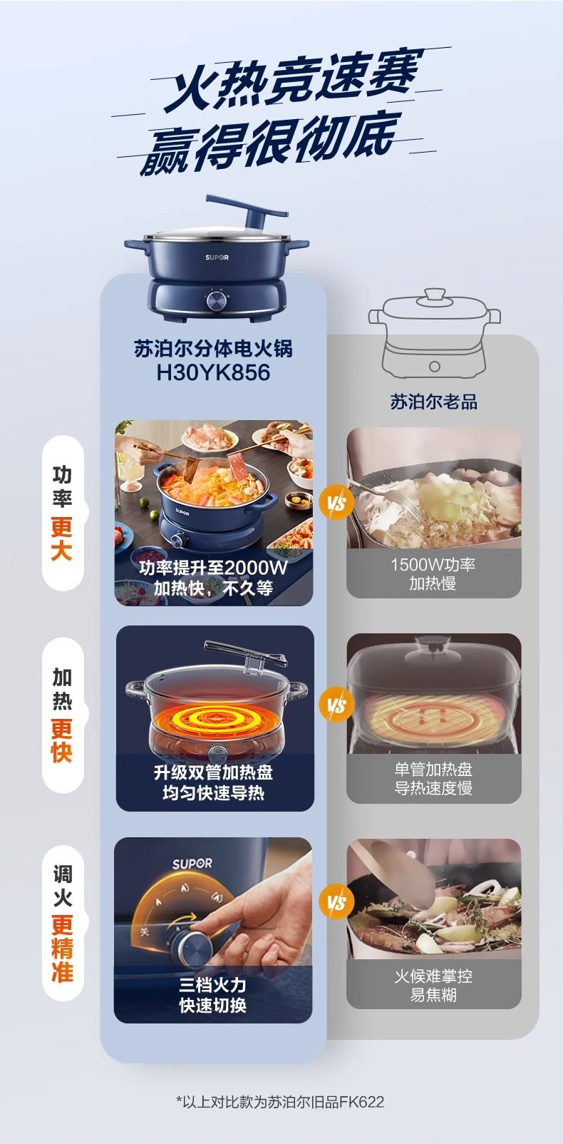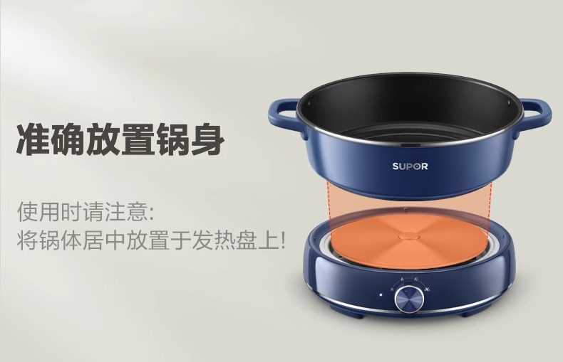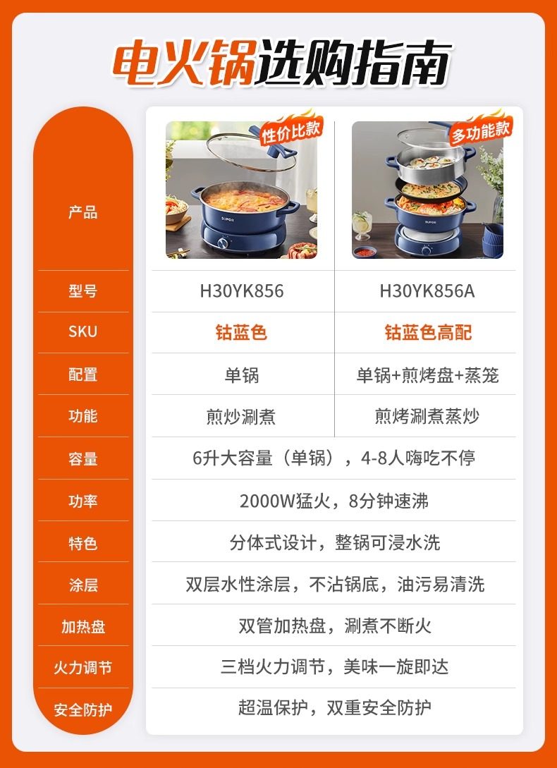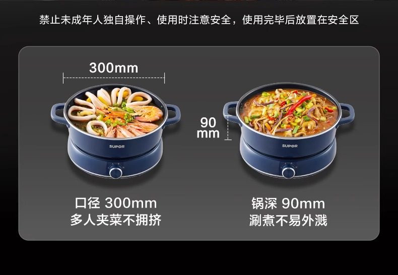 Supor Electric Hot Pot for Home Use, Detachable Multifunctional Electric Hot Pot, Electric Frying Pan, Electric Steamer, 6L