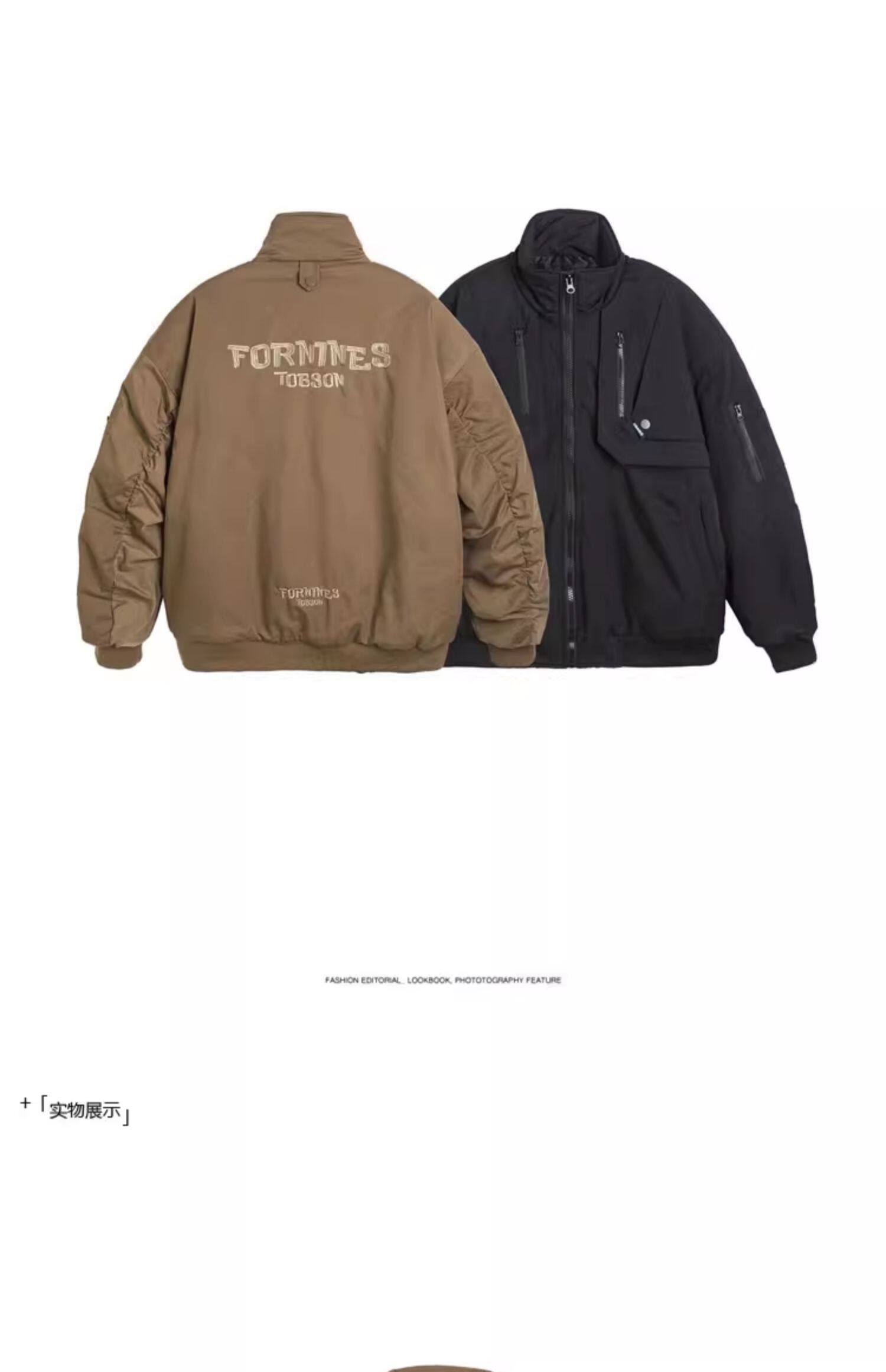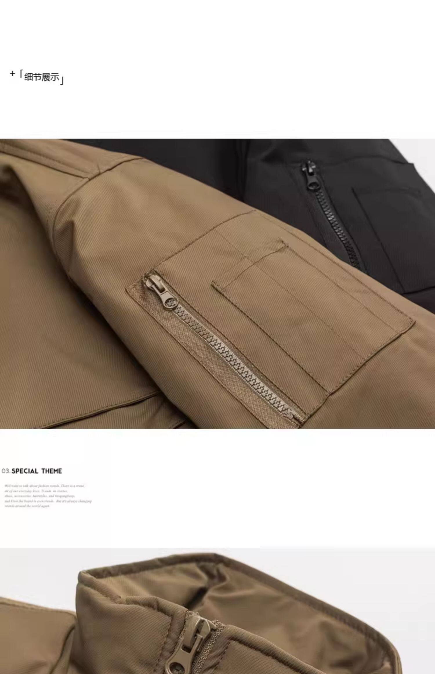 American Retro Flight Jacket for Men and Women, Autumn Trendy Design, Loose Fit, Thickened Stand Collar Workwear Jacket, Casual Top