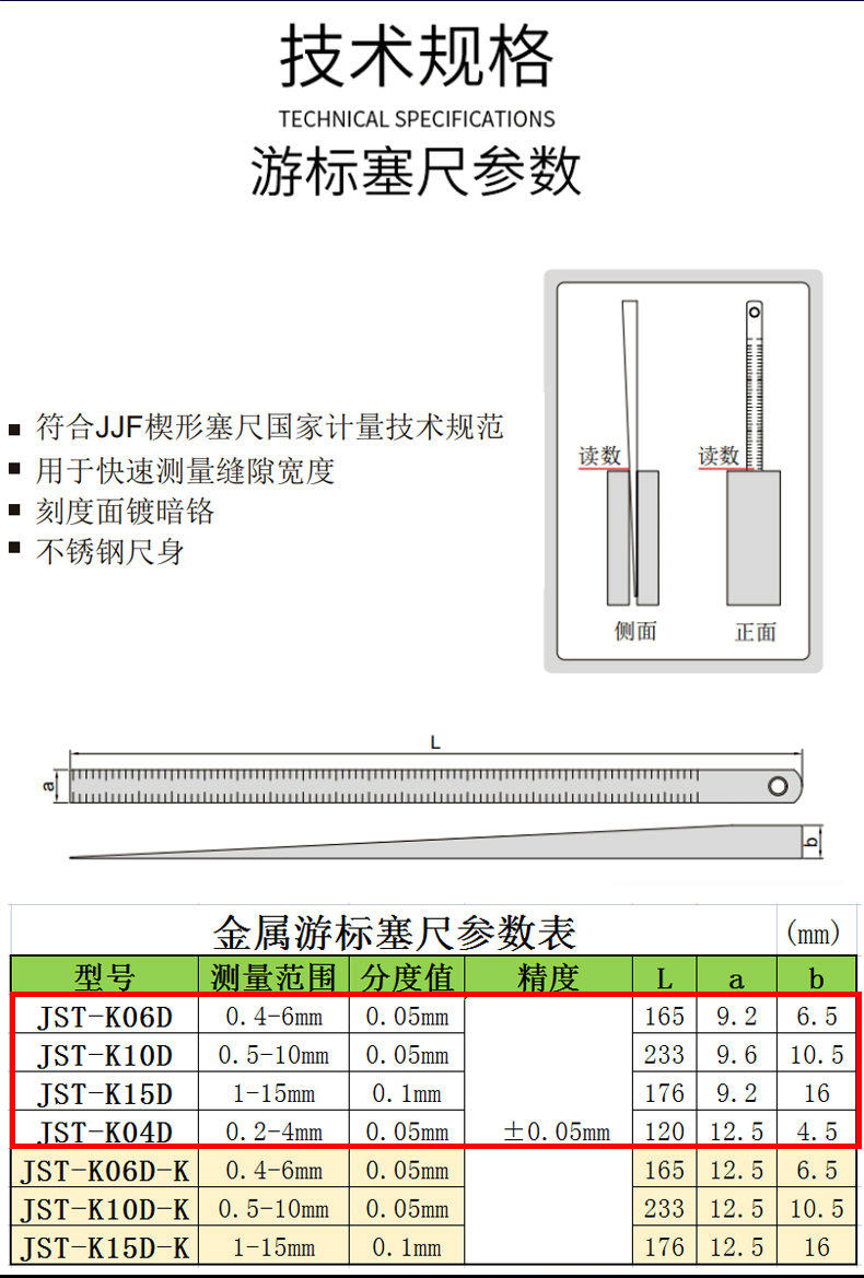 Metal Gap Vernier Feeler Gauge 0.2-4/1-15mm Vernier Narrow Sloped Ruler Flat Thickness Gauge Gap Measurement