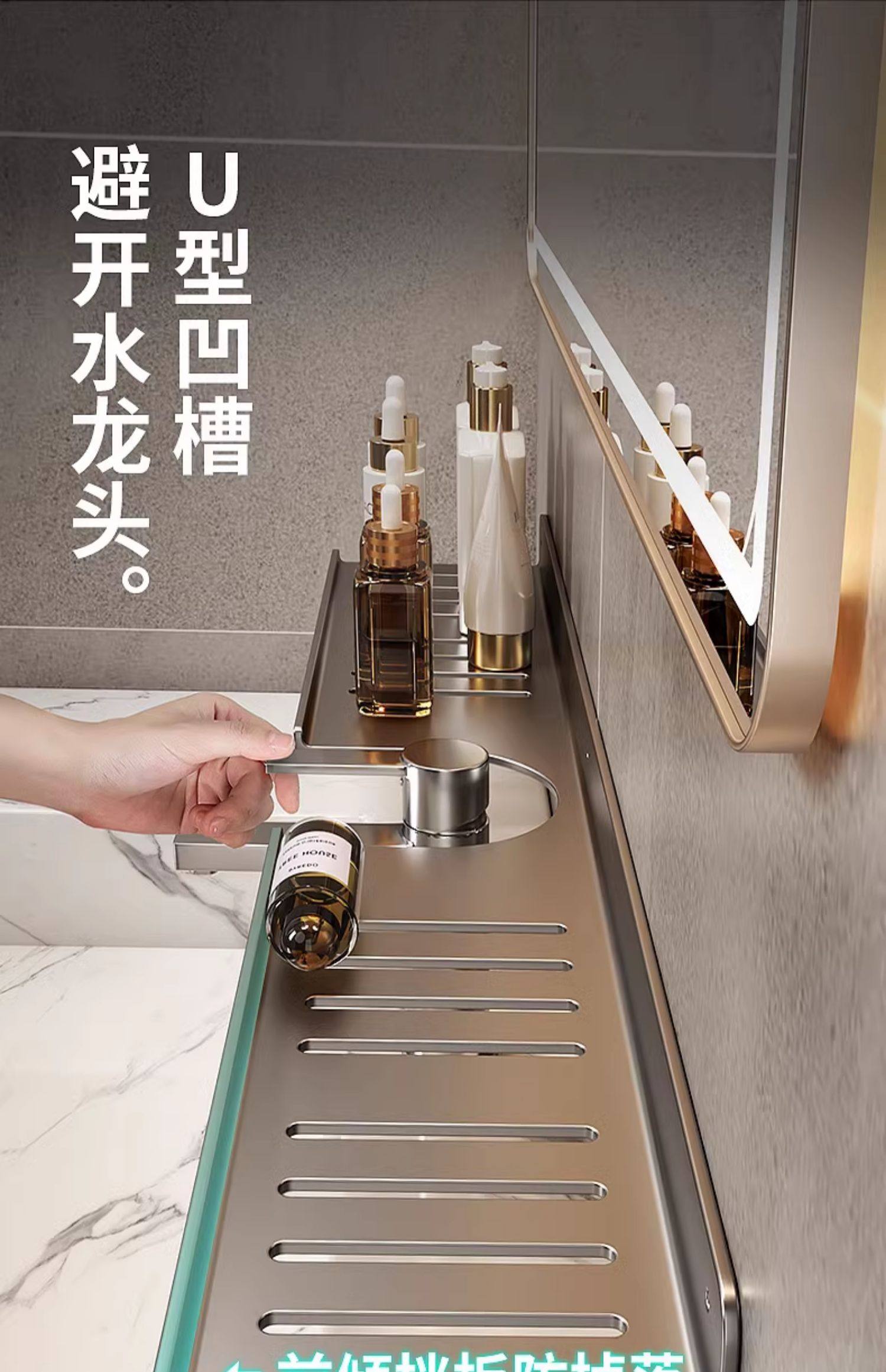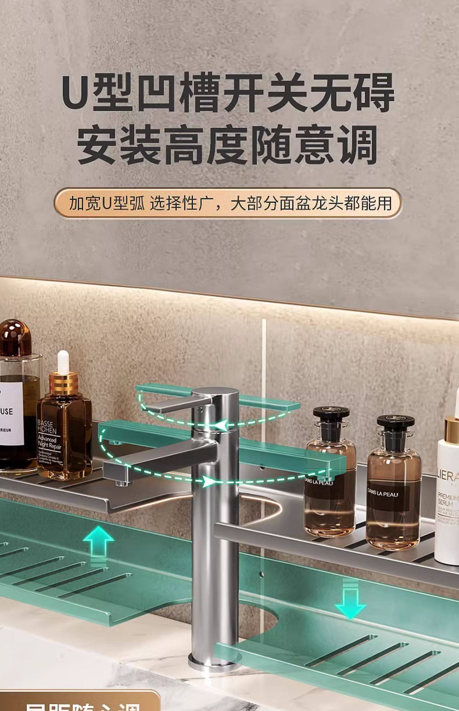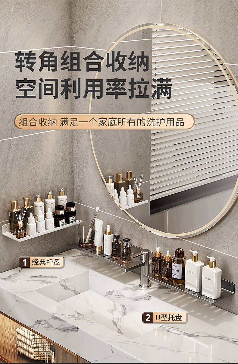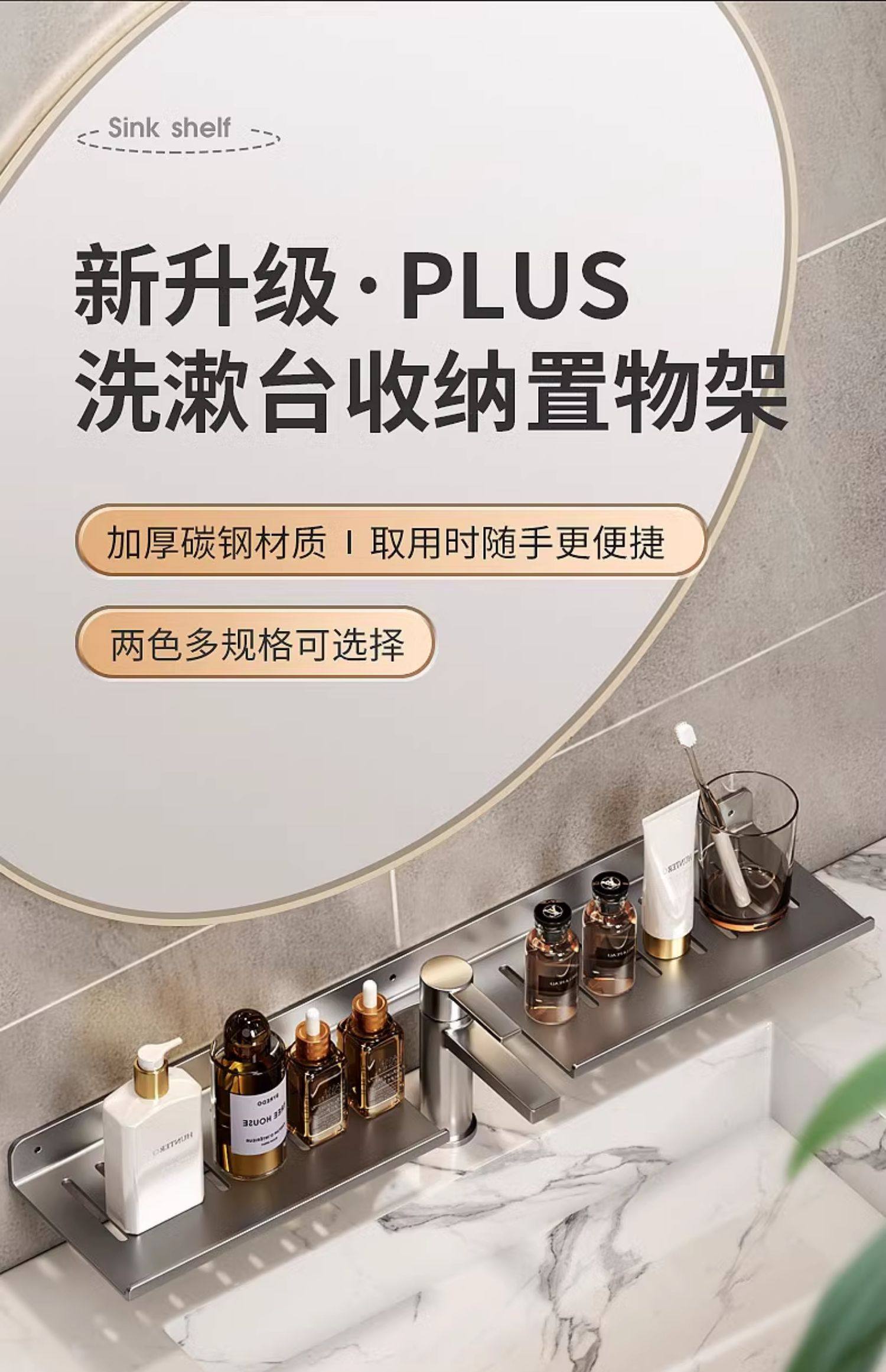 Bathroom Table Mirror Front Storage Rack Toilet Punch-Free Faucet Wash Basin Wall-Mounted Bathroom Storage Rack