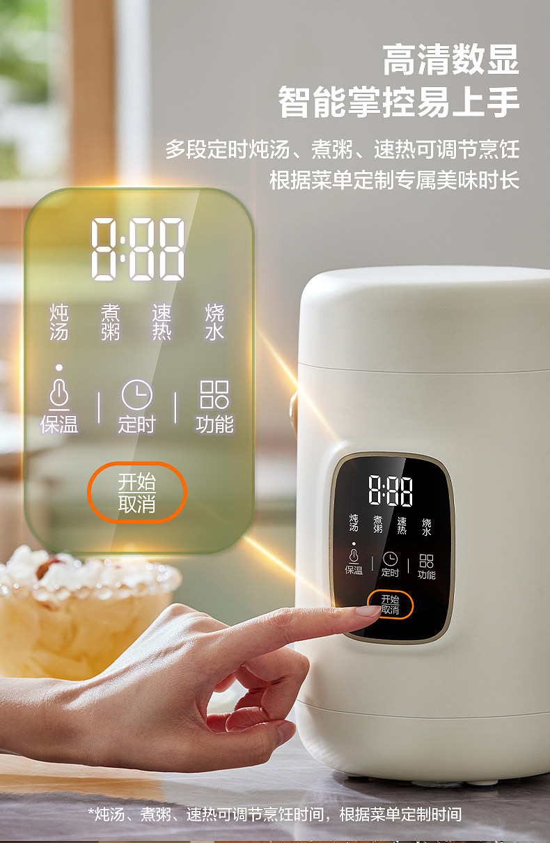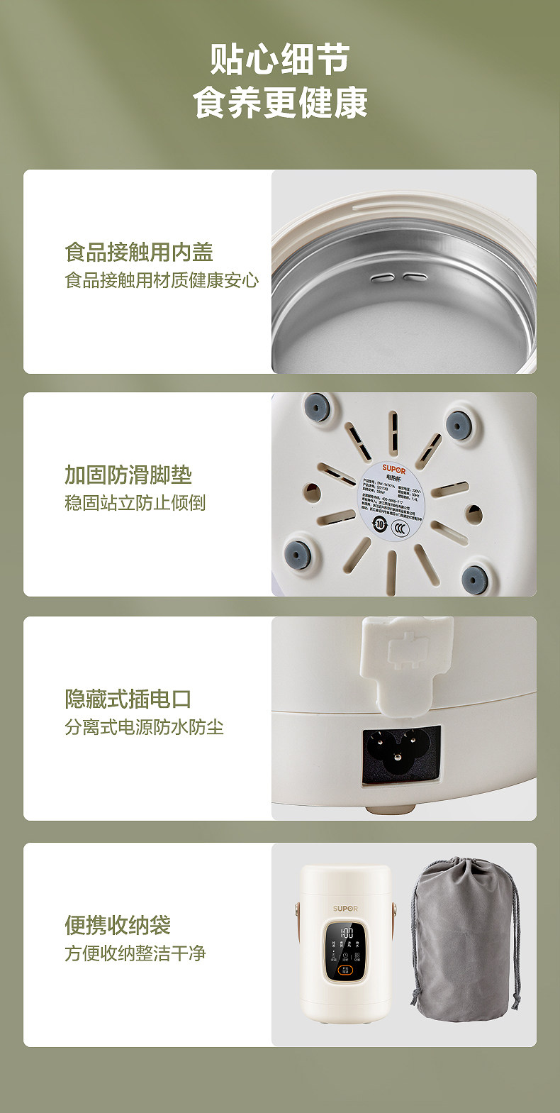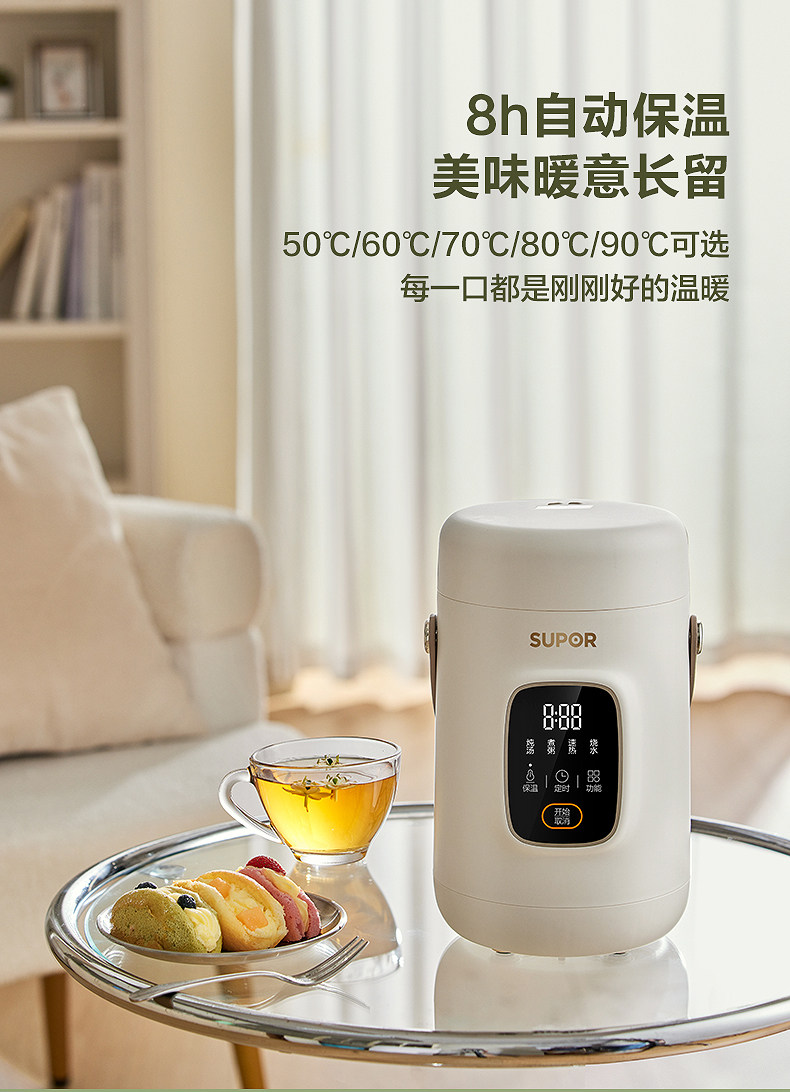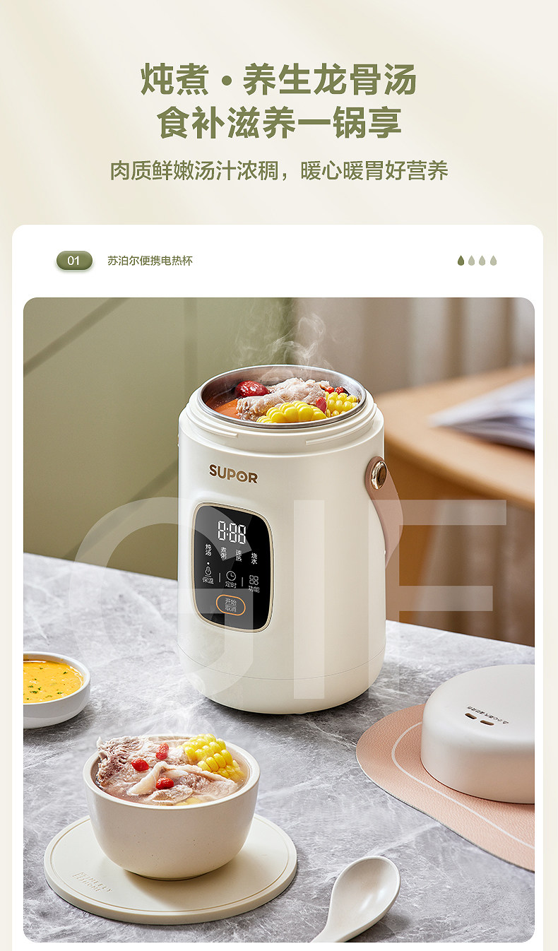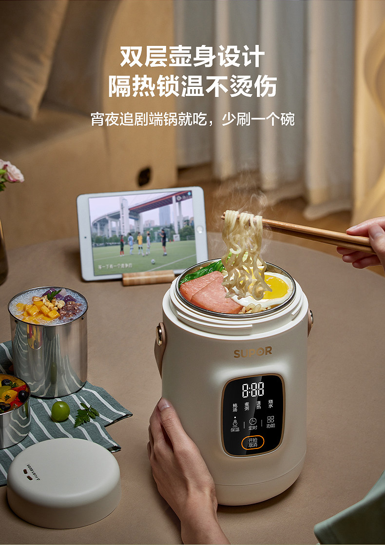 Supor Electric Stewing Cup, Small Portable Stewing Pot, Automatic Water Boiling and Porridge-Making Device, Insulated Electric Heating Simmering Cup