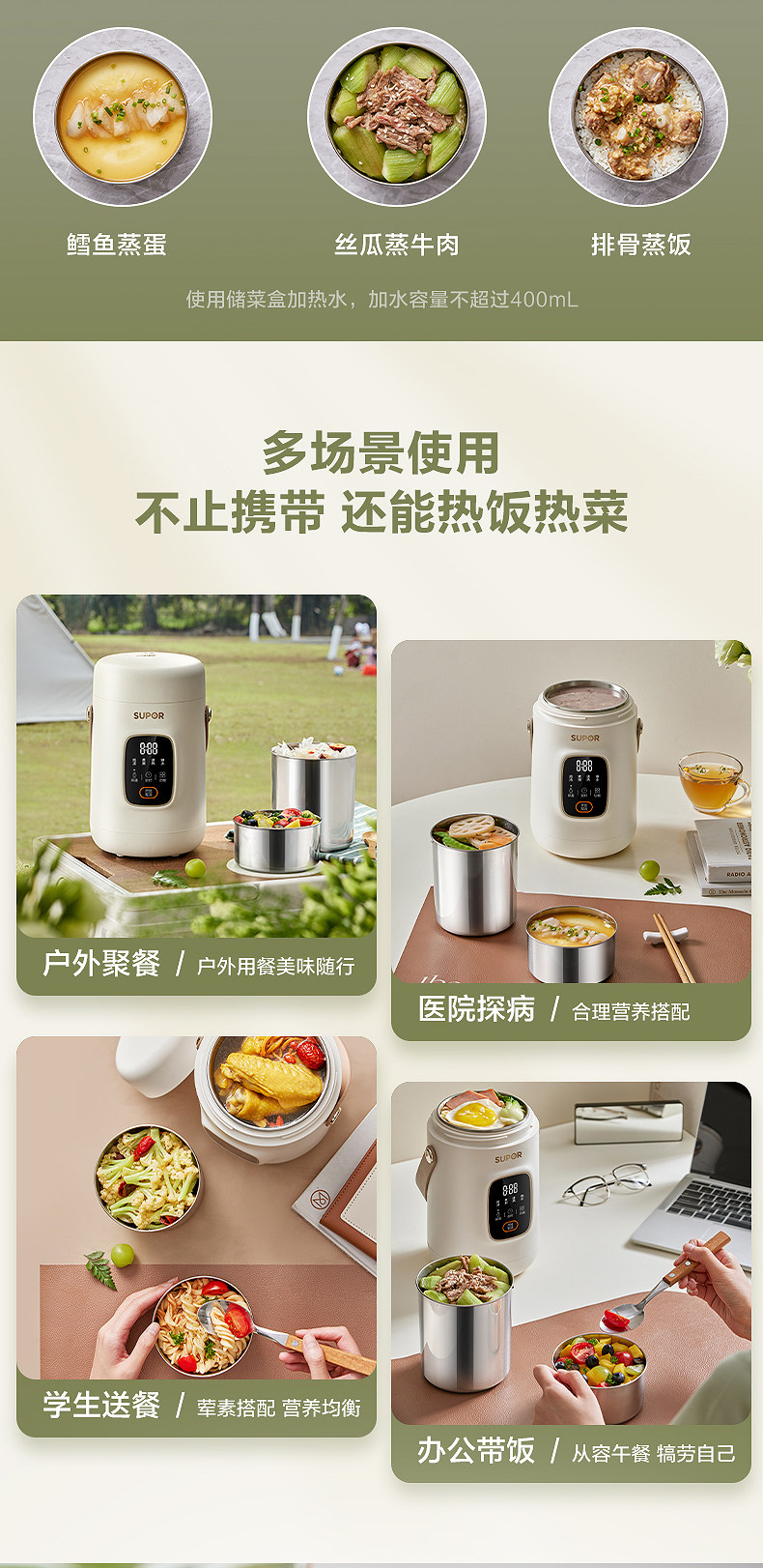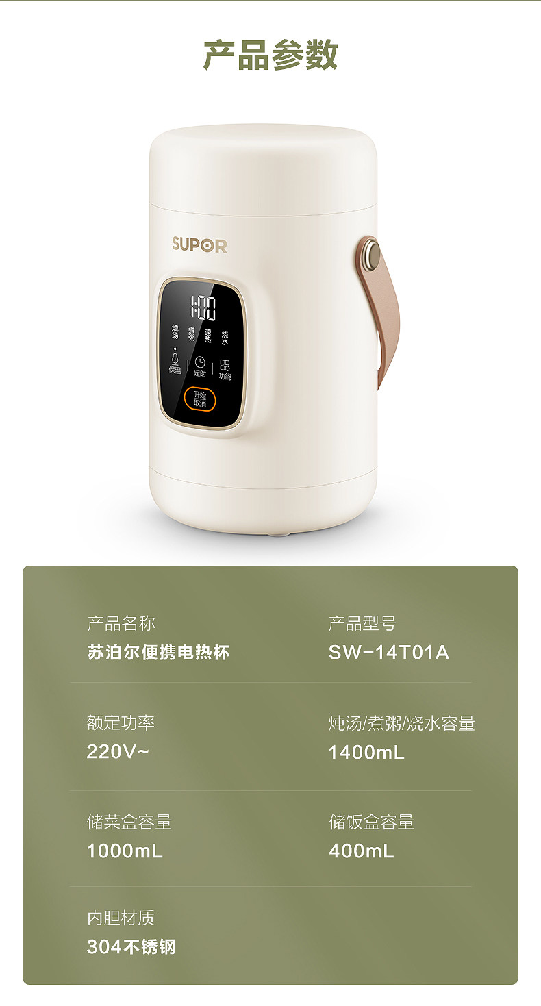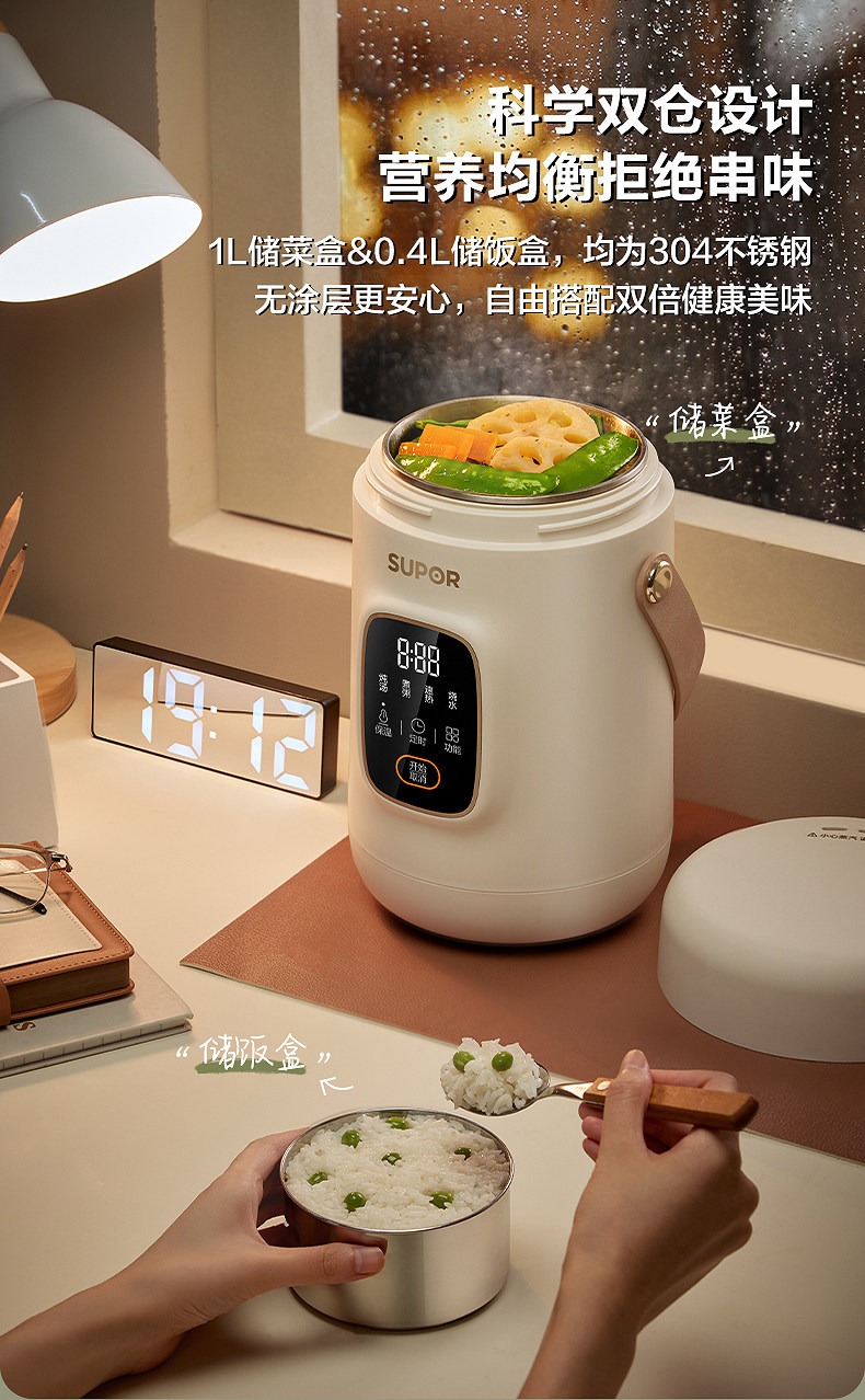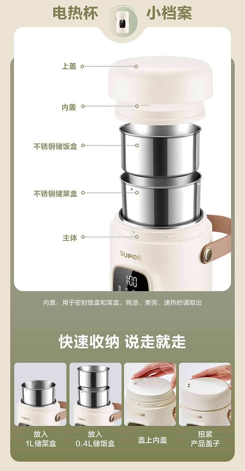 Supor Electric Stewing Cup, Small Portable Stewing Pot, Automatic Water Boiling and Porridge-Making Device, Insulated Electric Heating Simmering Cup
