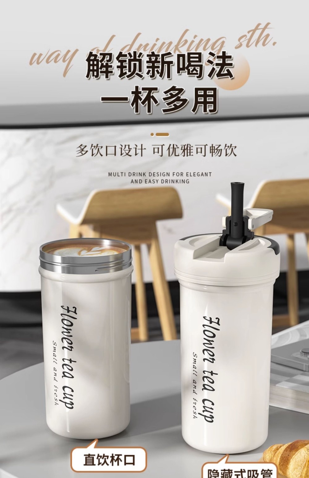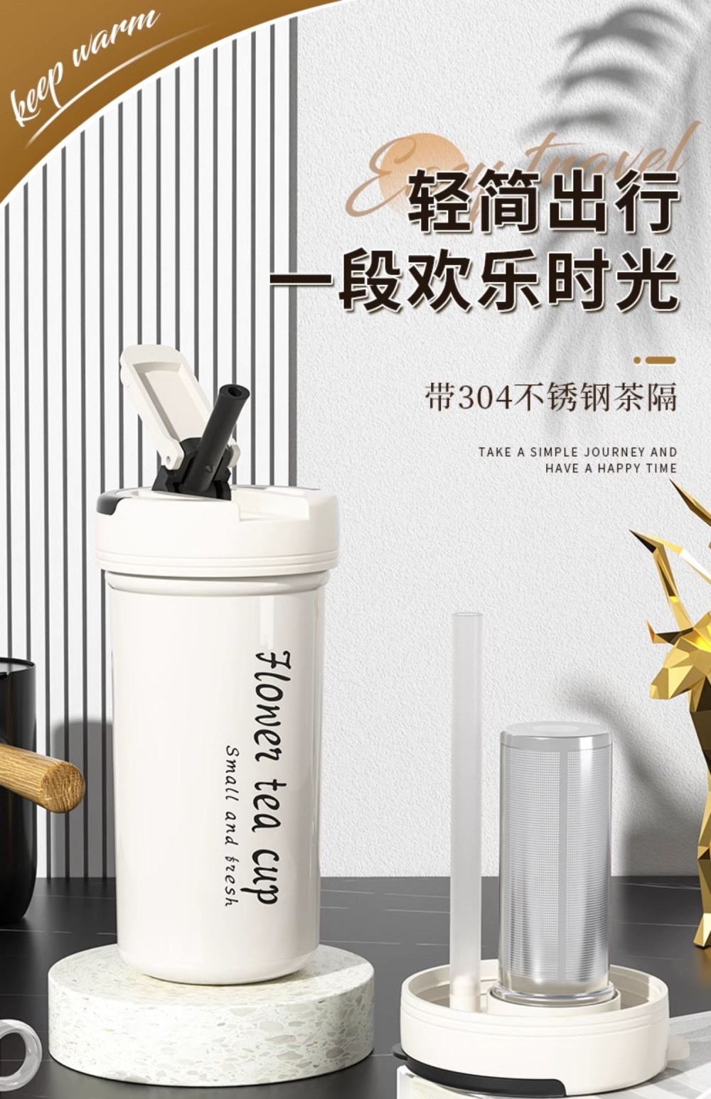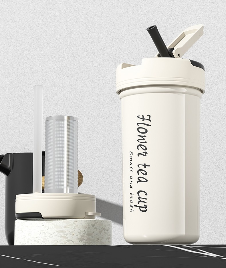 German Imported Straw Insulated Cup for Women, High Aesthetic Value, Tea and Water Separation Cup, 500ml, Men's Tea Brewing Cup, Student Use