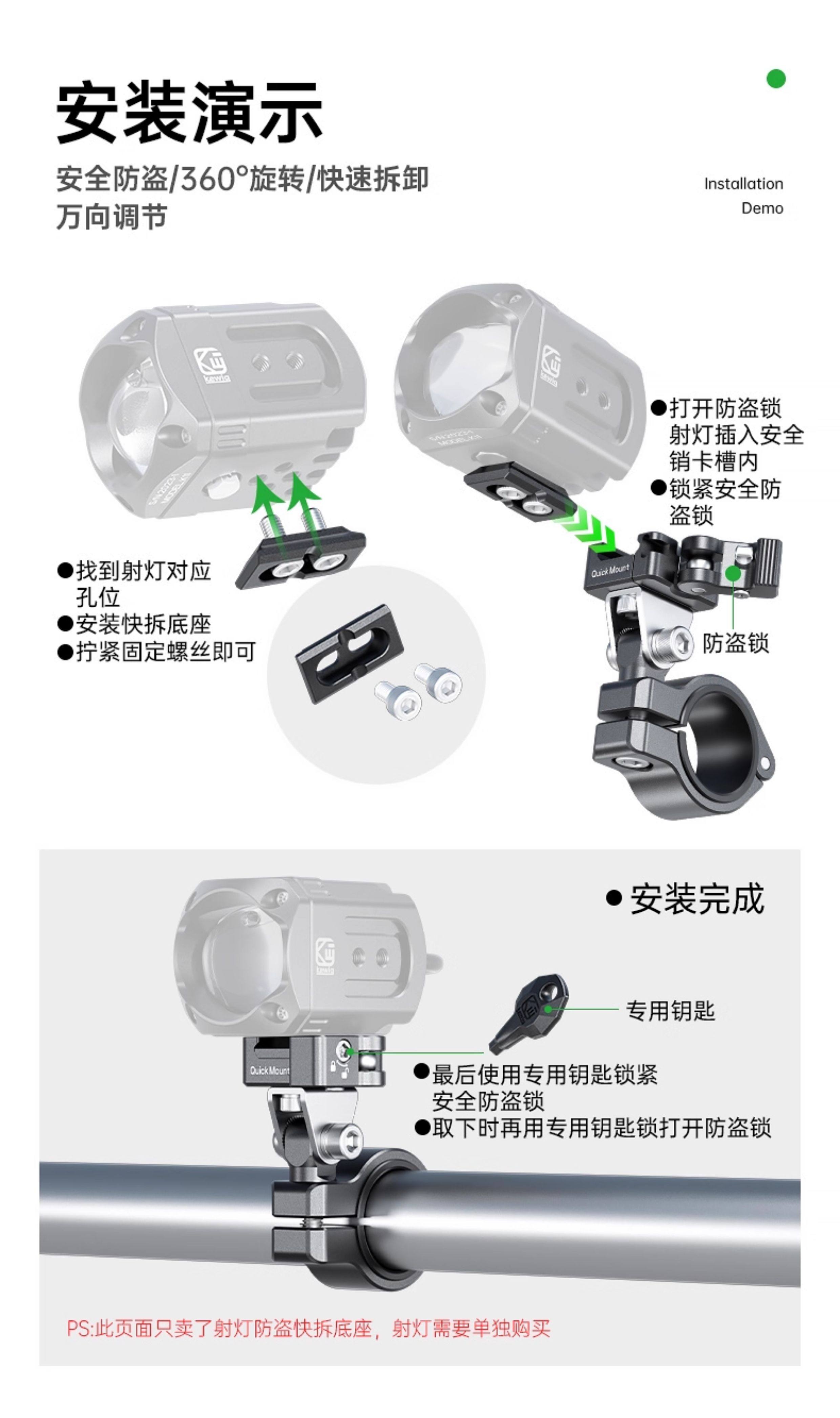 Kaiweige motorcycle spotlight quick-release bracket far and near beam electric vehicle spotlight aluminum alloy base fixed frame base