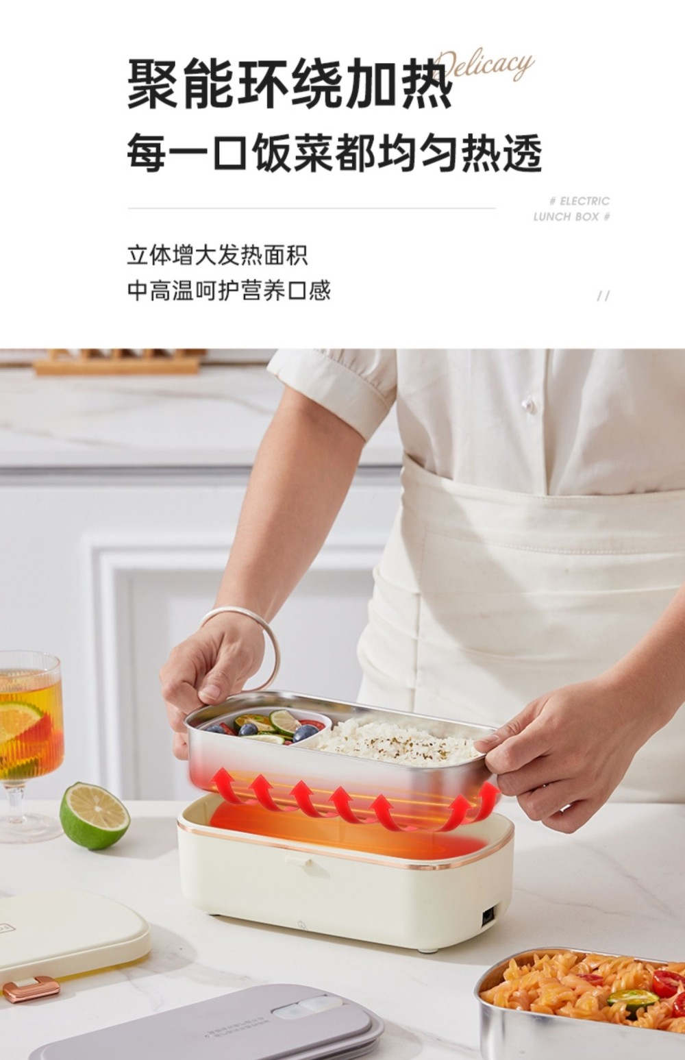 German Imported Water-Free, Heatable Lunch Box, Plug-In, Portable Stainless Steel Compartmented Electric Lunch Box for Office Workers to Bring Meals