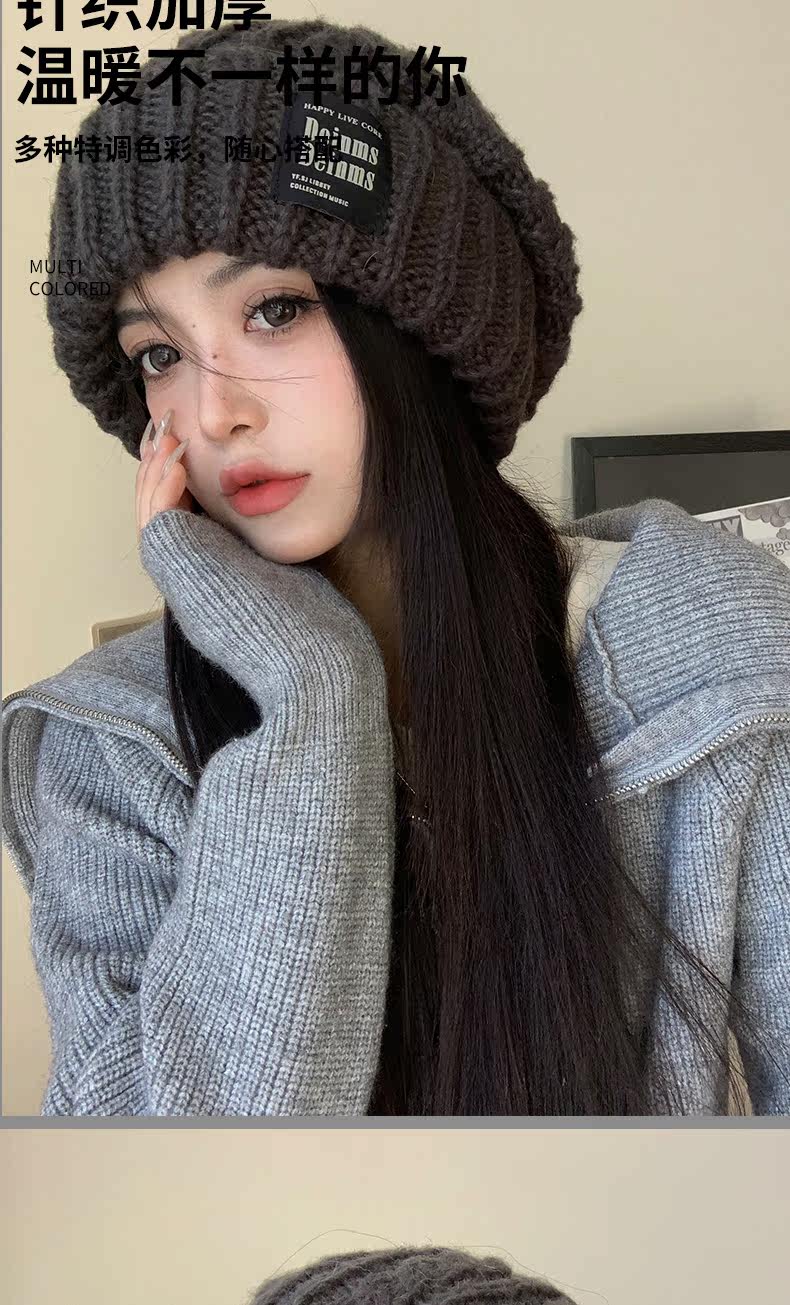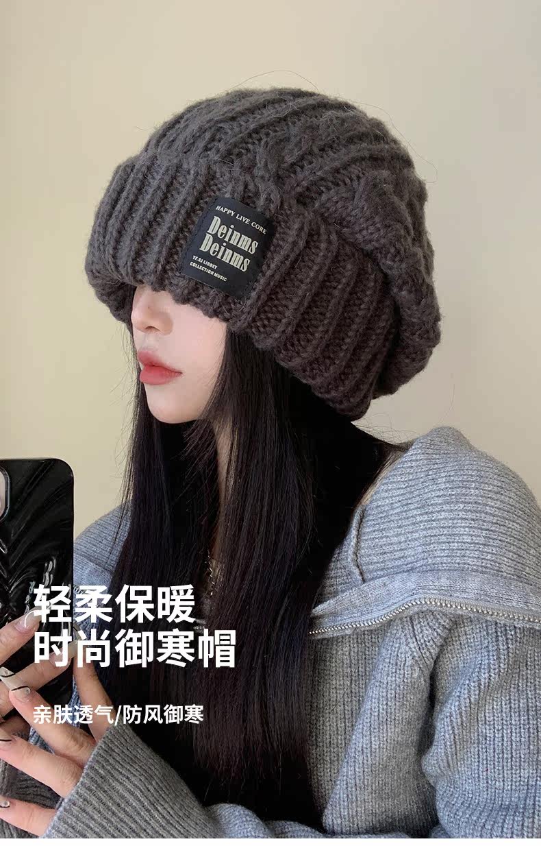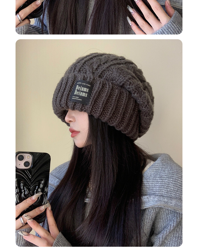 Women's Winter Gray Knit Hat, Large Head Circumference, 2023 New Style, Loose and Versatile, Makes Face Look Smaller, Trendy Beanie