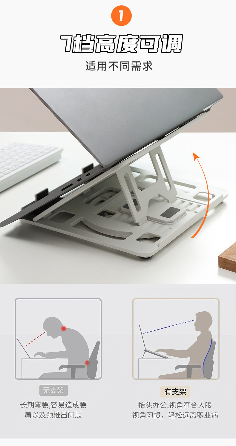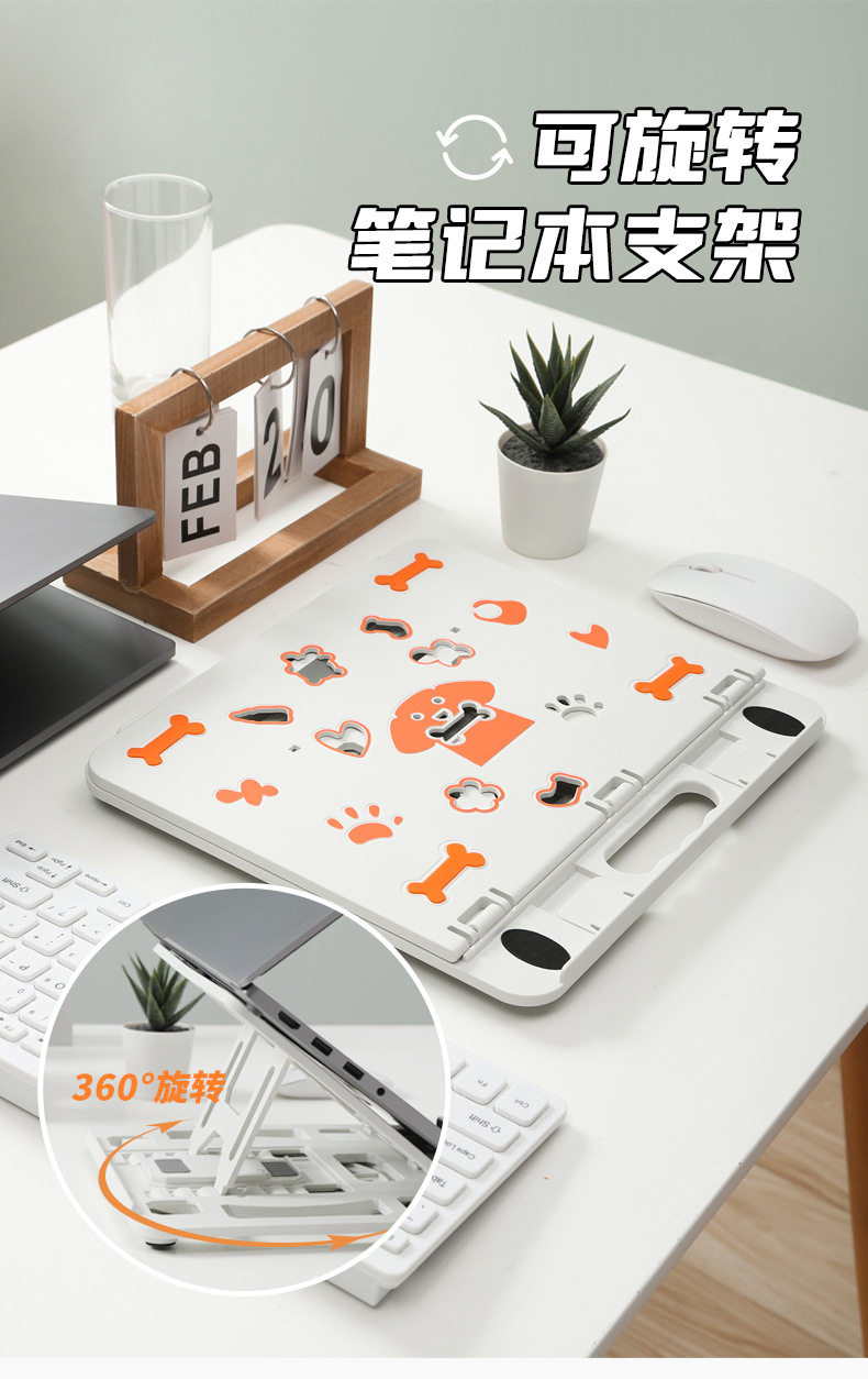 Cute Laptop Stand Bracket for Student Dormitory Desktop Office, Adjustable Height, Vertical Suspended Base, Portable, Foldable, Rotatable, Cooling Support, Neck Protection Stand