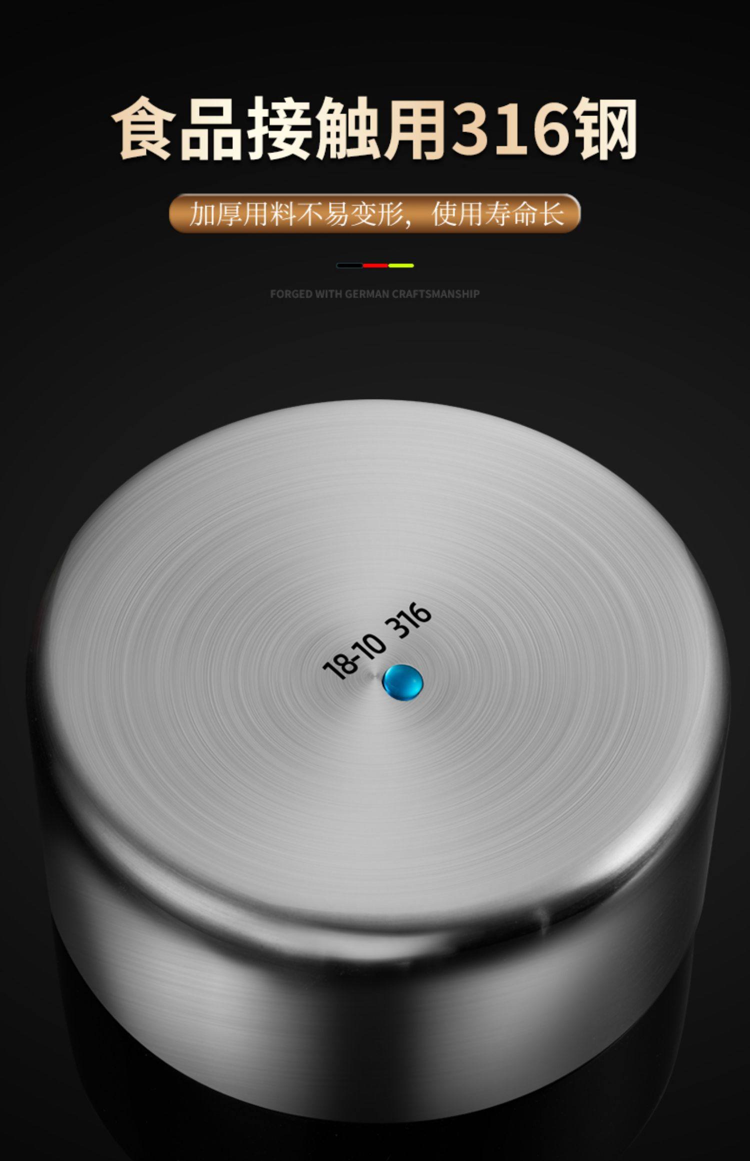 German Imported 316 Food-Grade Steamed Egg Bowl with Lid, Steamed Egg Custard 304 Stainless Steel Steamed Rice Stew Pot Special Bowl