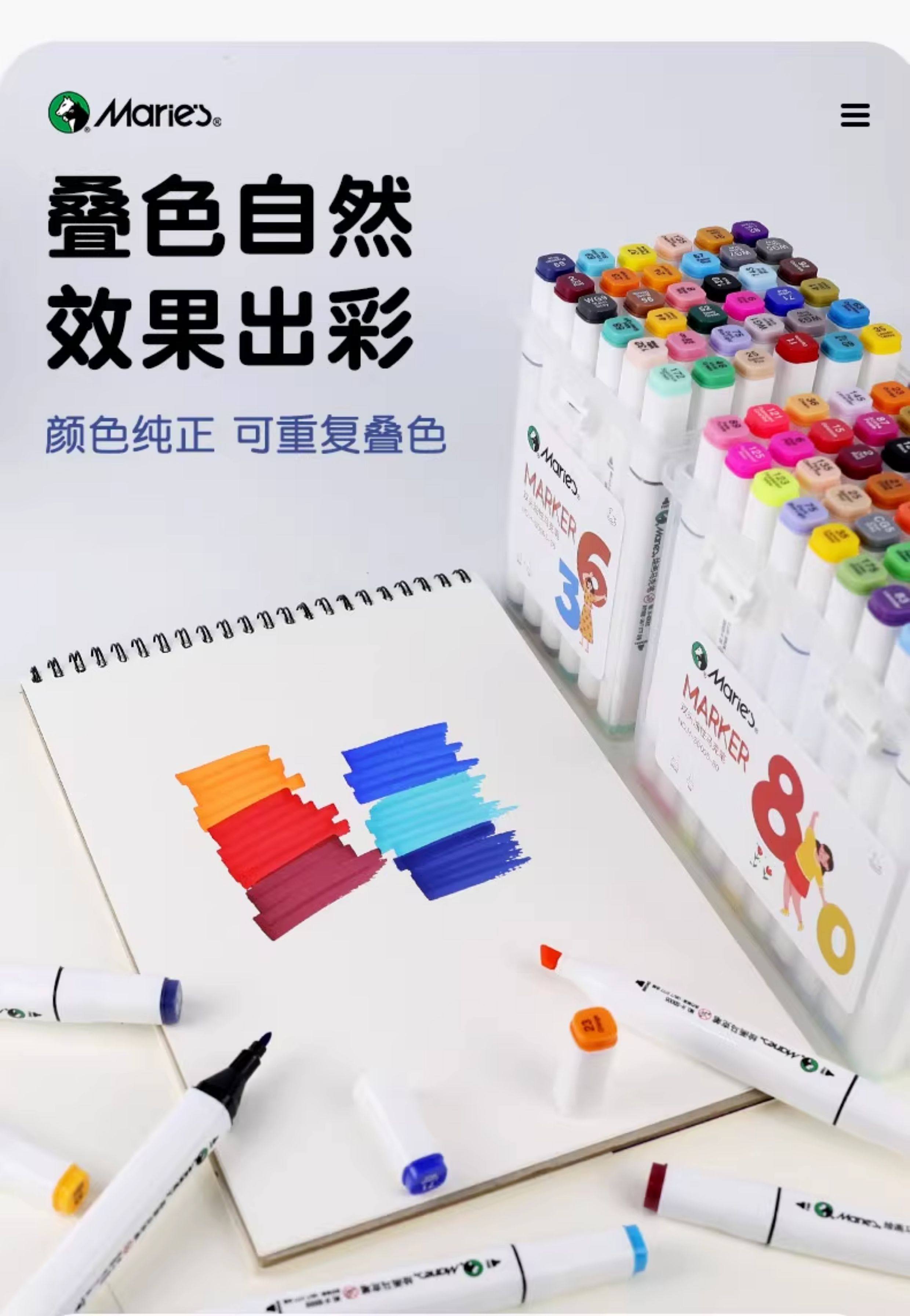 Marley Brand Oil-Based Dual-Tip Washable Markers, 48 Colors, Quick-Drying Watercolor Pens for Children and Students, Art Drawing Special, Refillable Ink, 24/36/60/80 Colors, Elementary School Student Anime Colored Pen Set