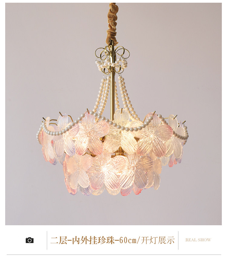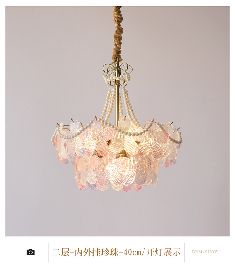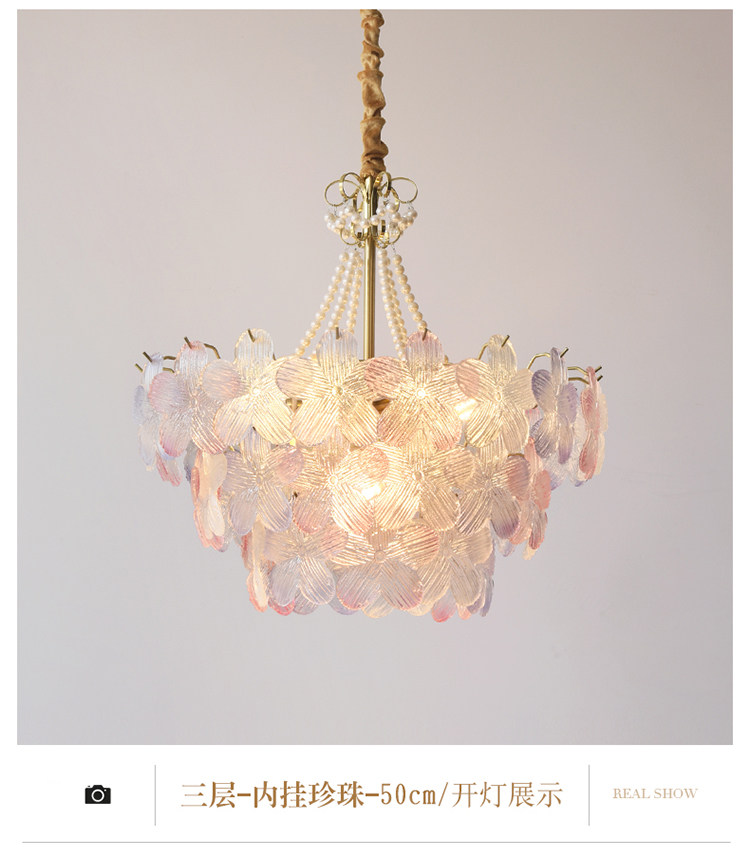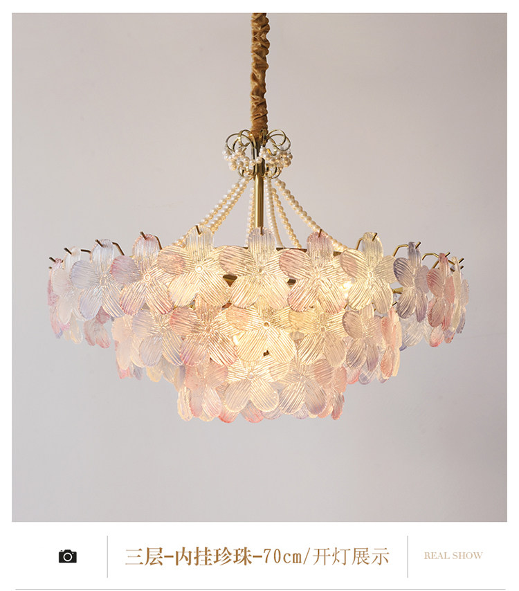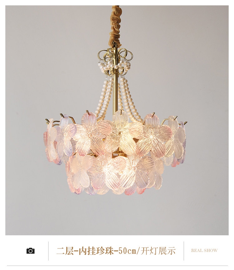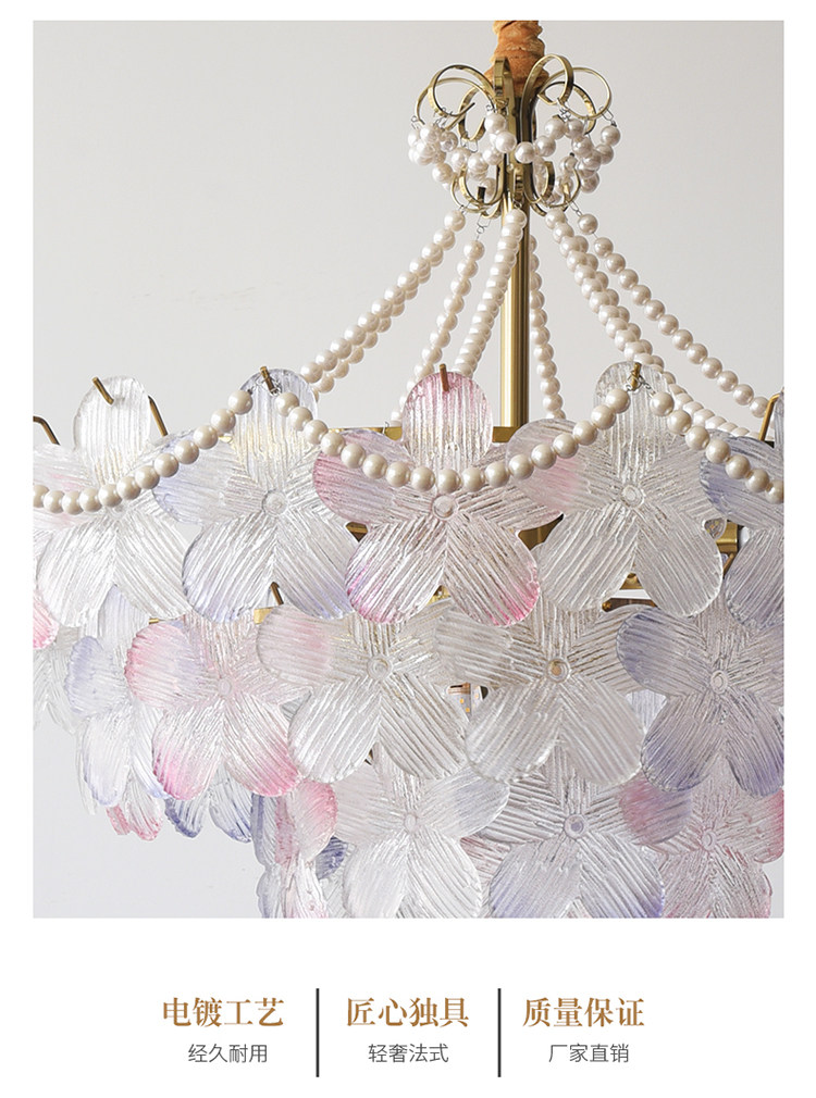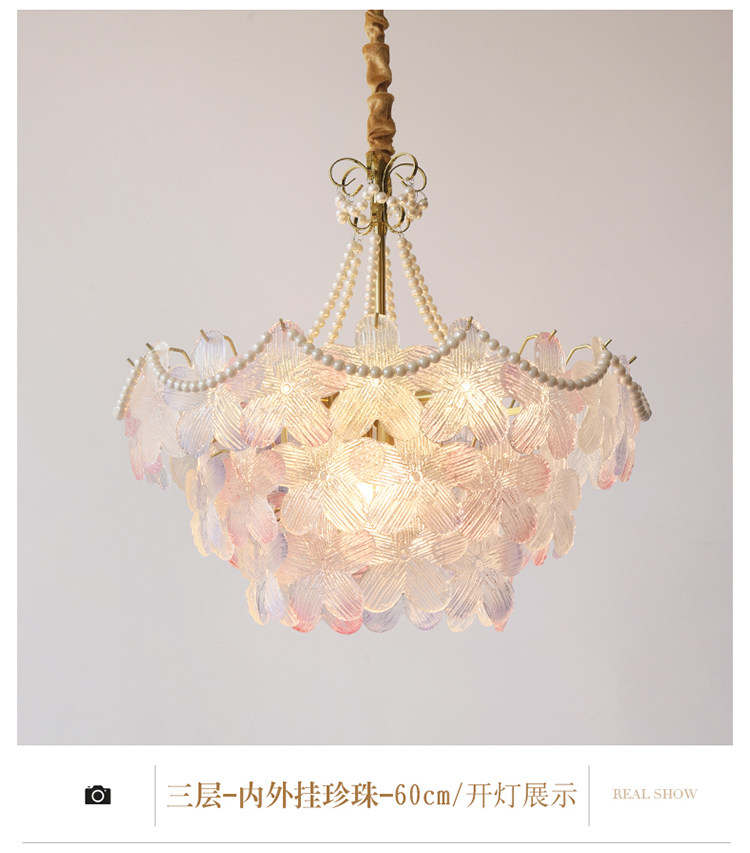 French-Style Living Room Chandelier, Light Luxury and Warm, Crystal Petals and Pearls, Bedroom and Dining Room, Post-Modern Minimalist Room Main Lighting Fixture