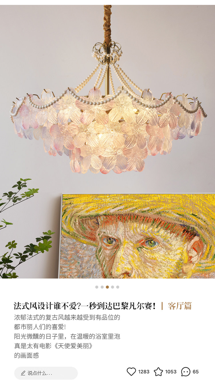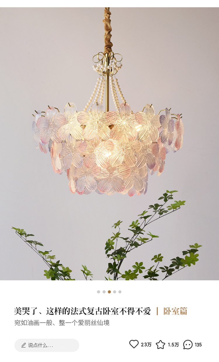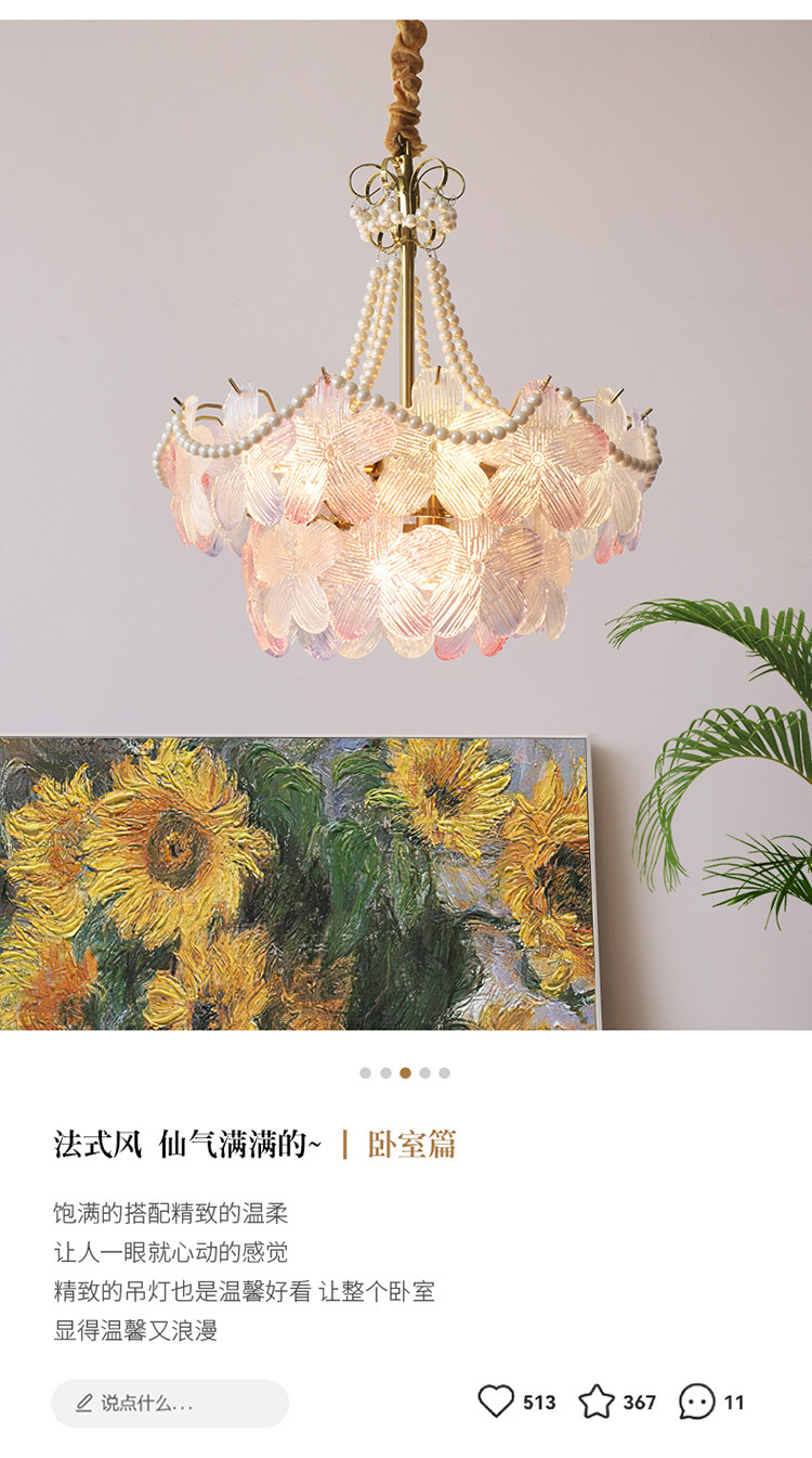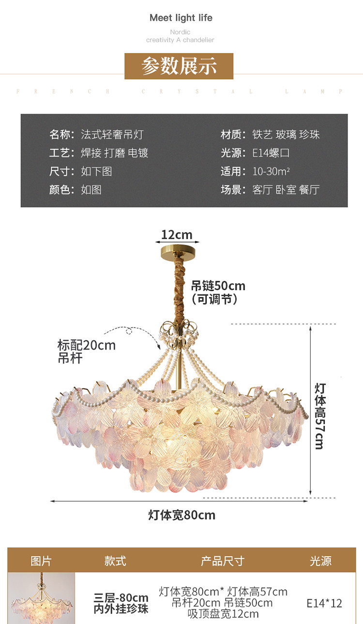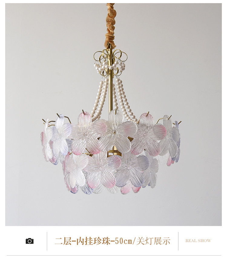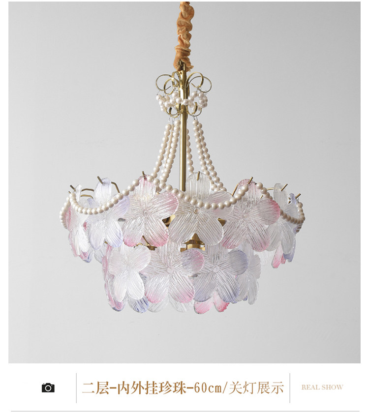 French-Style Living Room Chandelier, Light Luxury and Warm, Crystal Petals and Pearls, Bedroom and Dining Room, Post-Modern Minimalist Room Main Lighting Fixture