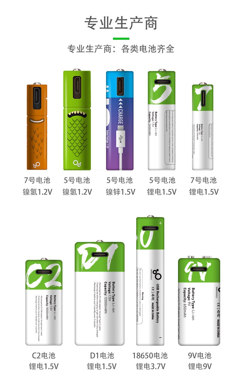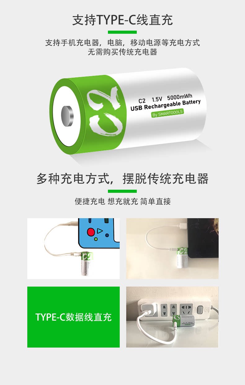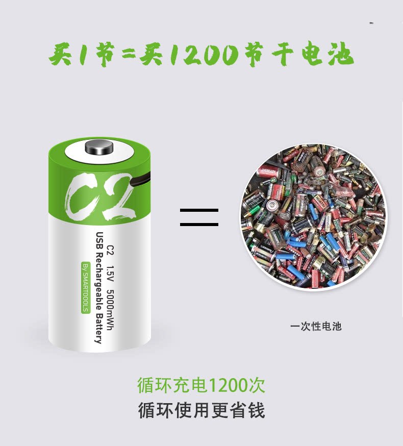 SMARTOOOLS2 1.5V rechargeable lithium battery USB large capacity toy flashlight radio durable