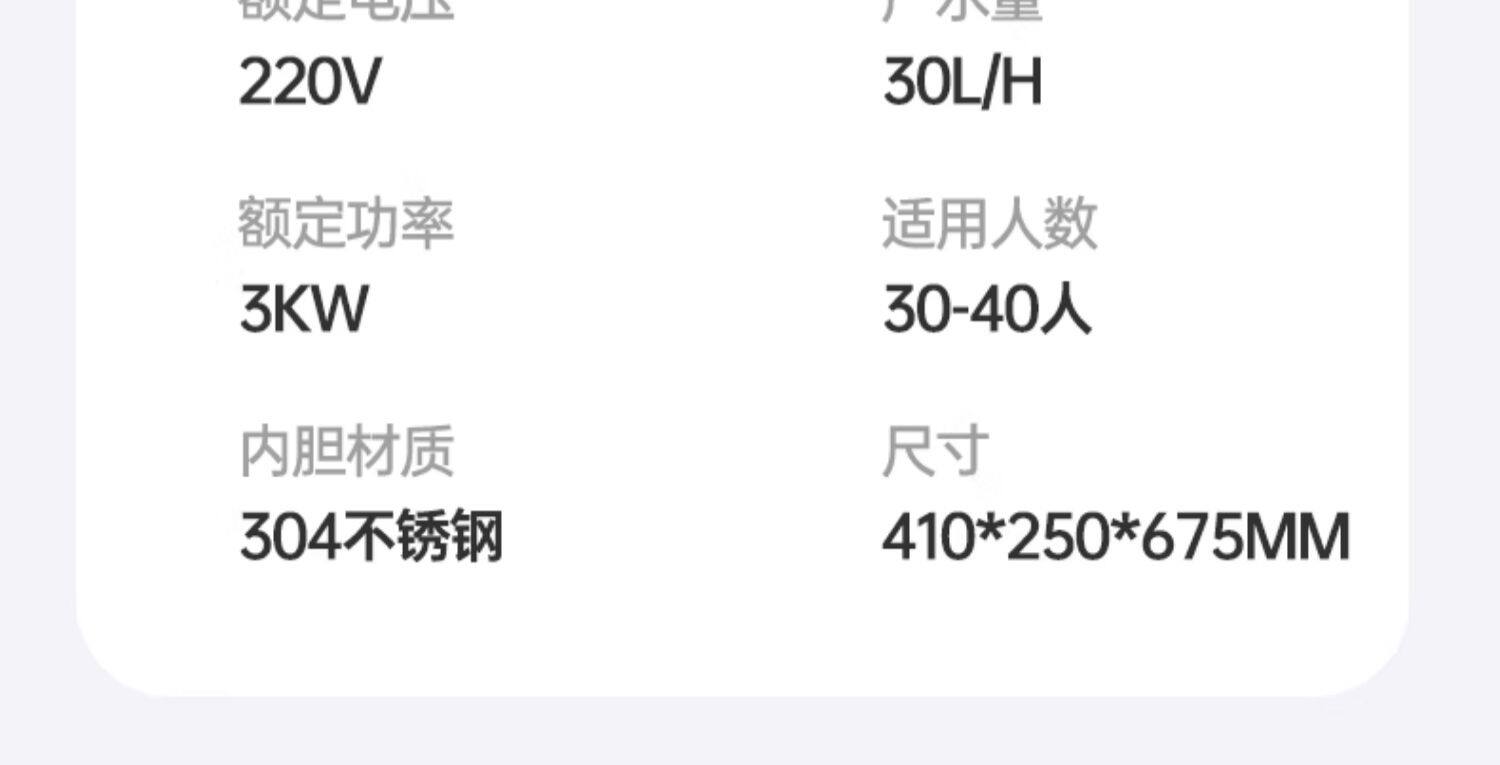 Sort by color Light gray,Midea water boiler 3KW/220V standard model (suitable for 40-70 people),Midea water boiler 3KW/220V with base (suitable for 40-70 people),Demax water boiler 30L limited time special 220V 10-30 people free water pipe|ticket included,Demax water boiler 40L digital display model 220V 30-50 people free water pipe | ticket included,Demax water boiler 40L high-end model 220V 30-50 people free water pipe | 3-level filtration | tickets included,Demax water boiler 40L foaming model 220V 30-50 people free water pipe | 3-level filtration | tickets included,Demax water boiler 70L digital display model 220V 70-90 people free water pipe | ticket included,Demax water boiler 70L digital display model 380V 70-90 people free water pipe | ticket included,Demax water boiler 70L foaming model 220V 70-90 people free water pipe | 3-level filtration | ticket included,Demax water boiler 70L foaming model 380V 70-90 people free water pipe | 3-level filtration | ticket included,Demax water boiler 100L digital display model 380V 90-110 people free water pipe | ticket included,Demax water boiler 100L foaming model 380V 90-110 people free water pipe | 3-level filtration | ticket included,Demax water boiler 40L digital display 220V + base 30-50 people free water pipe | ticket included,Demax water boiler 40L foaming model 220V + base 30-50 people free water pipe | 3-level filtration | ticket included,Demax water boiler 70L digital display 220V + base 70-90 people free water pipe | ticket included,Demax water boiler 70L digital display model 380V + base 70-90 people free water pipe | ticket included,Demax water boiler 70L foaming model 220V + base 70-90 people free water pipe | 3-level filtration | ticket included,Demax water boiler 70L foaming model 380V + base 70-90 people free water pipe | 3-level filtration | ticket included,Demax water boiler 100L digital display 380V + base 90-110 people free water pipe | ticket included,Demax water boiler 100L foaming model 380V + base 90-110 people free water pipe | ticket included,Demax water boiler 30L/H 13.2L inner tank digital display wall-mounted model 2kw free water pipe | ticket included,Demax water boiler 30L/H 13.2L inner tank digital display thermal insulation wall-mounted model 2Kw free water pipe | ticket included,Demax water boiler 70L/H 220V 23L inner tank, once open and warm, free water supply pipe | ticket included,Demax water boiler 100L/H 380V 29L inner tank, once turned on and warmed, free water supply pipe | ticket included