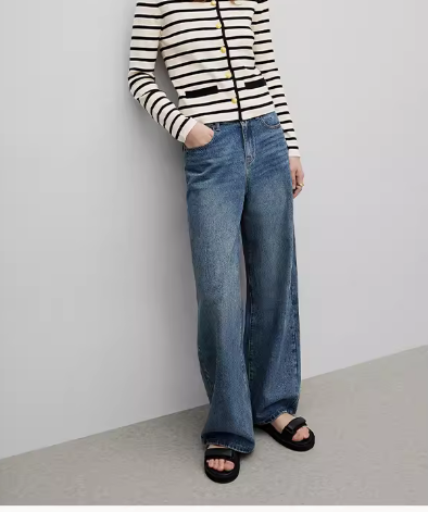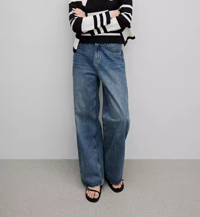 Wangzha Denim Xinjiang Long-Staple Cotton Vintage Washed Wide-Leg Jeans for Women, Versatile, Comfortable, and High-End Feel