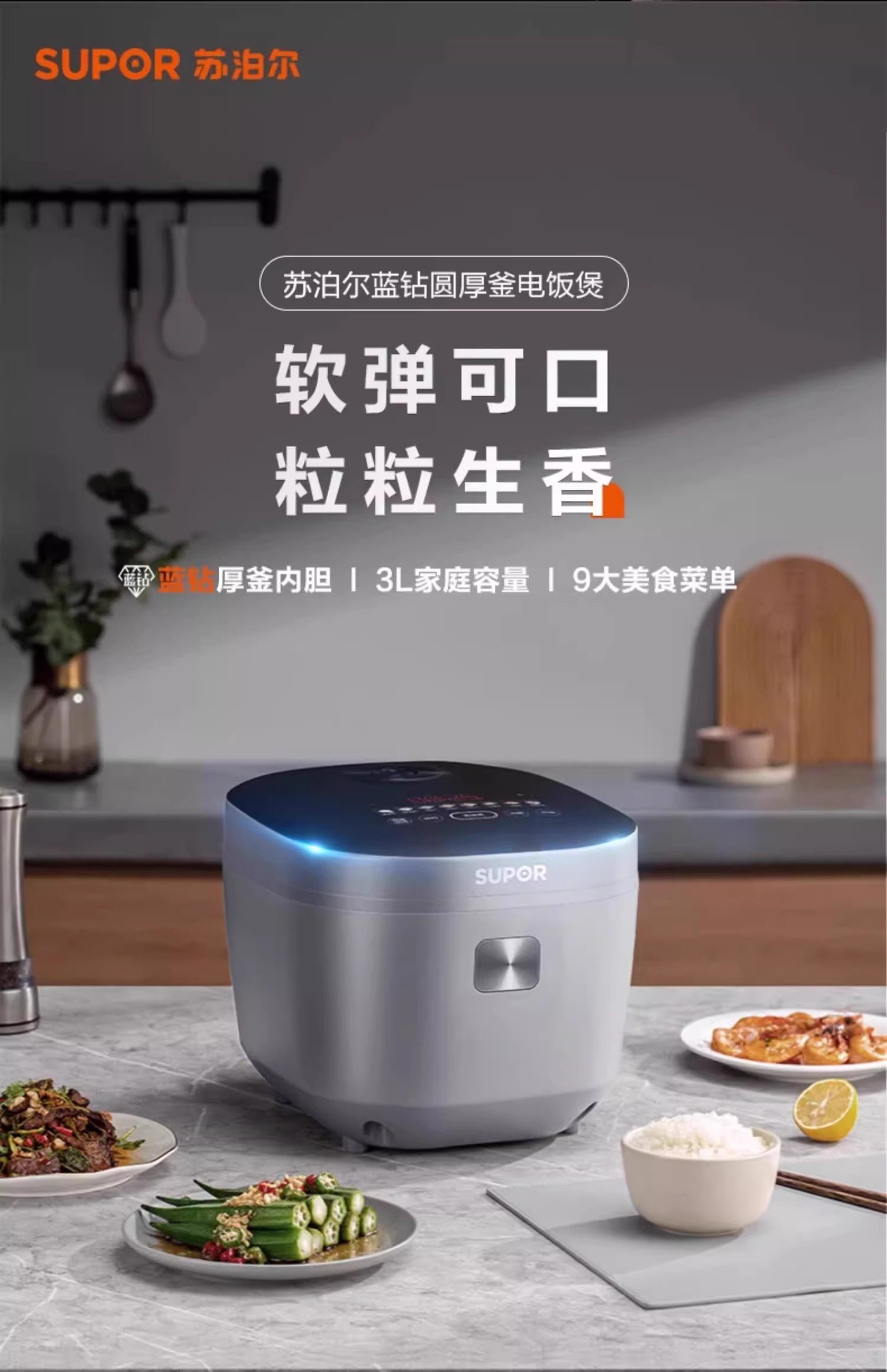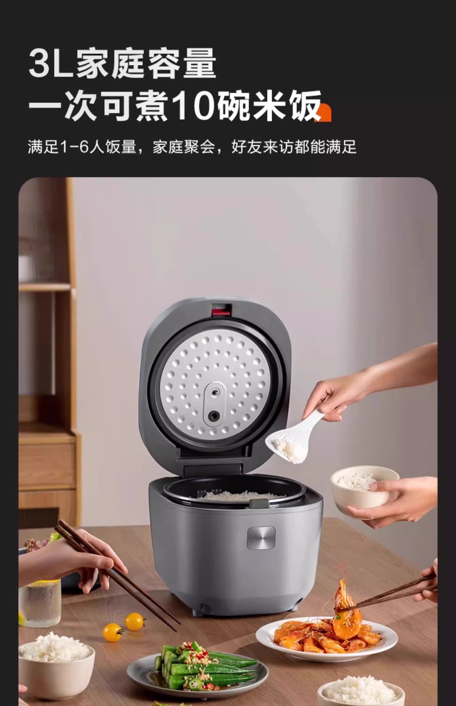 Supor's New Smart Multifunctional 3L Rice Cooker for Home Use with Thickened Pot, Suitable for 2-5 People, Large Capacity Rice Cooker