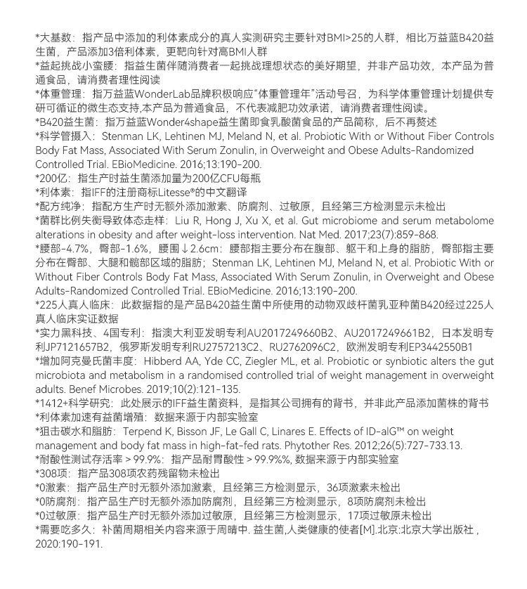 Wonderlab Small Blue Bottle B420 Probiotic Weight Management Bacteria Light Blue Barrel 180 Official Genuine Product